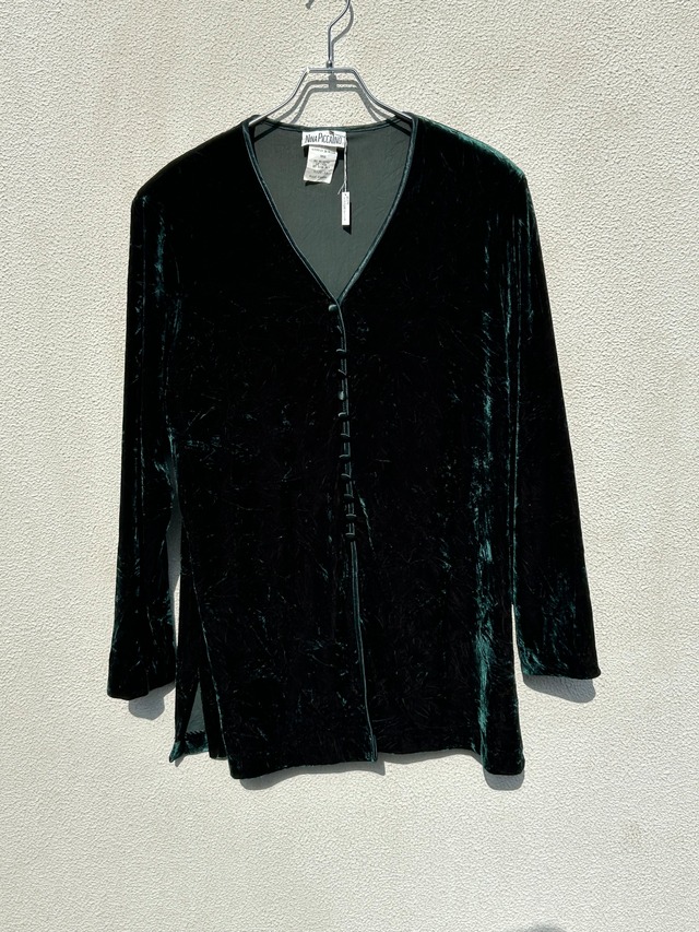 【サイズ】 表記:16 着用感:レディースL〜XL、メンズM、 平置き・実寸(cm):肩幅46、身幅59、袖丈60、着丈77 ■ベロアチュニック ベロア素材のあたたかで、ゆったりとしたシルエットとストレッチ性があるので、リラックスした着心地の1枚。 カーディガンのように見えますが、前ボタンはフェイクで、かぶるタイプのトップスです。 Vネックなので中にタートルネックやシャツを合わせたり、ダークトーンのボトムスと合わせて大人の着こなしも楽しめる1枚です。 ※肩パッドありですが薄手、取りはずし可能 ▶︎WITH BILLYの他のアイテムとのコーディネート ・写真8〜10枚目:お花イヤリング https://withbilly.base.shop/items/129436247 【ブランド】 NINA PICCALINO 【素材】 made in Mexico ポリエステル88%、ライクラ22% 【状態】 A:使用感はあるが、ダメージや汚れがあまり見られない商品 S:中古・使用感があまり無く、とても良い状態の美品 A:使用感はあるが、ダメージや汚れがあまり見られない商品 B:使用感があり、多少の汚れやダメージが見られるが、古着慣れしている方なら気にならない程度の商品 C:使用感があり、部分的に目立つ汚れやダメージが見られる商品 D:とても使用感があり、目立つ汚れやダメージが見られる商品 ※当店では新品・デッドストック品を除いて、古着はすべて洗濯、検品、お直しなどのケアを行っております。 ※商品写真はすべてスマホで撮影しています。モニターの発色により実物と異なる場合がございます。予めご了承ください。 ※ 当店で扱っている商品は全てUSED品になりますので、使用感、毛玉、匂いなどある場合がございます。古着にご理解ある方のみ、ご購入いただきますようお願いいたします。 ※管理番号:#229