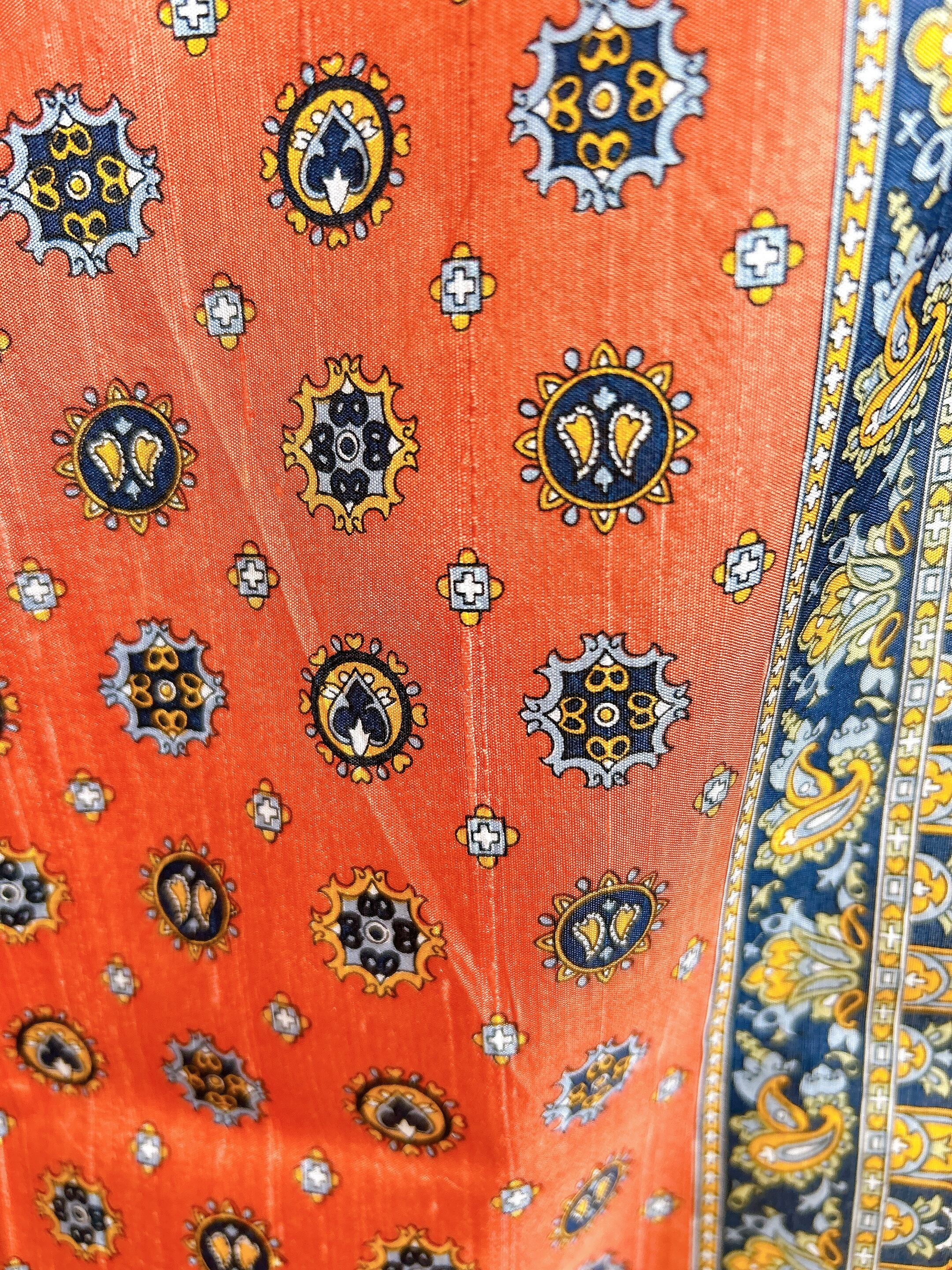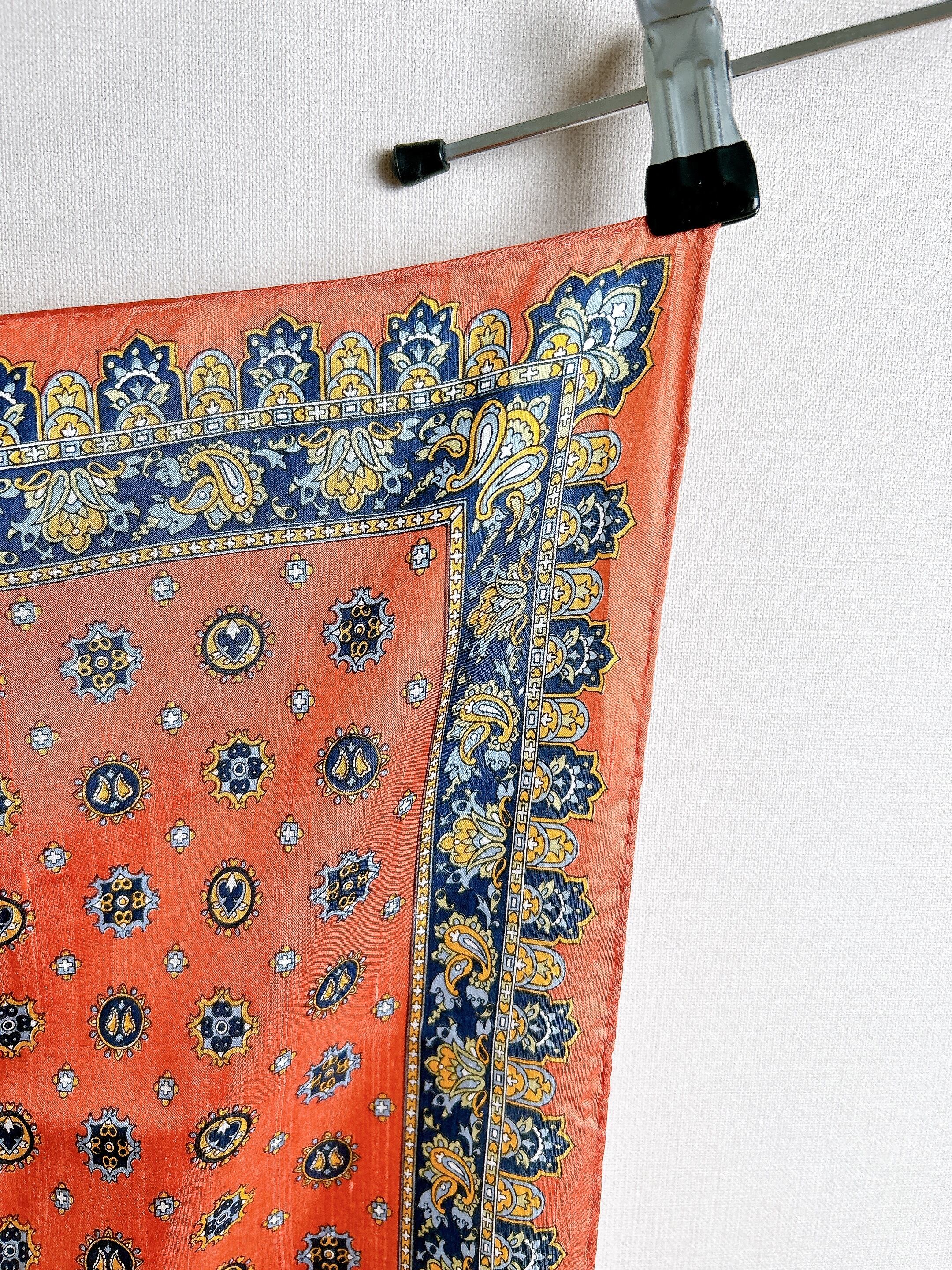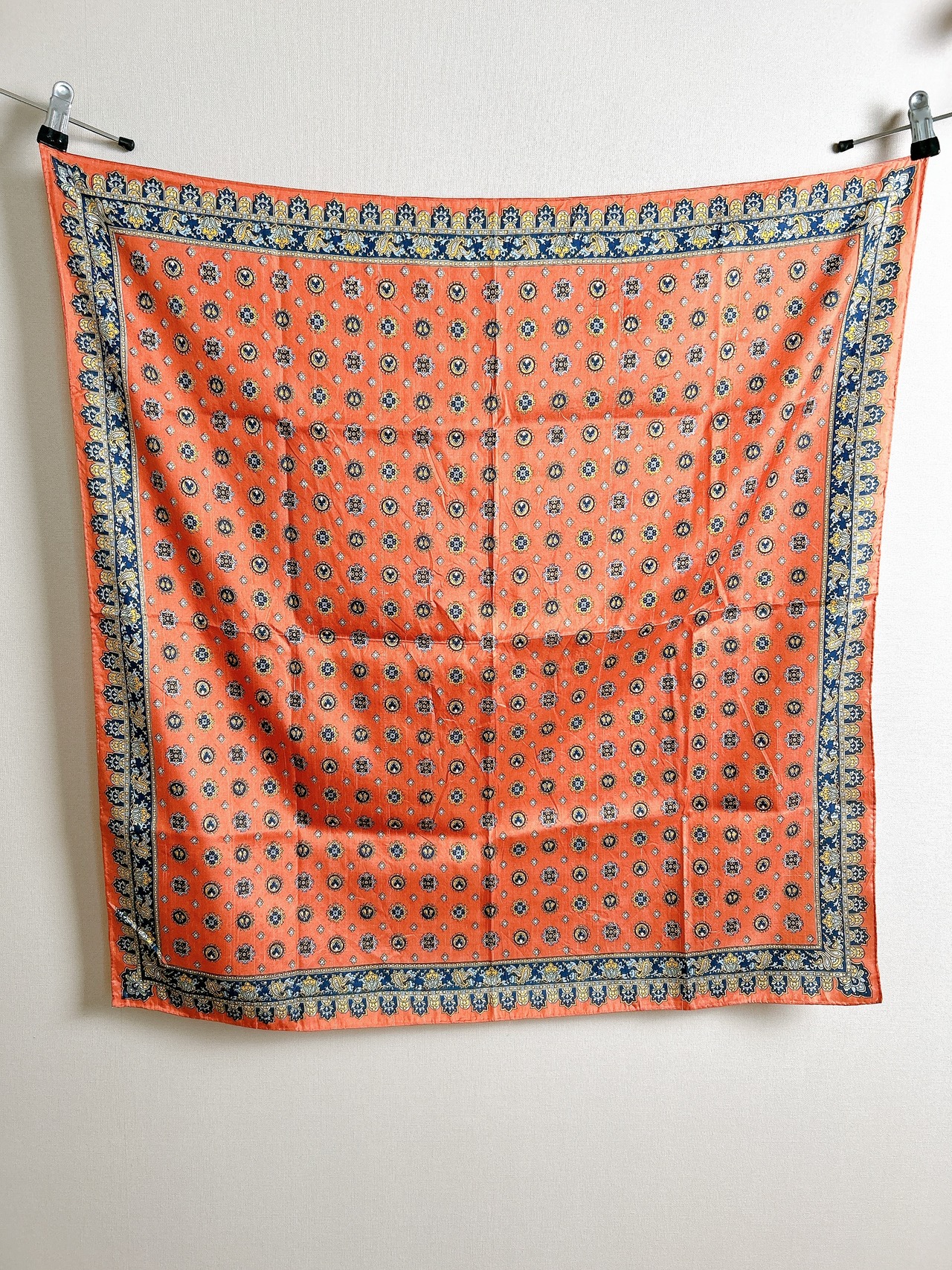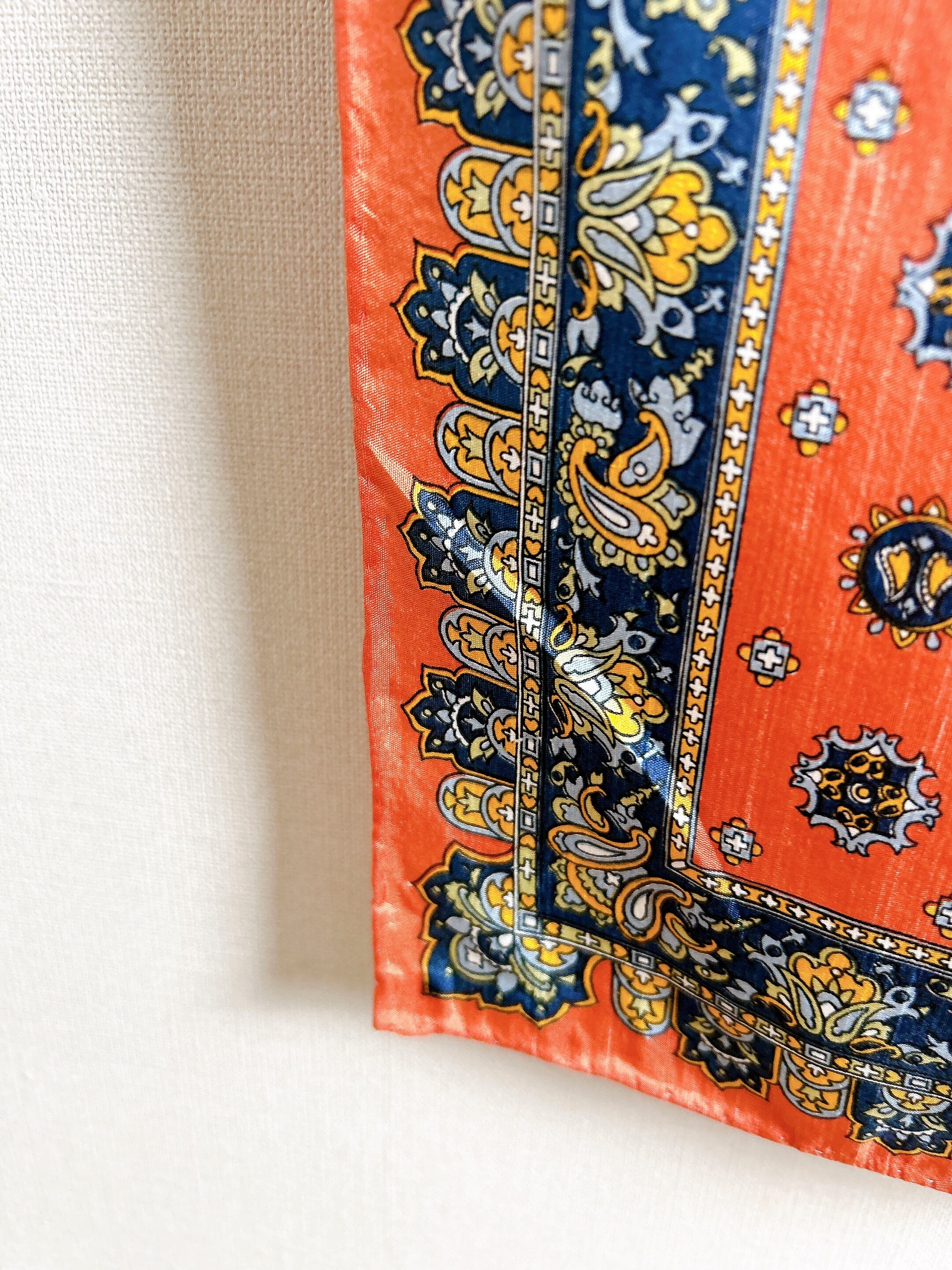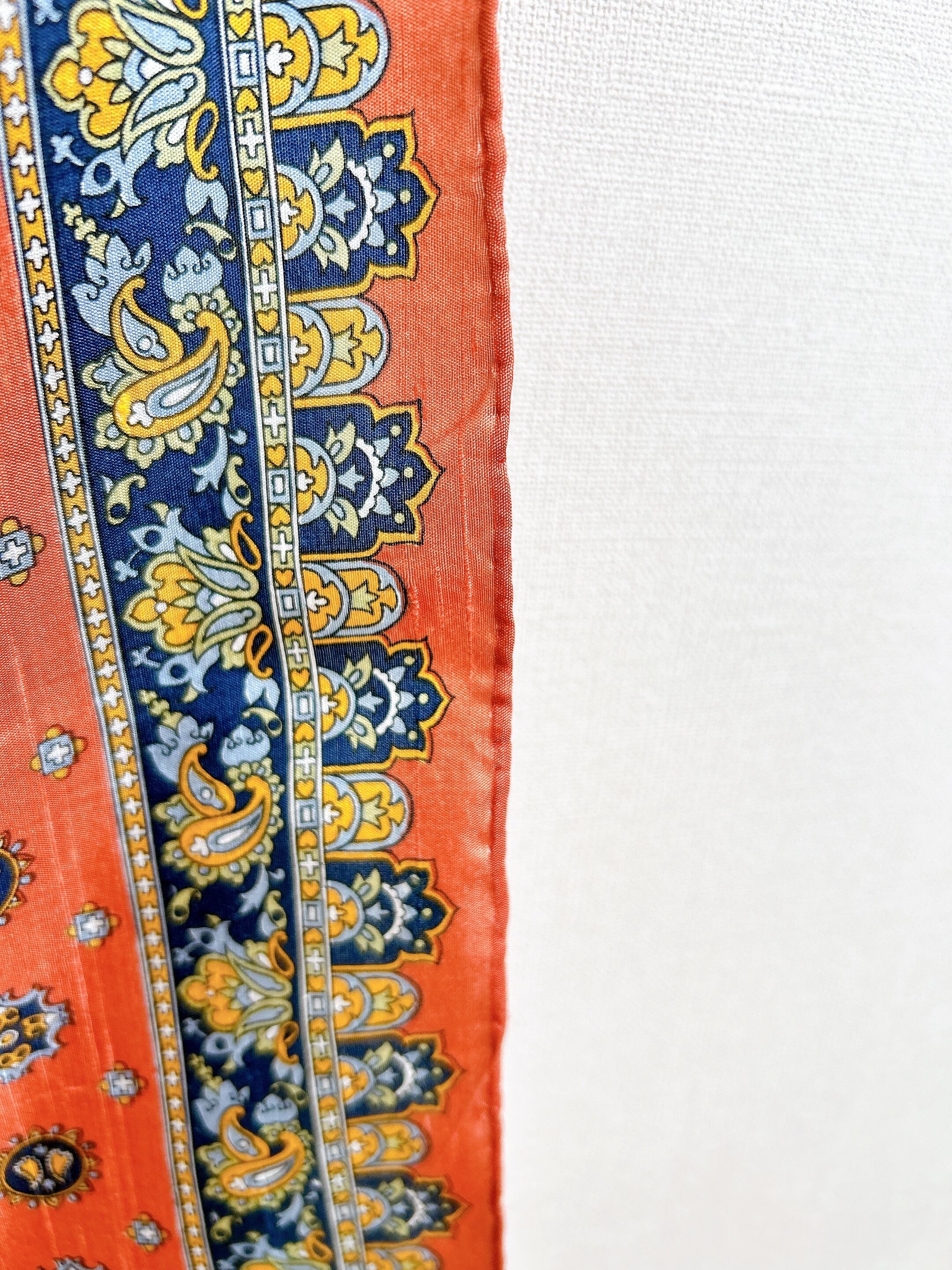 【中判】柄シルクスカーフ/オレンジ チャイニーズレッド ネイビー