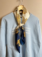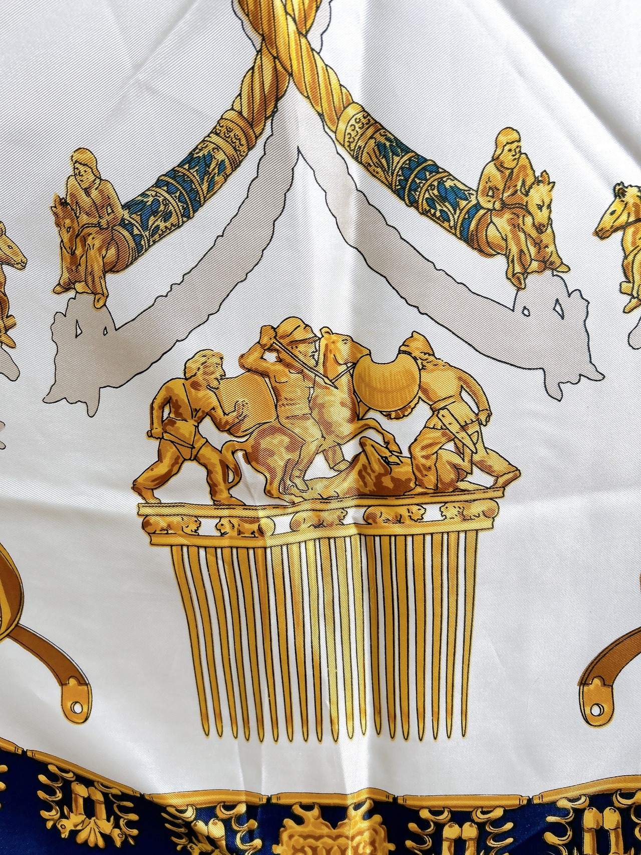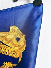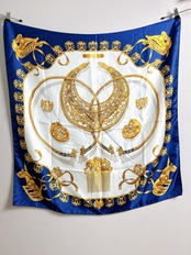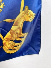 ネイビーベースにホワイト、ゴールドの馬モチーフのデザインスカーフです。