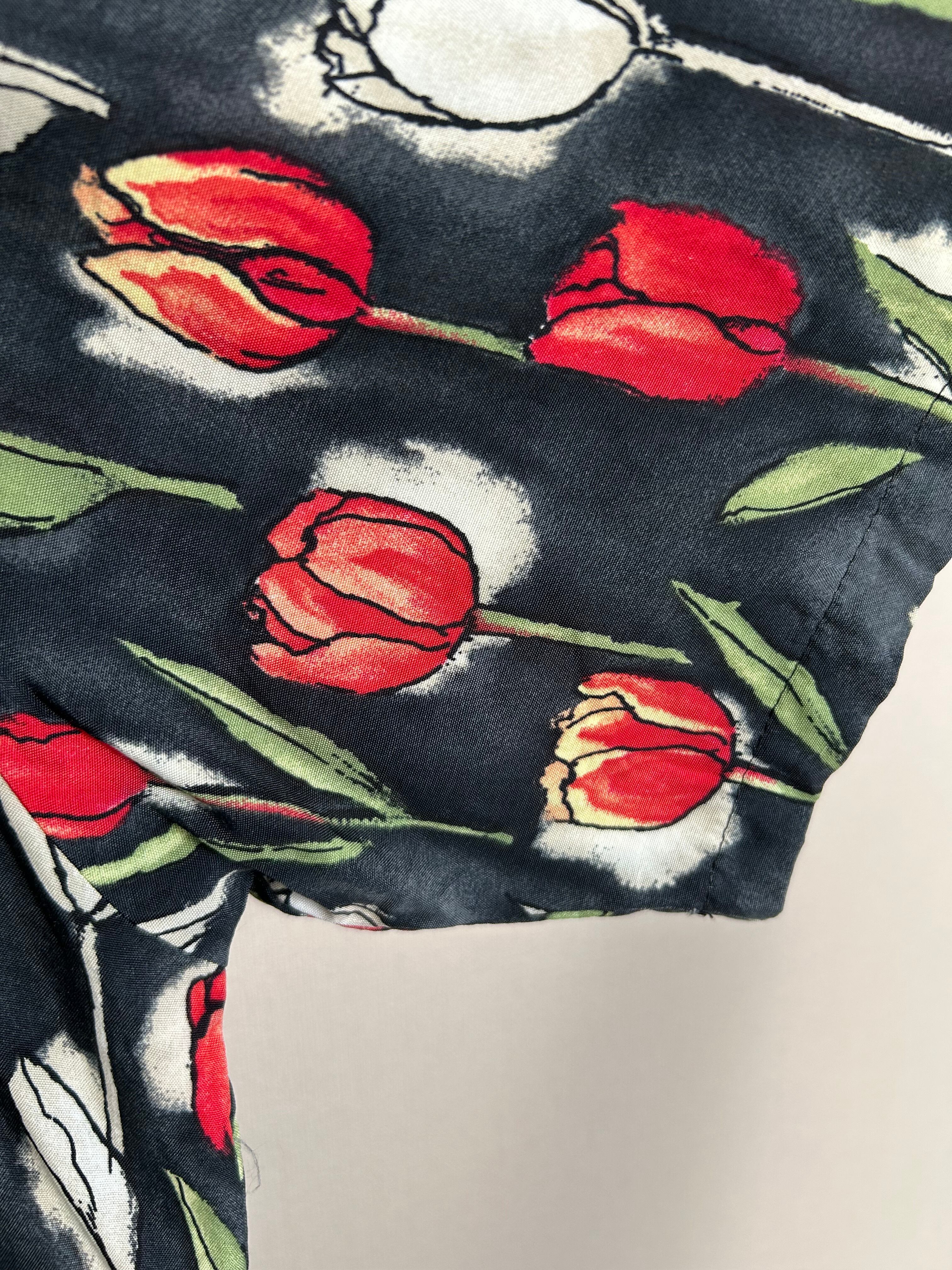 落ち着いたタッチのチューリップ柄の半袖シャツです。