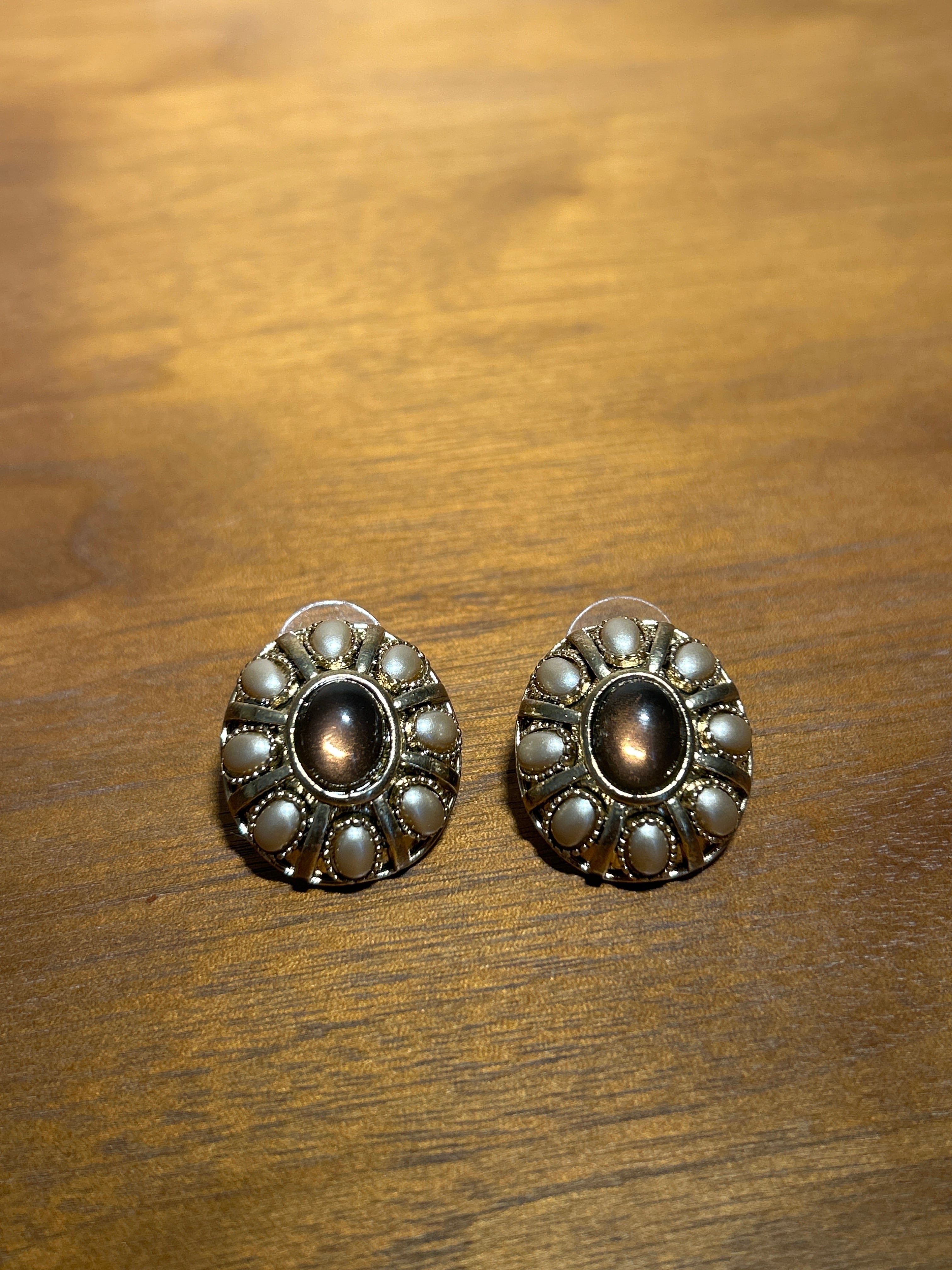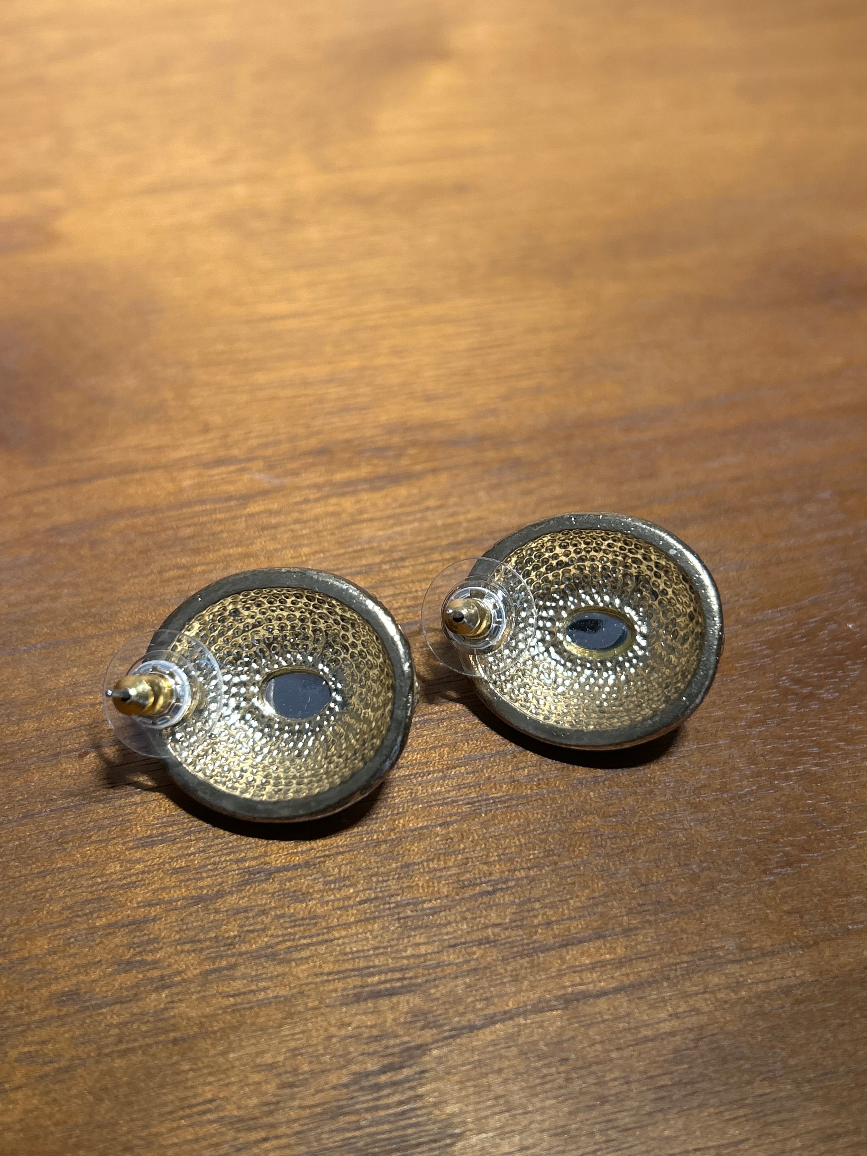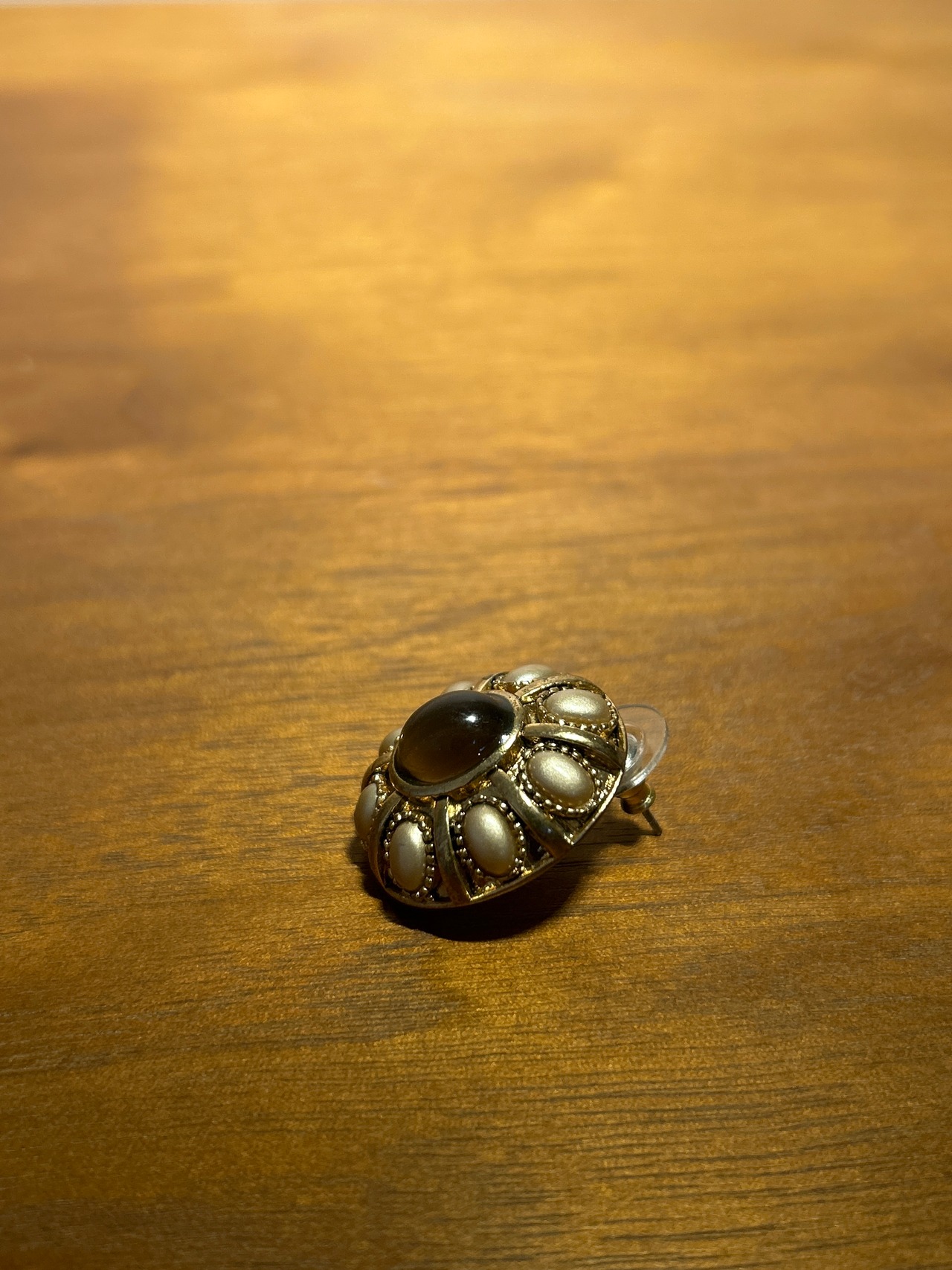 真ん中にビジューのついた上品なゴールドのピアス。