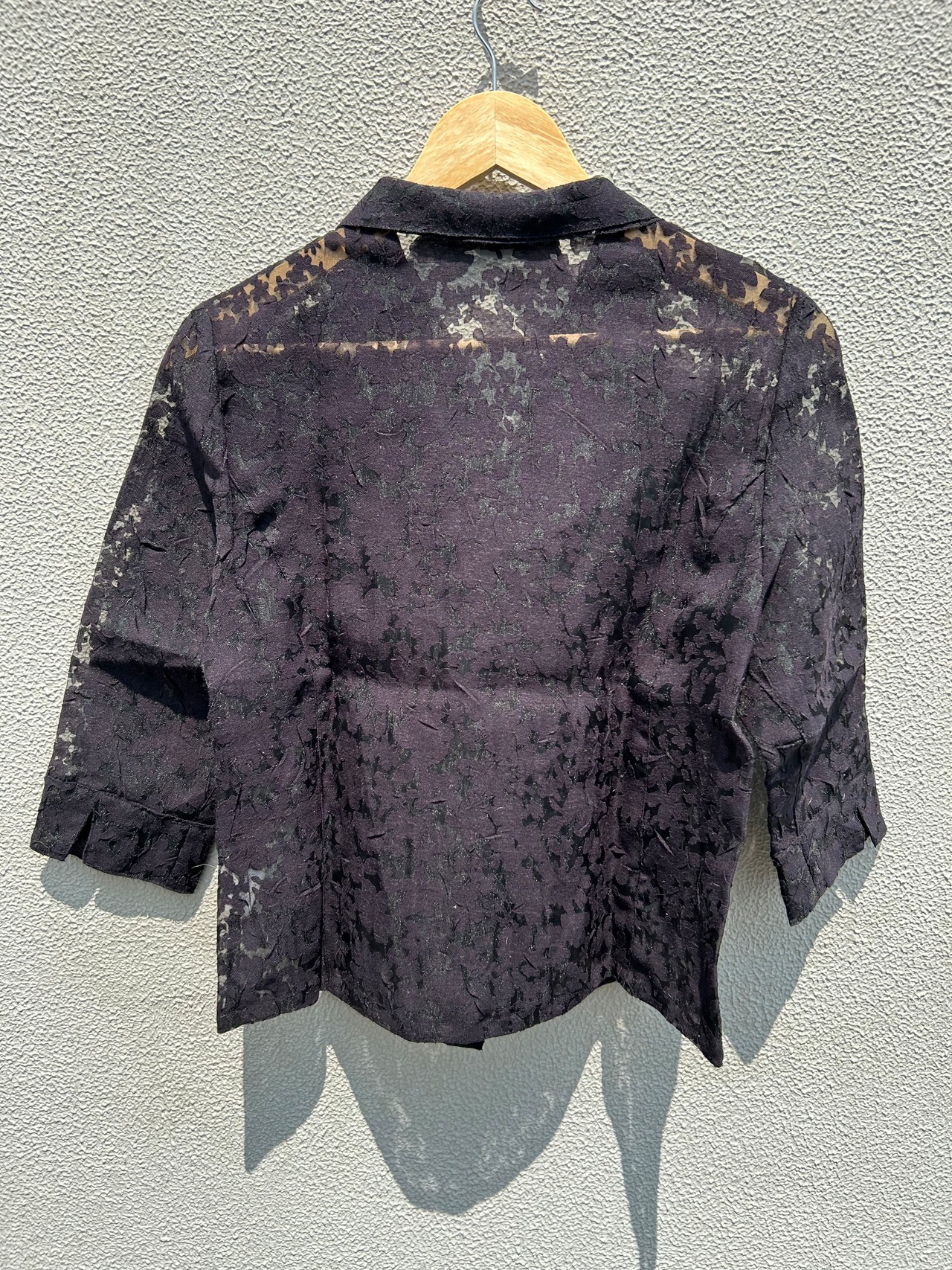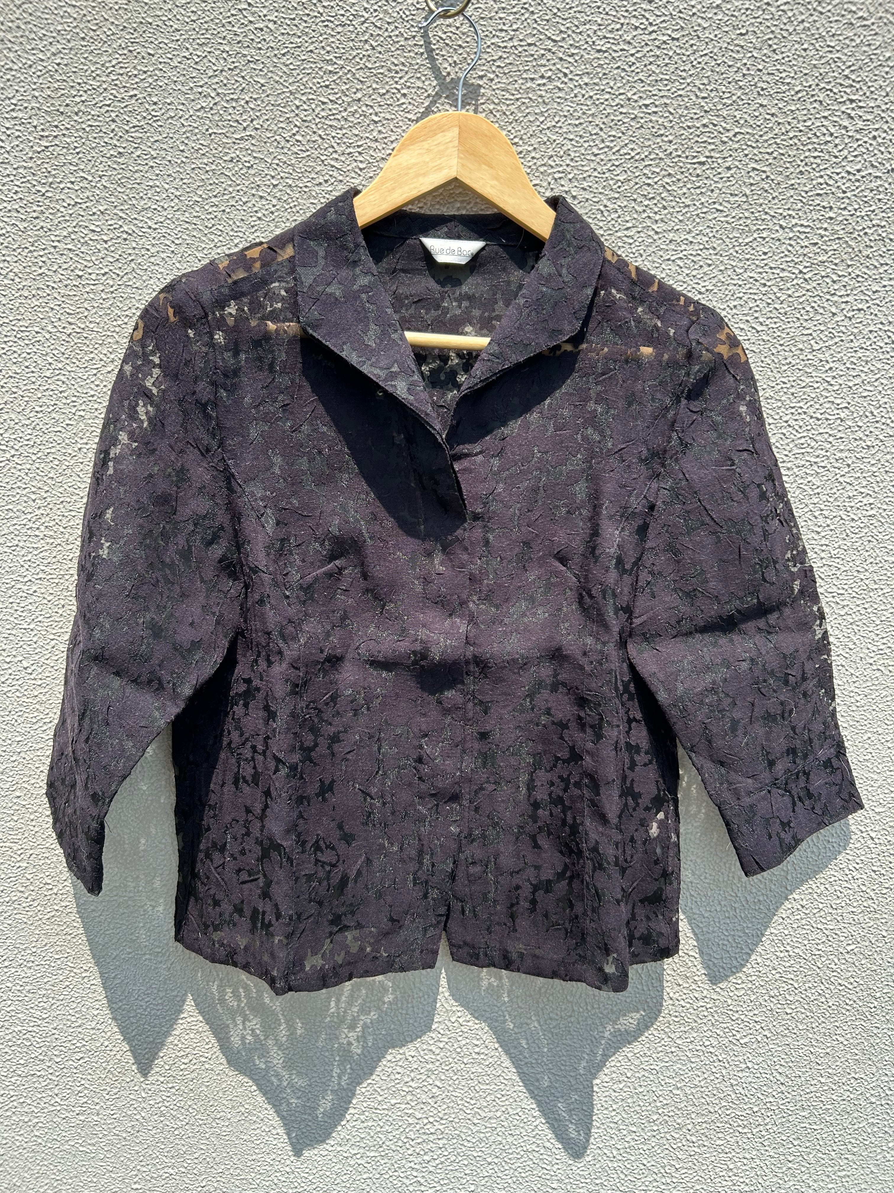 ジャケットっぽくも着れるブラックレースの7分丈シャツ。
