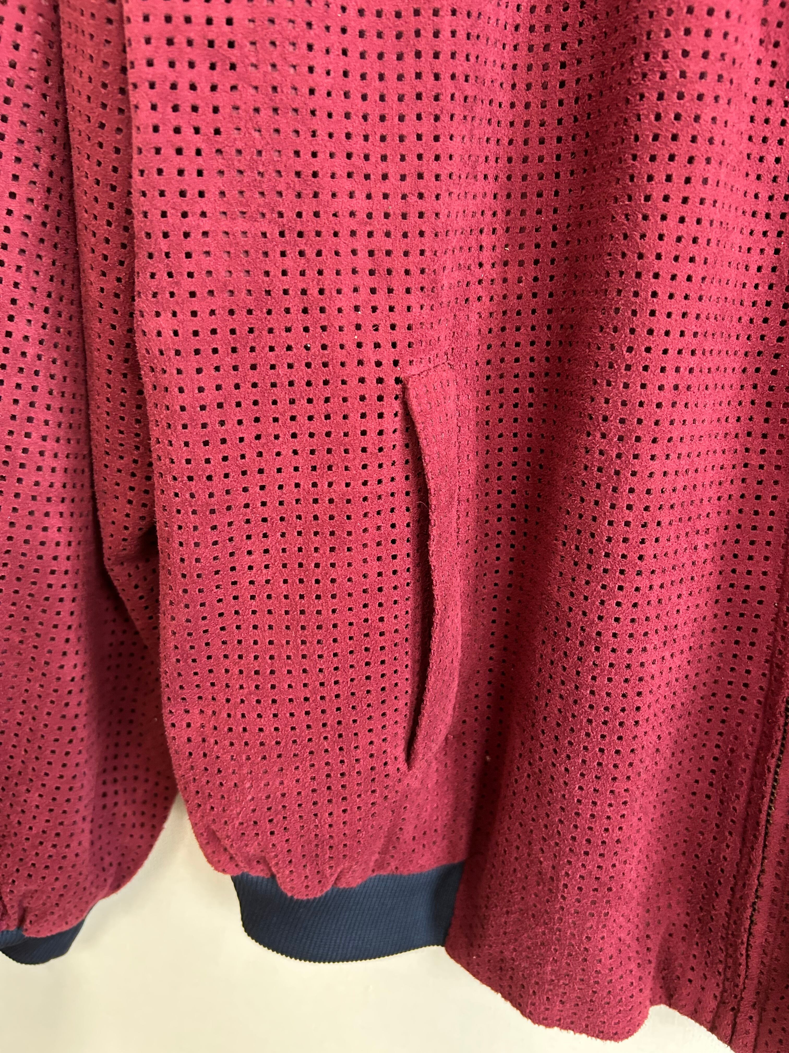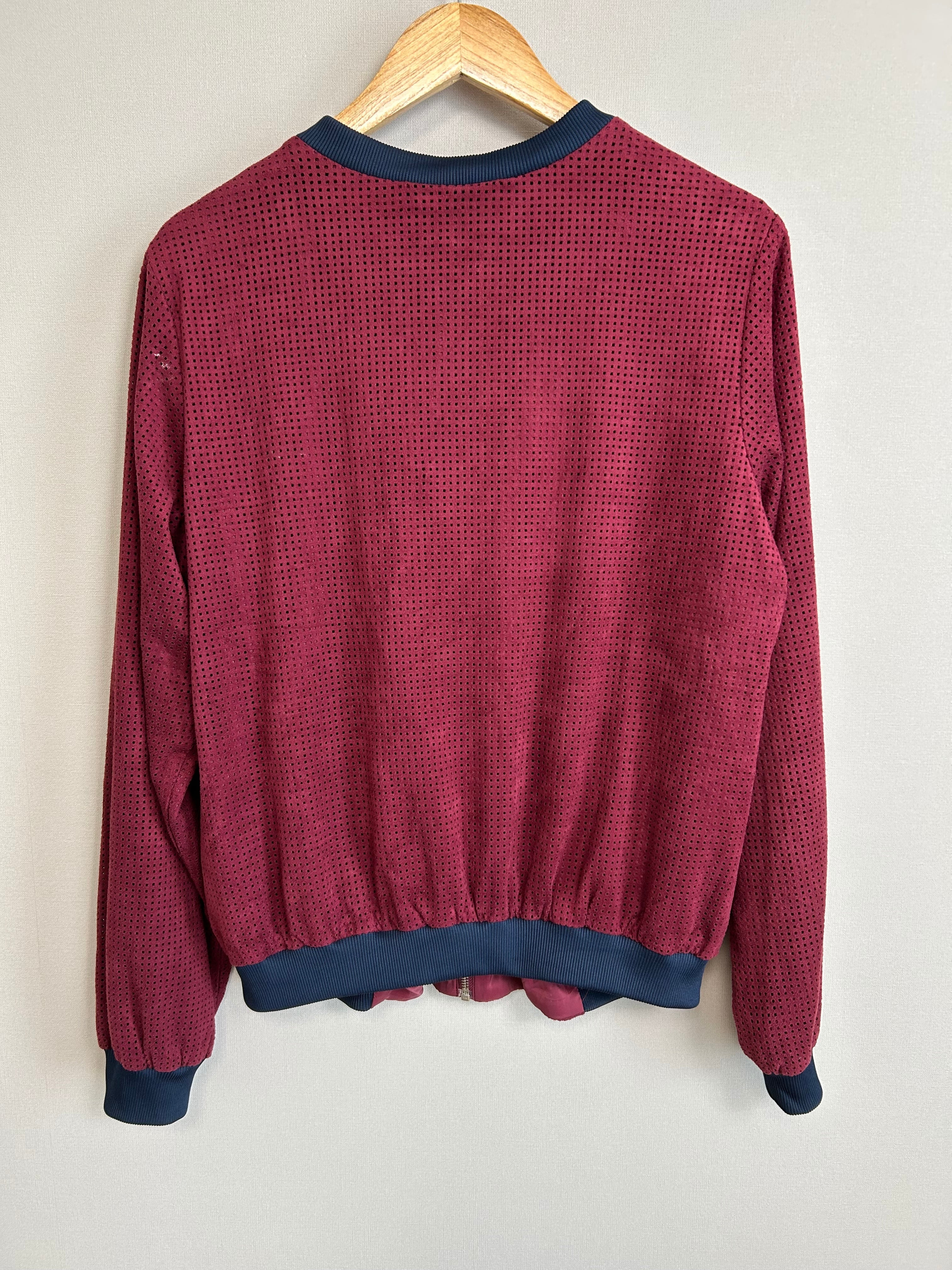 バーガンディー×ネイビーの落ち着いた色味のベロアブルゾン。