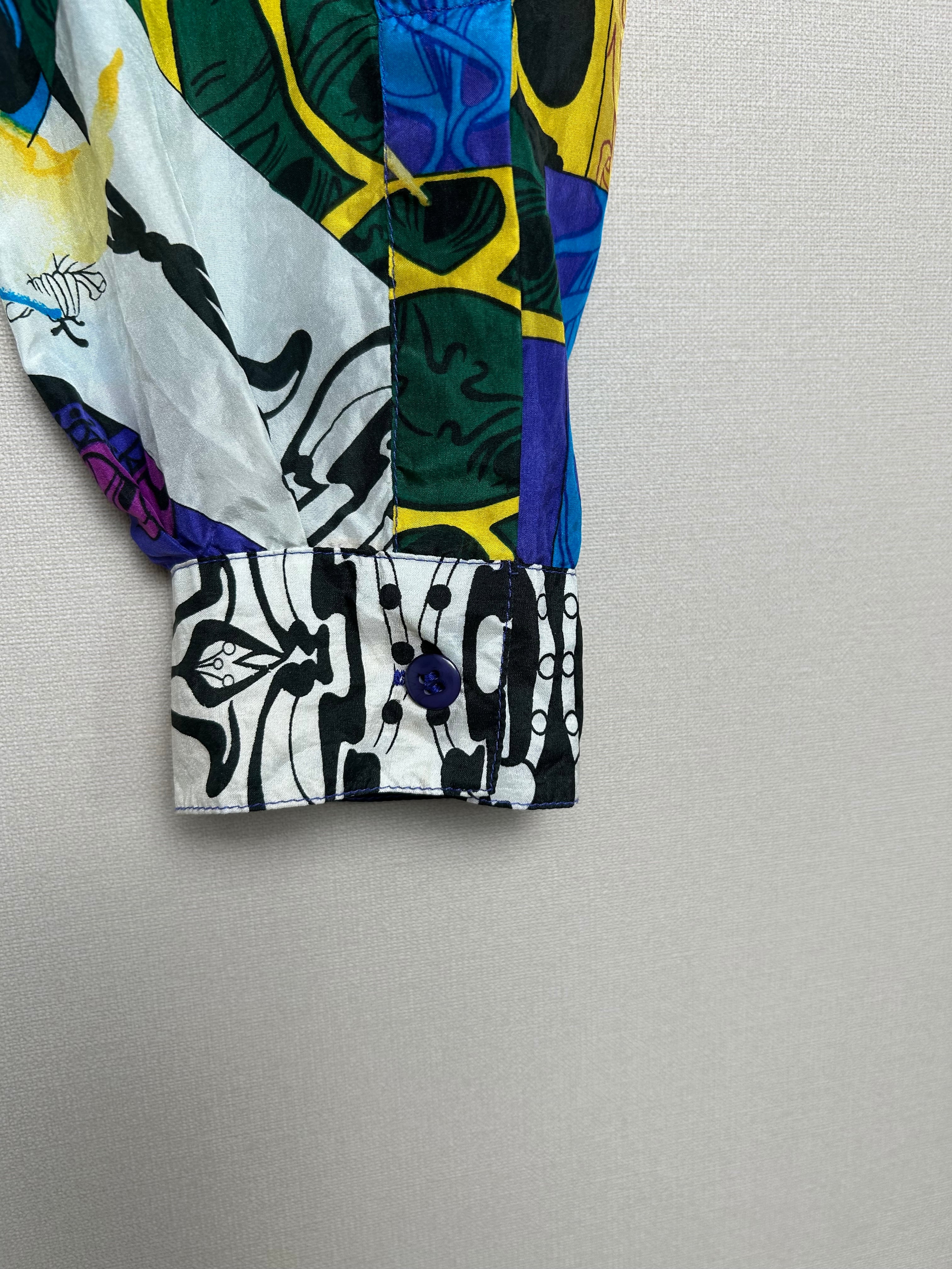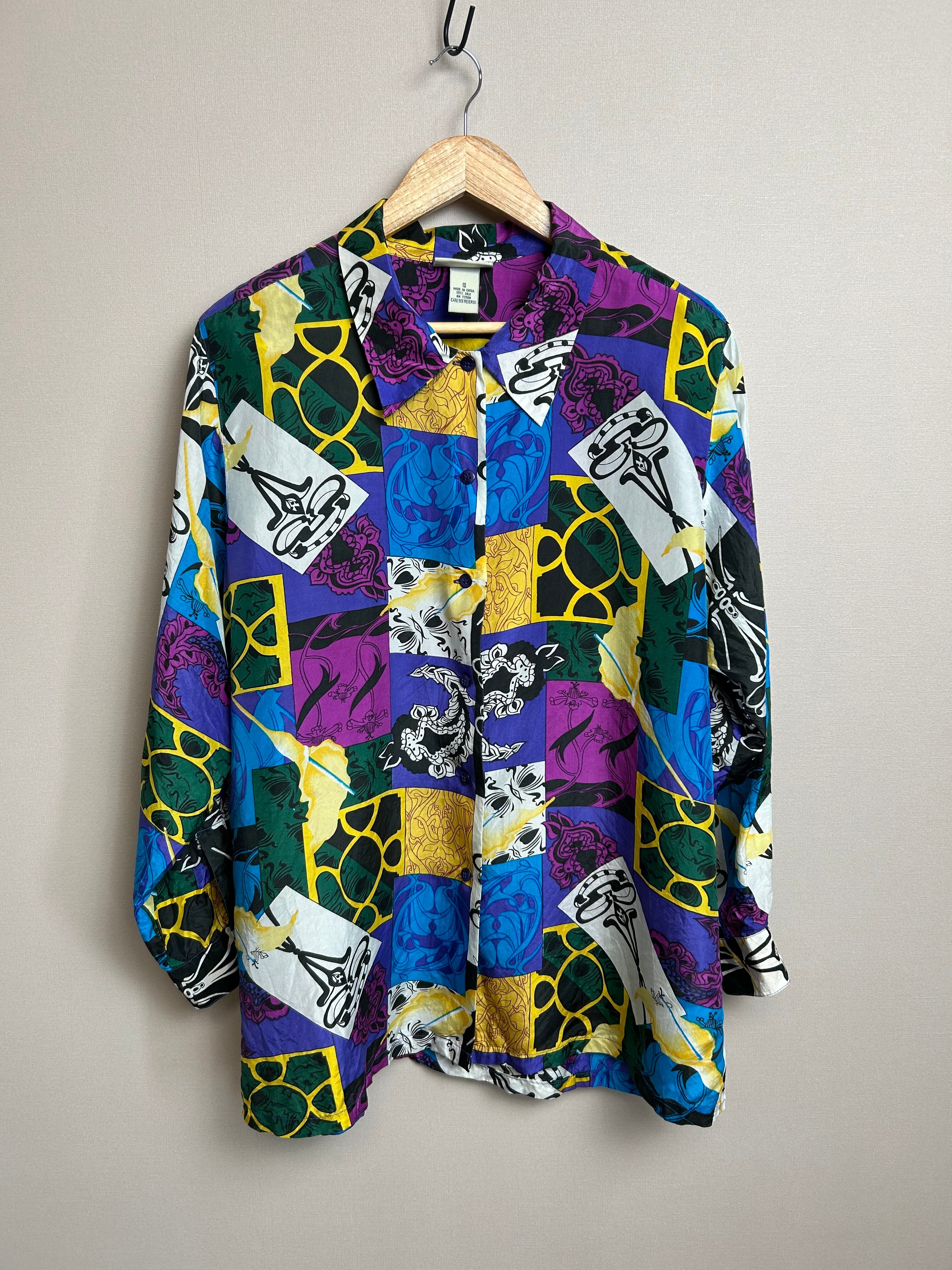ディスコ?っぽい雰囲気漂うレトロな総柄デザインシャツ。