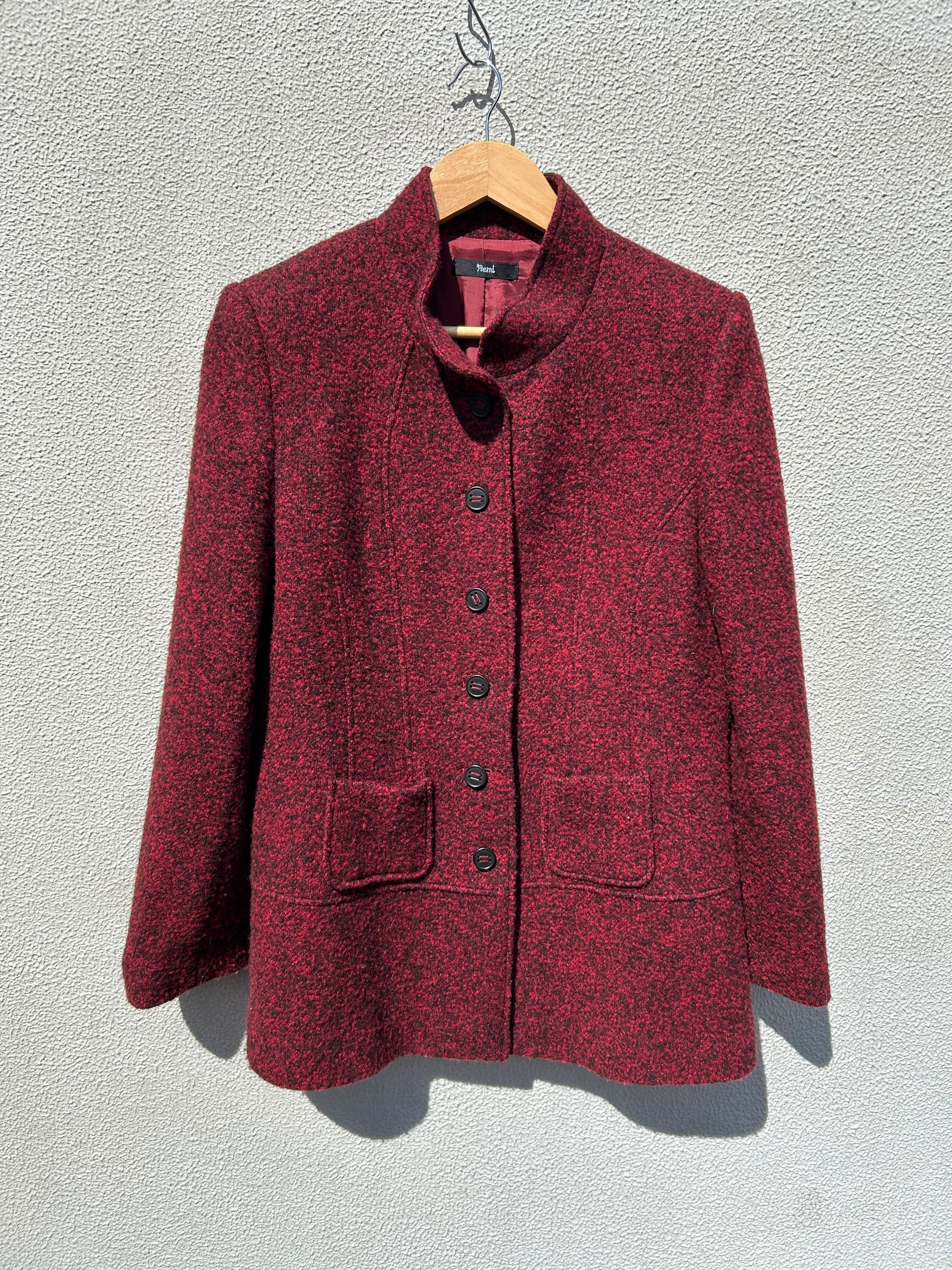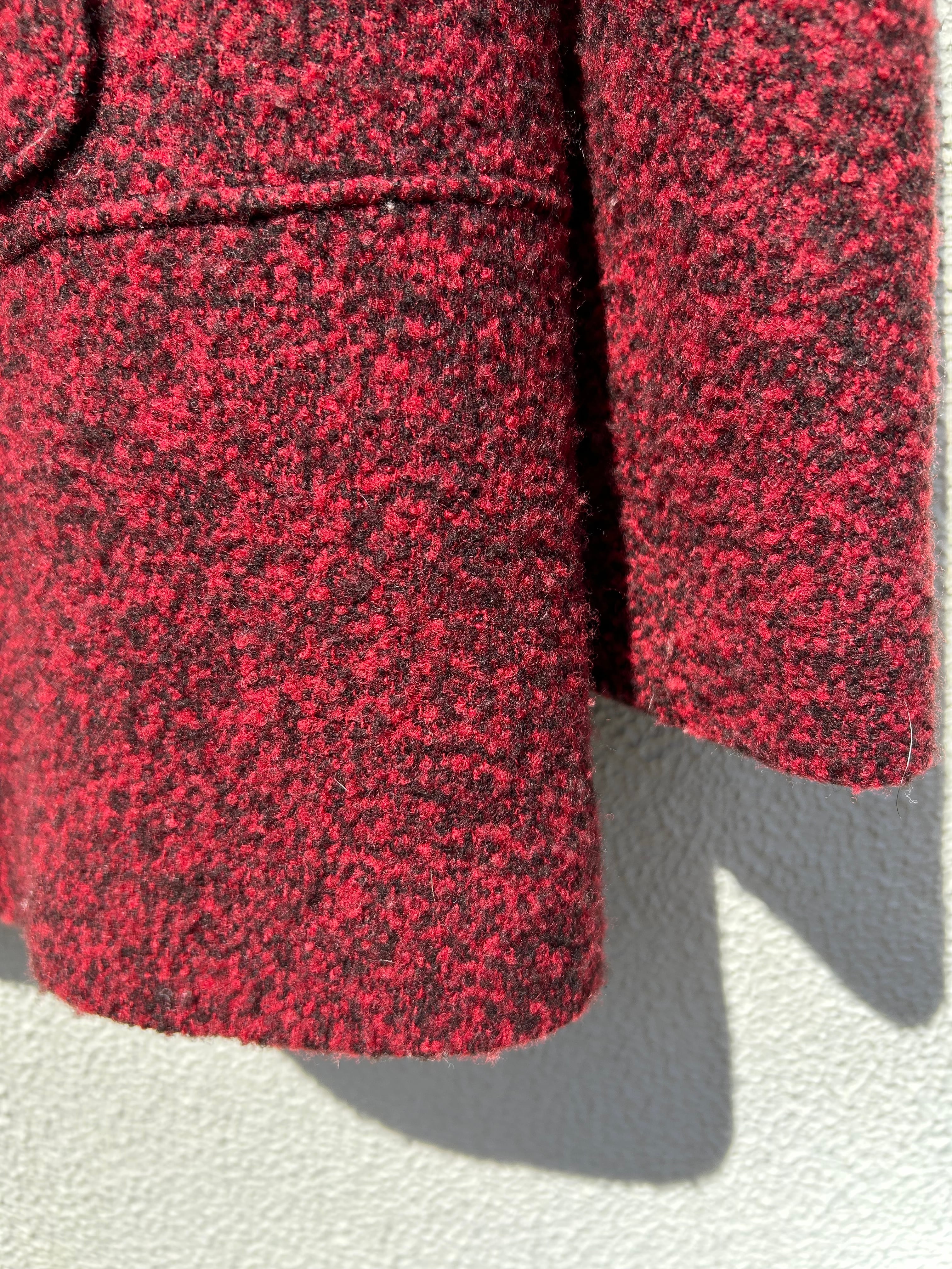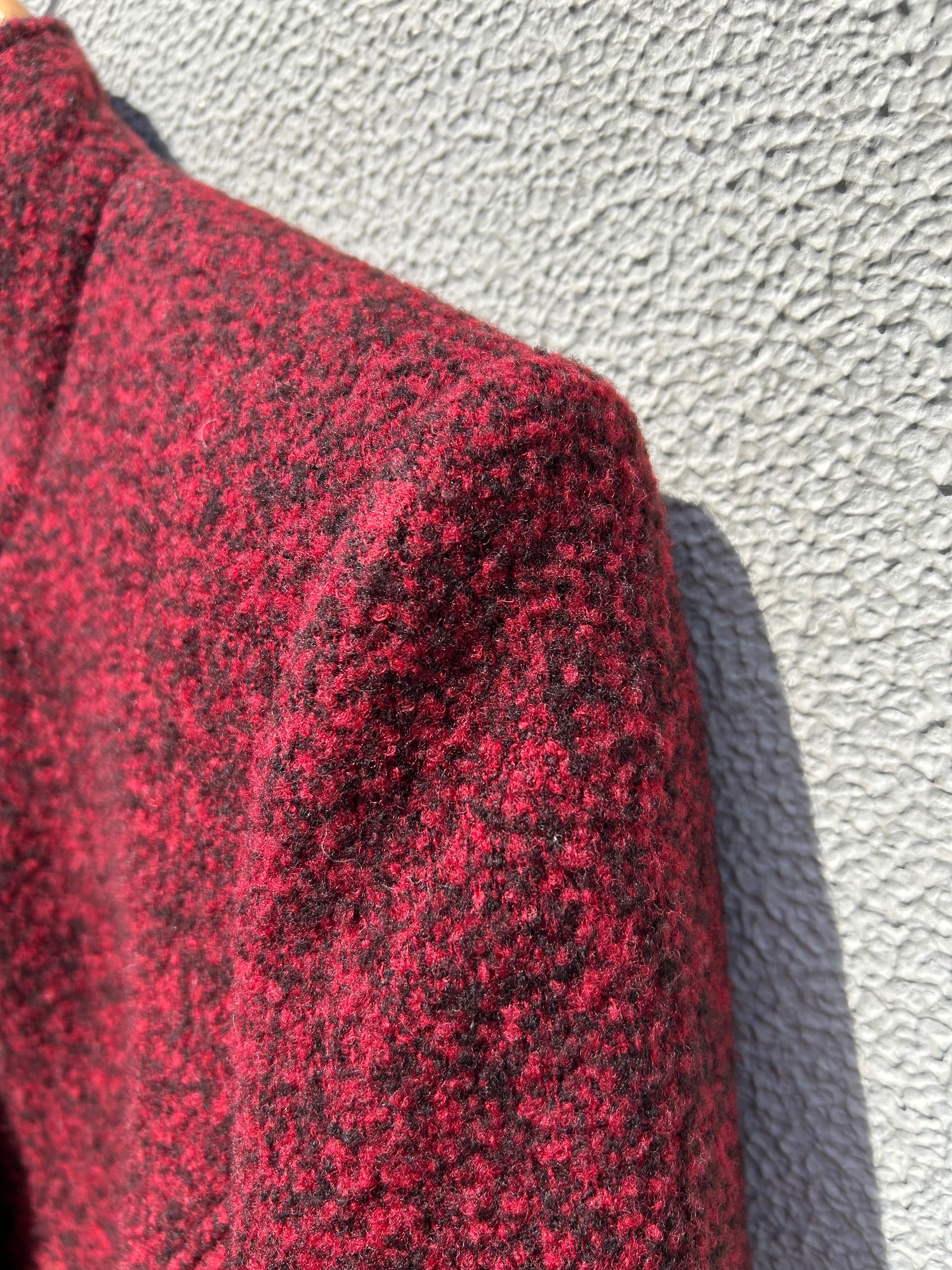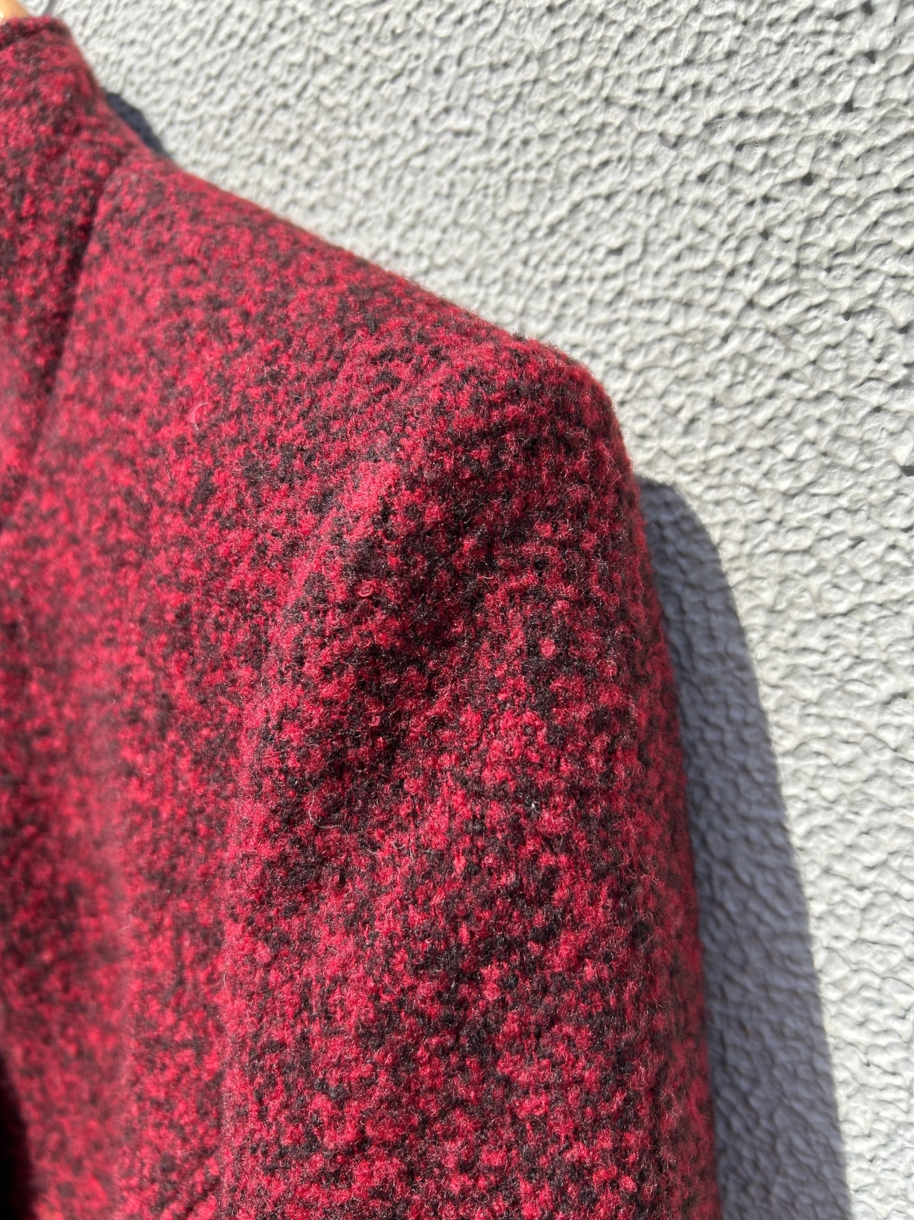 赤と黒がMIXされた落ち着いた色味でレトロな雰囲気のコート。