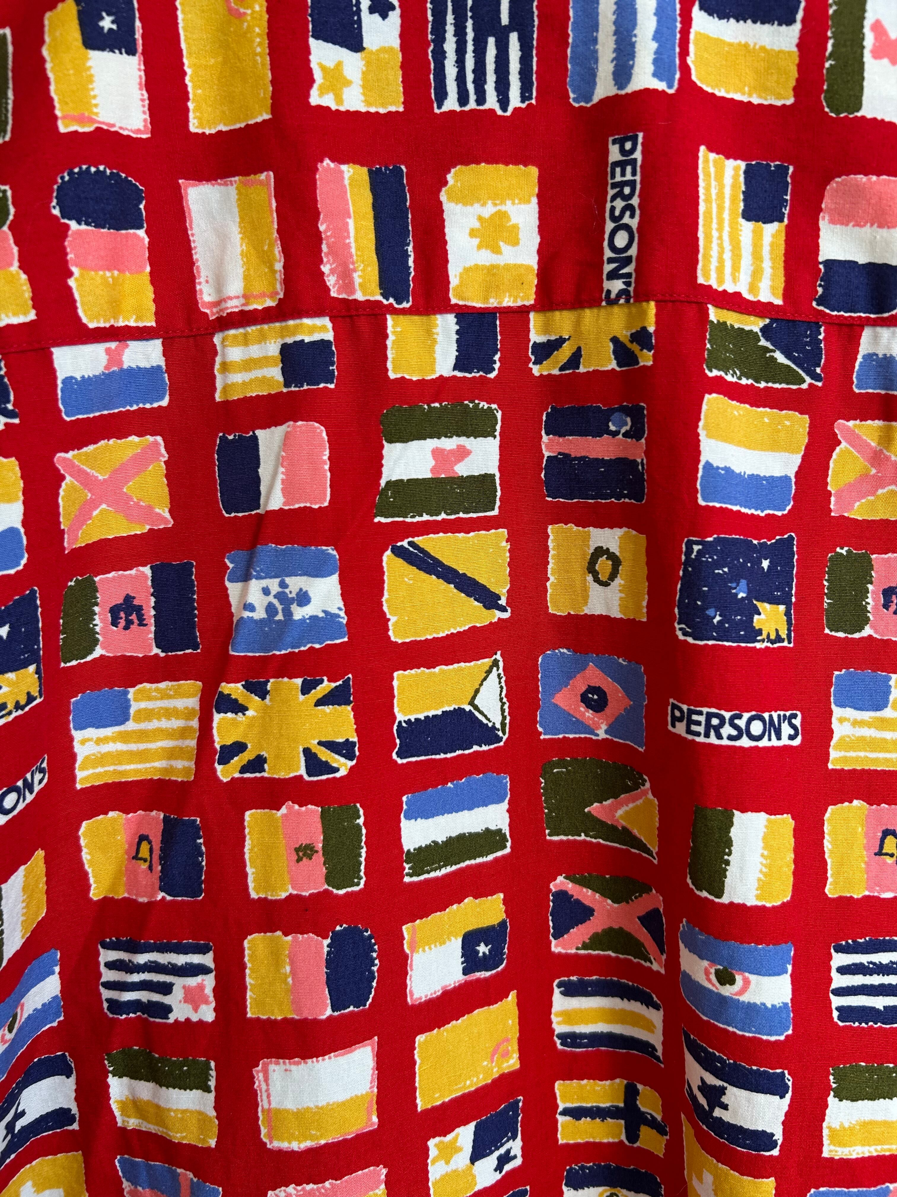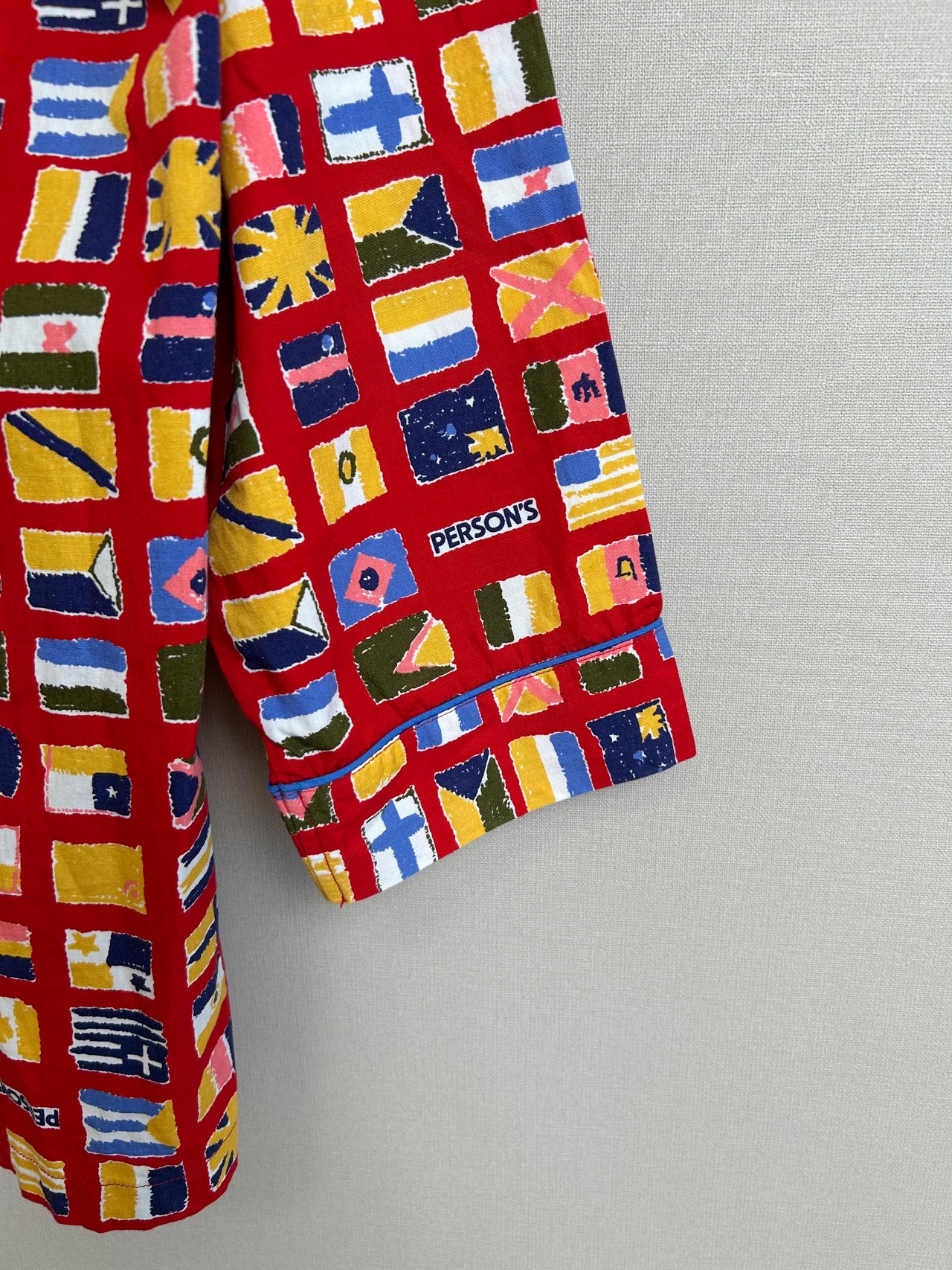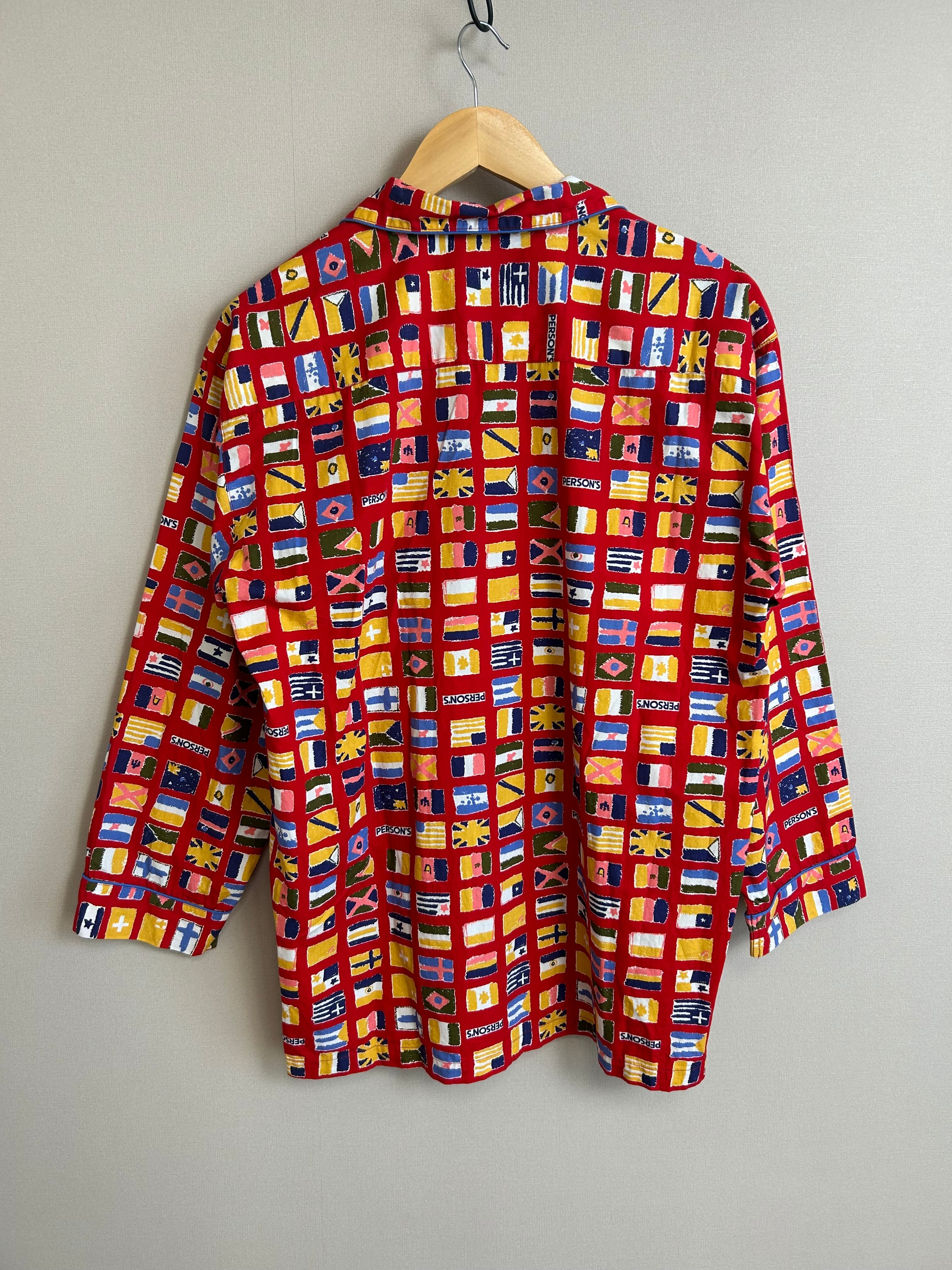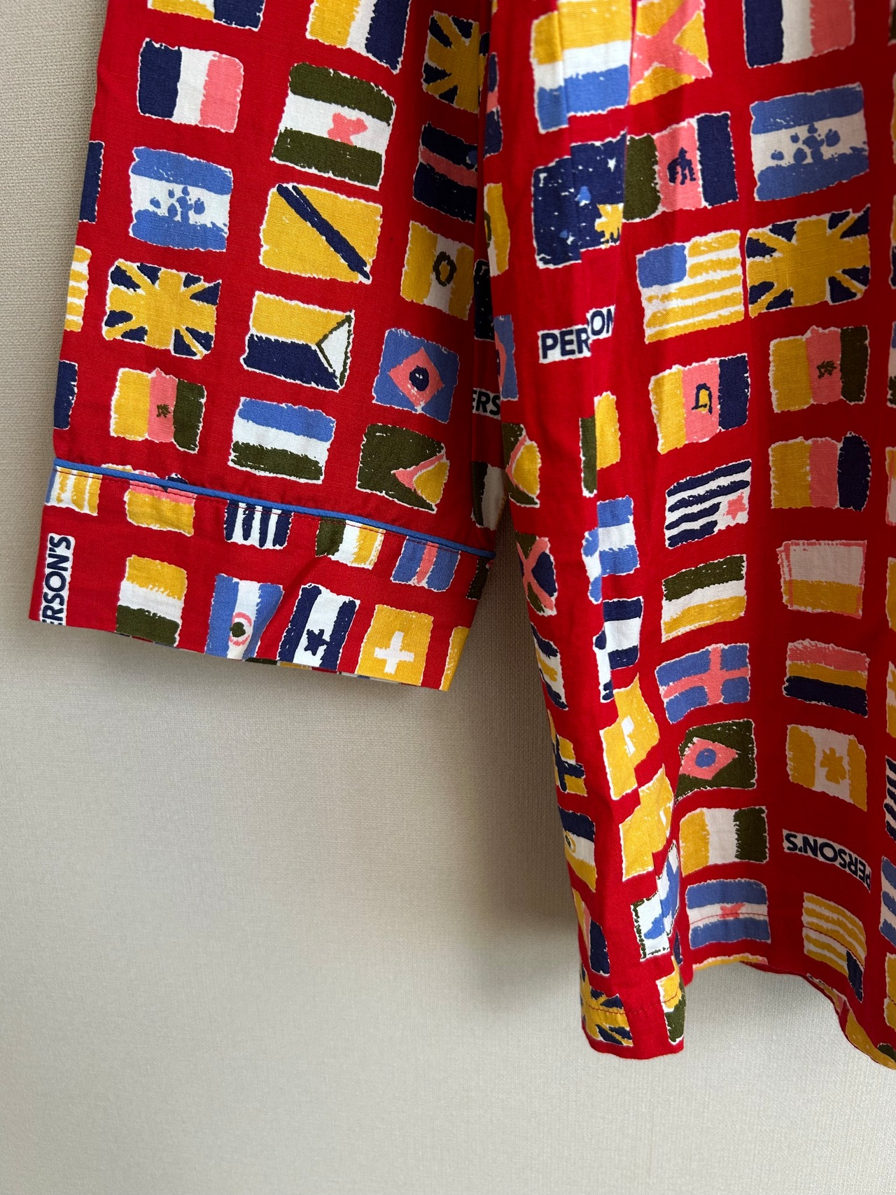カラフルな国旗柄のプリントが楽しいパジャマシャツ。