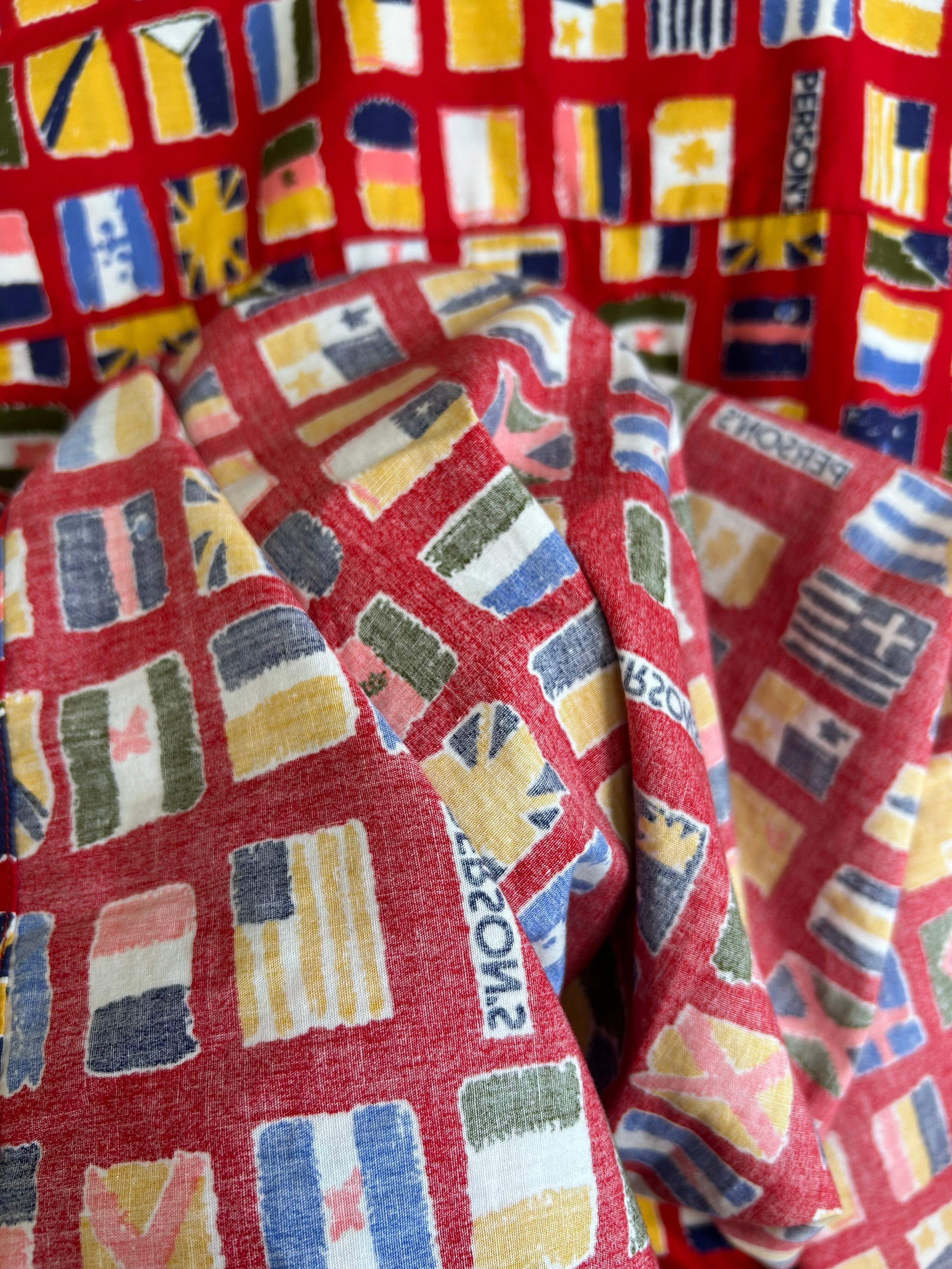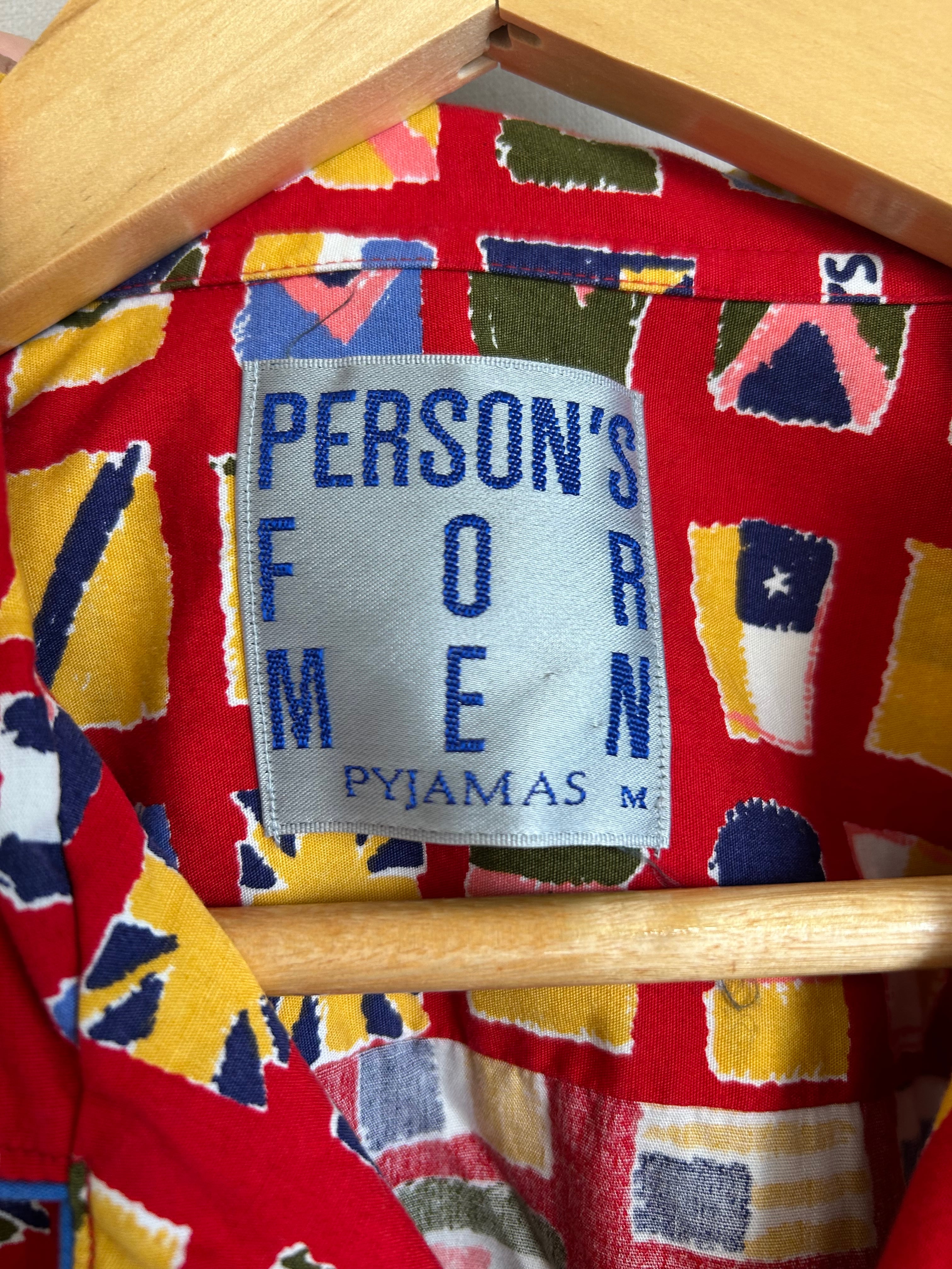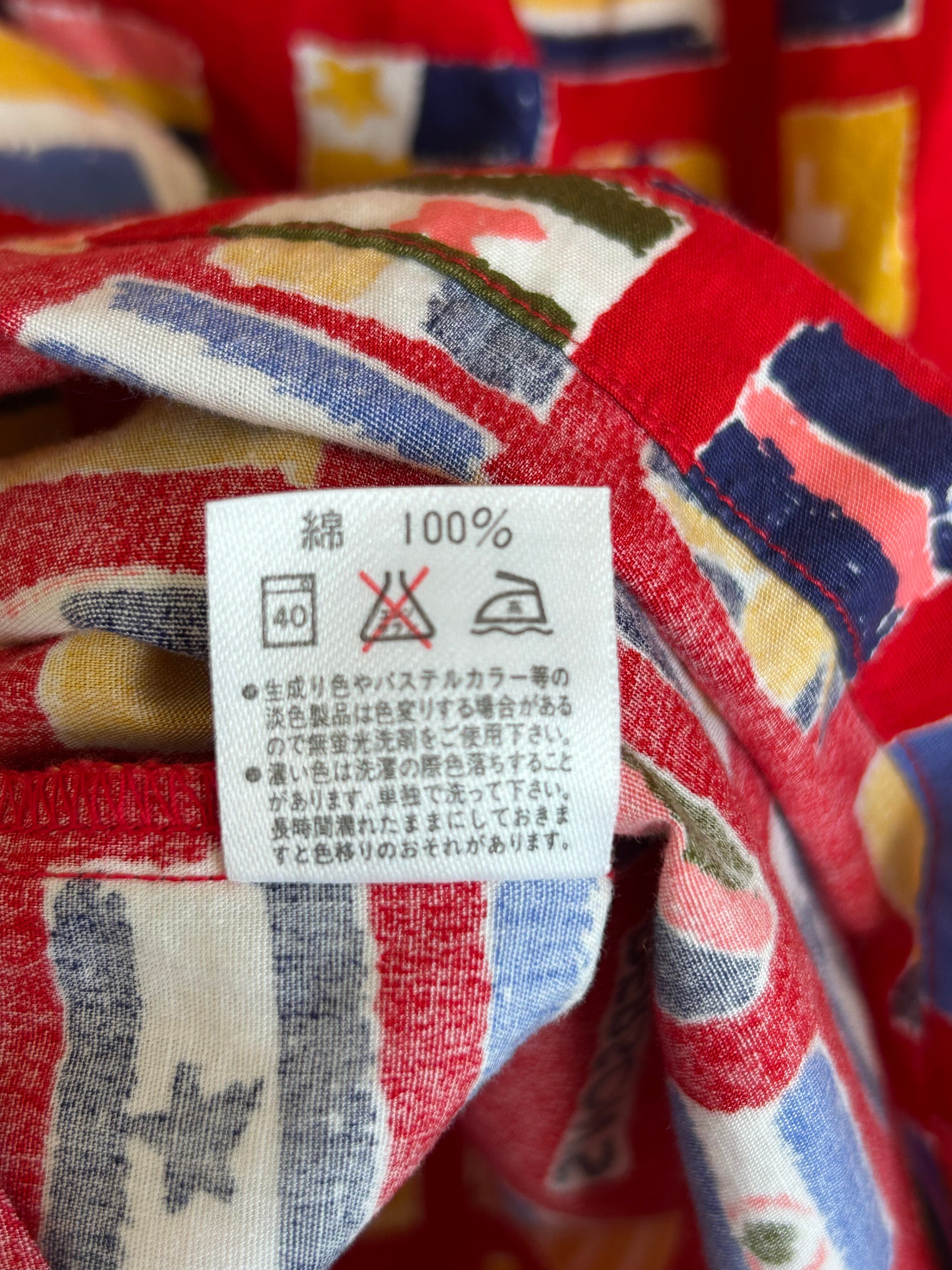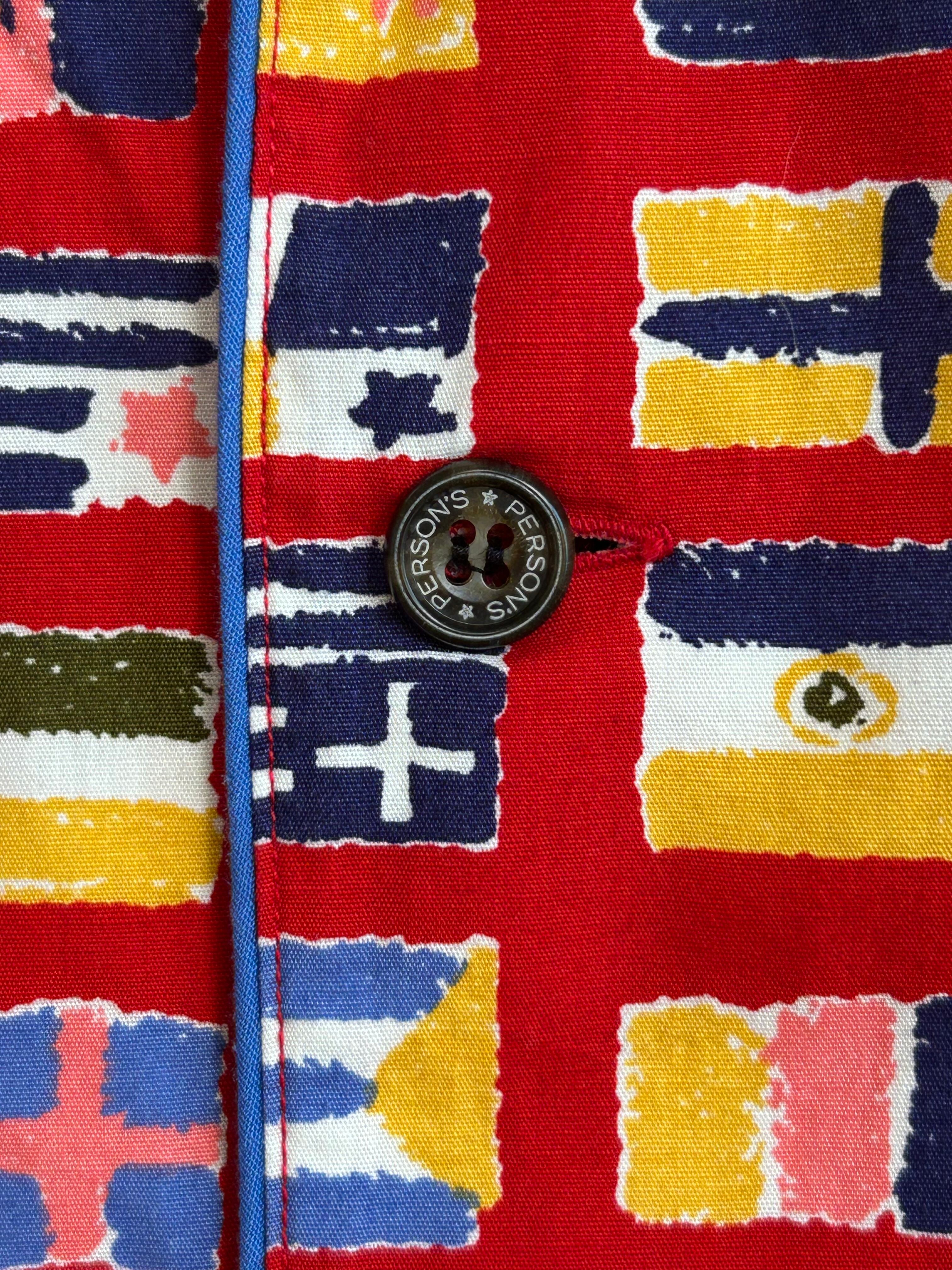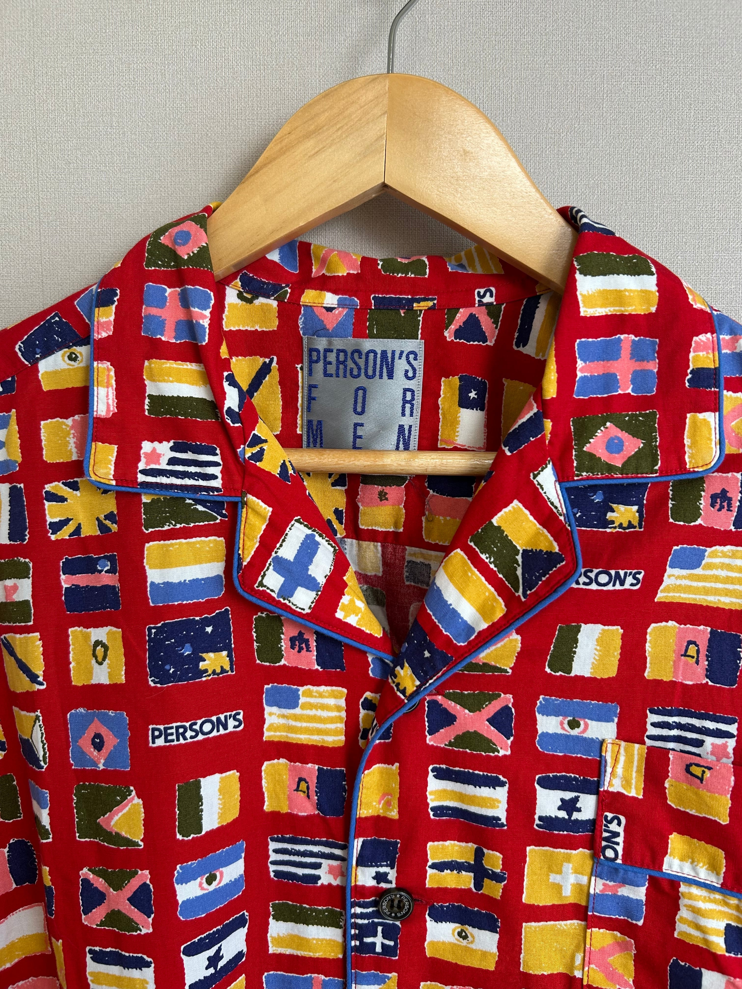 カラフルな国旗柄のプリントが楽しいパジャマシャツ。