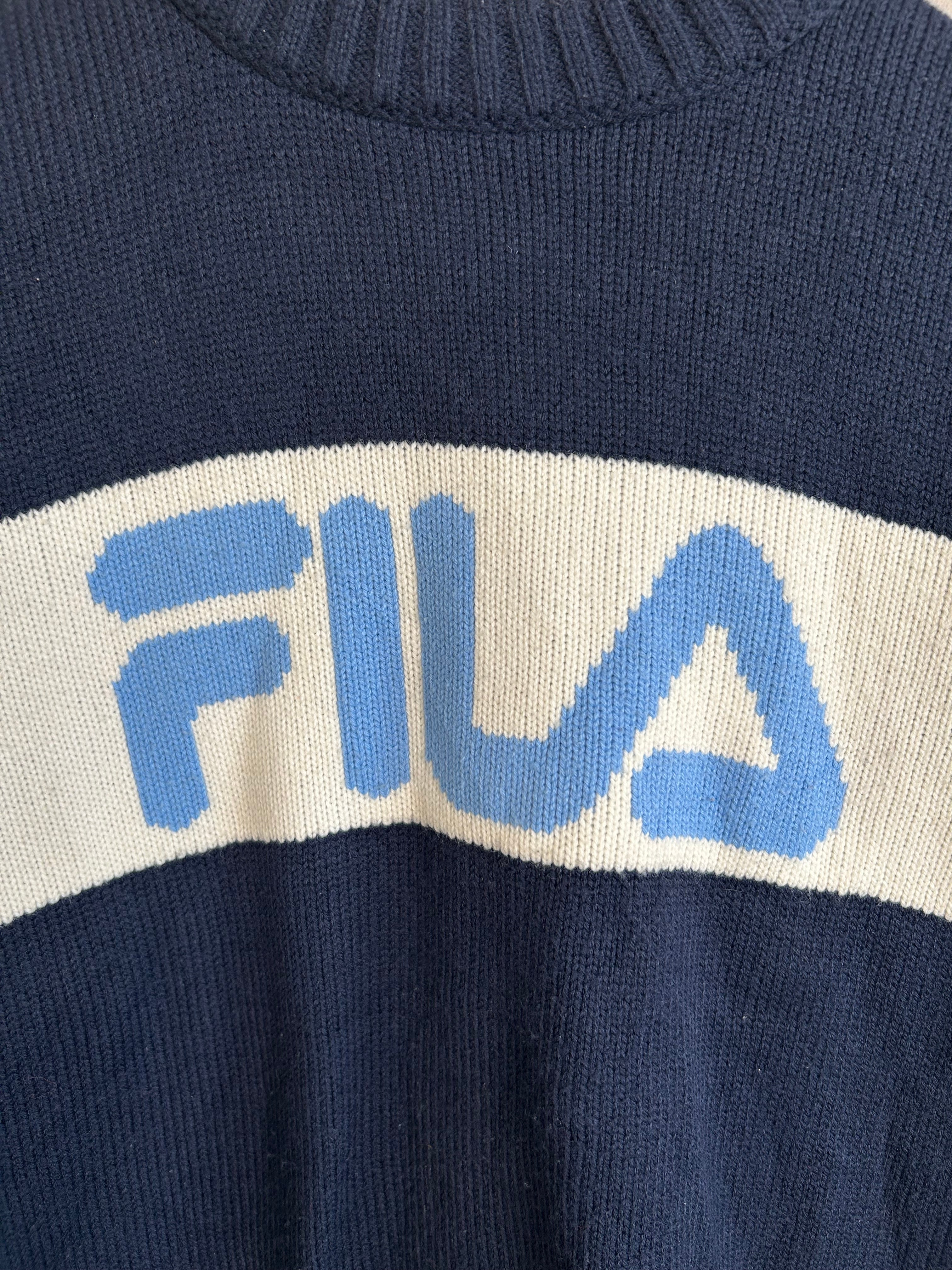 真ん中にドーンとFILAのロゴが入ったセーター。90年代の雰囲気でかわいい♡