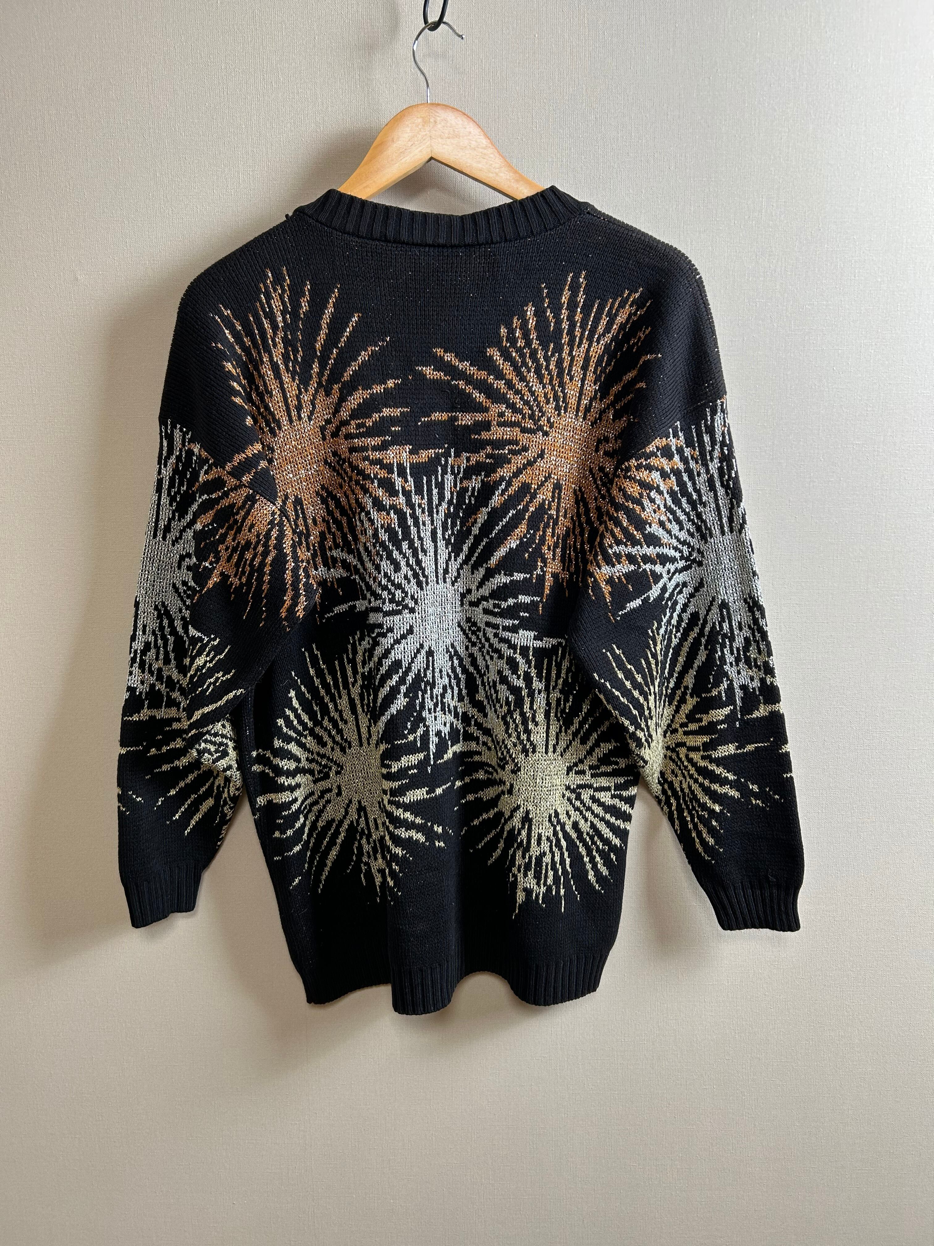 ブラックベースで、ラメ入りのホワイト、ブラウンの花火柄がオシャレ。