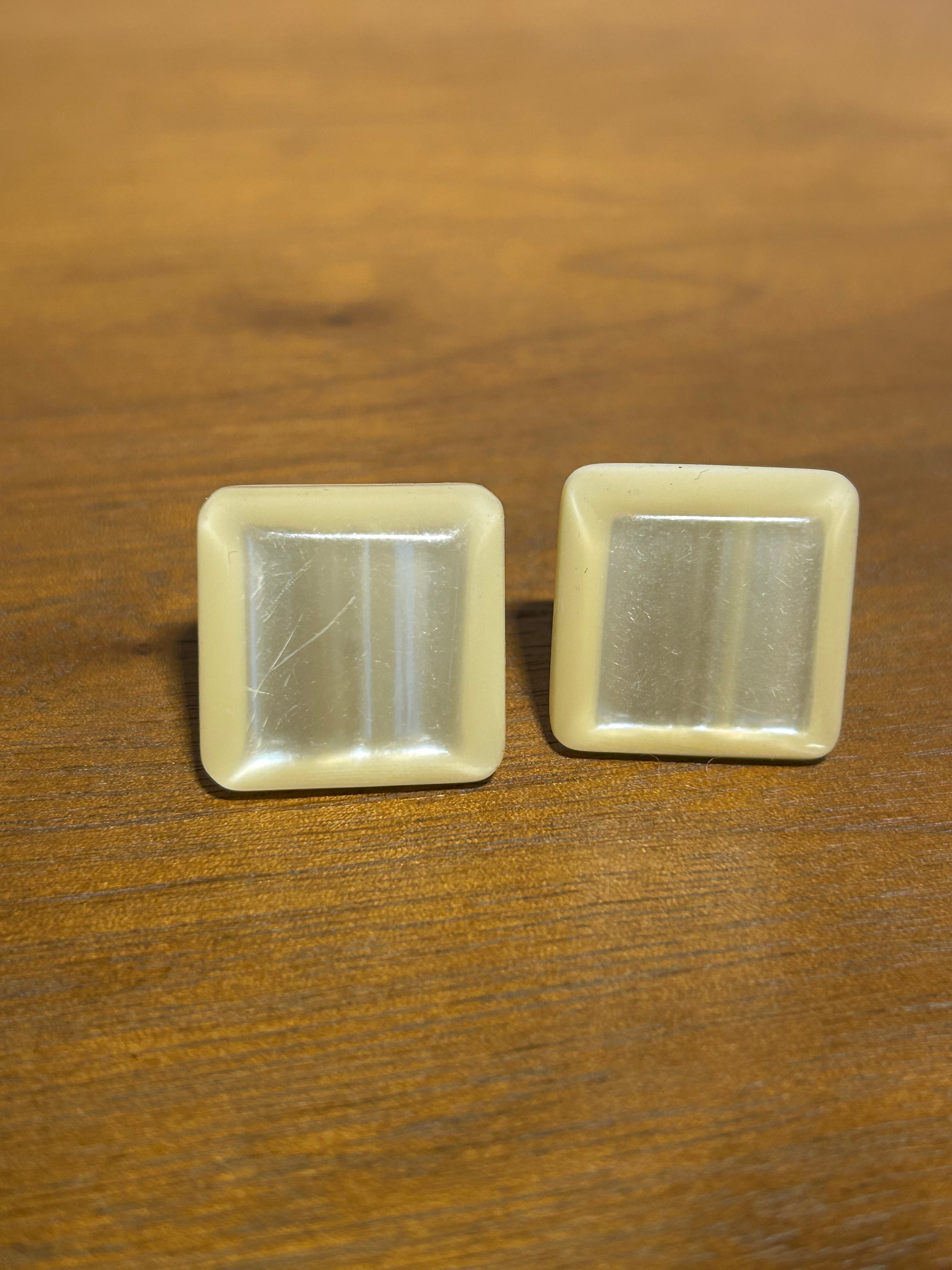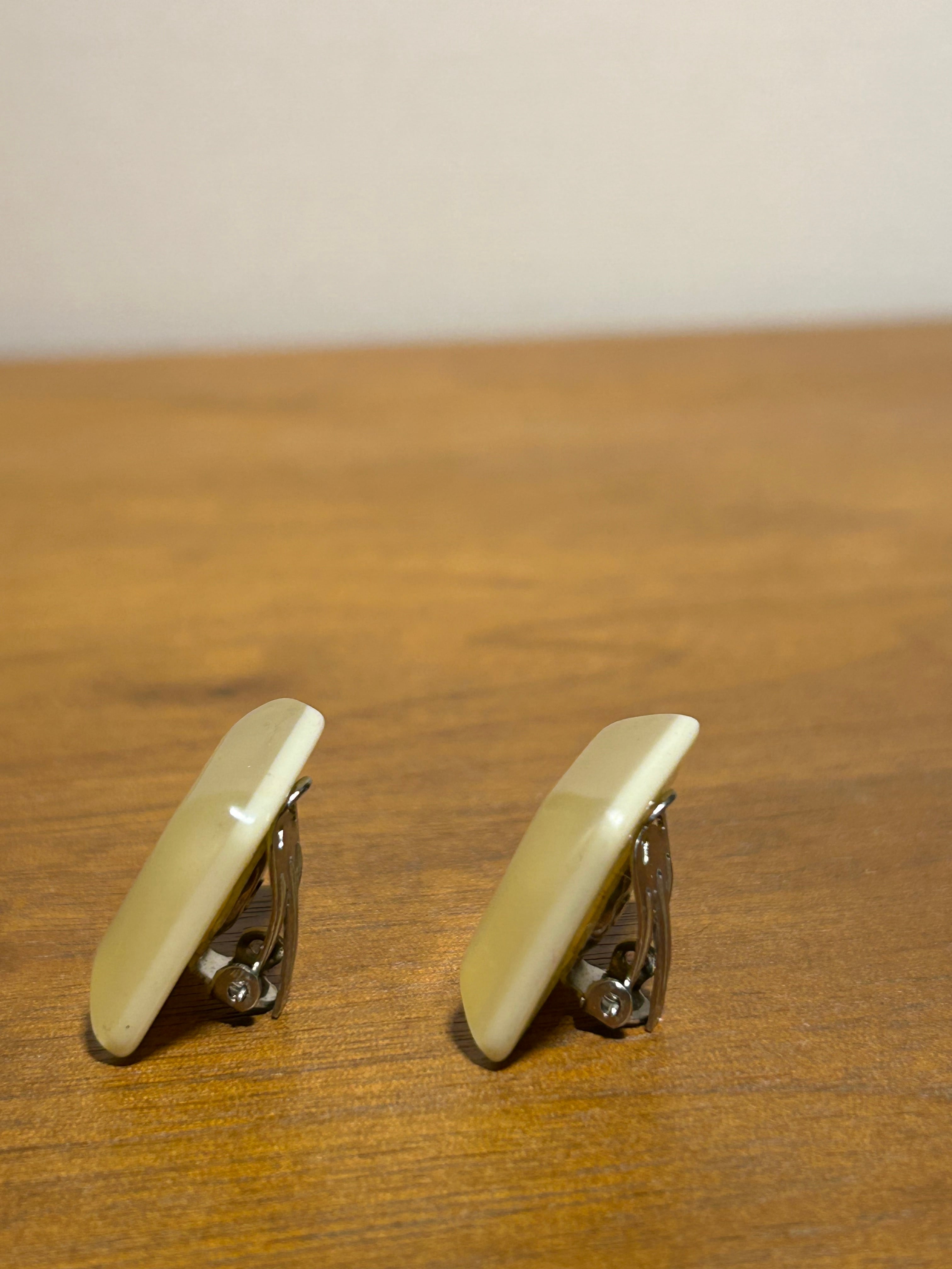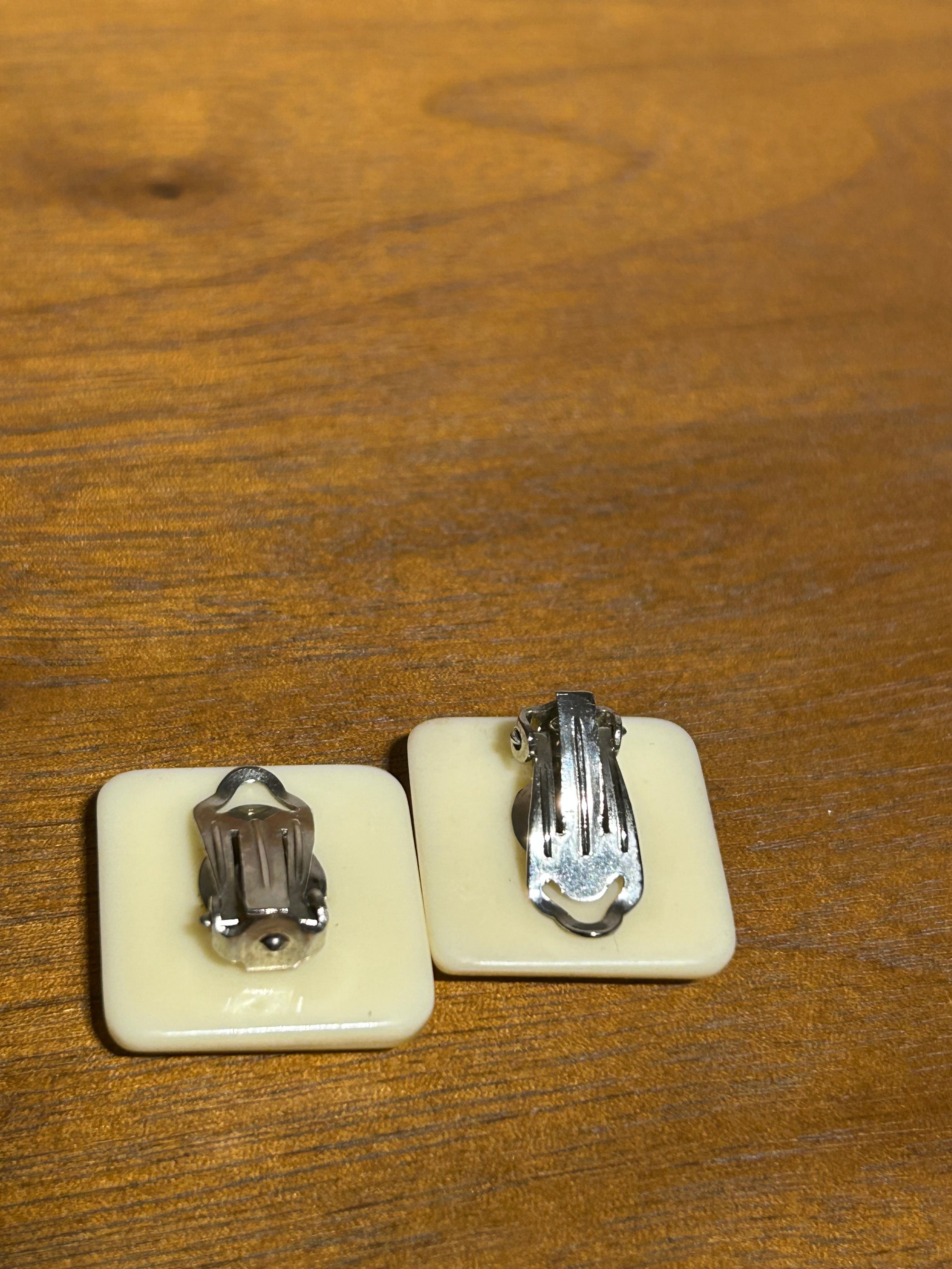 プラスチック素材がおもちゃっぽい、レトロな雰囲気の四角いイヤリング。