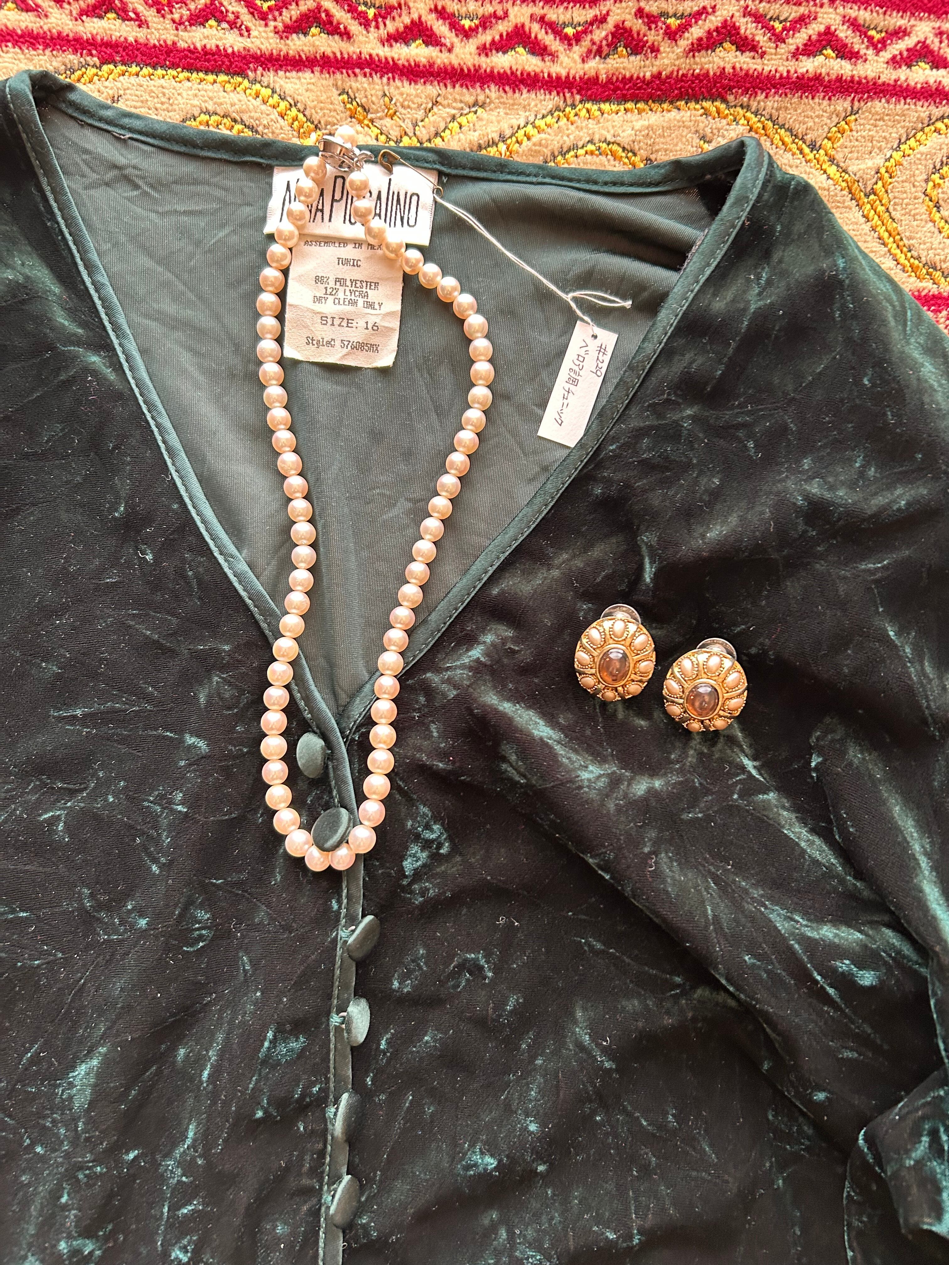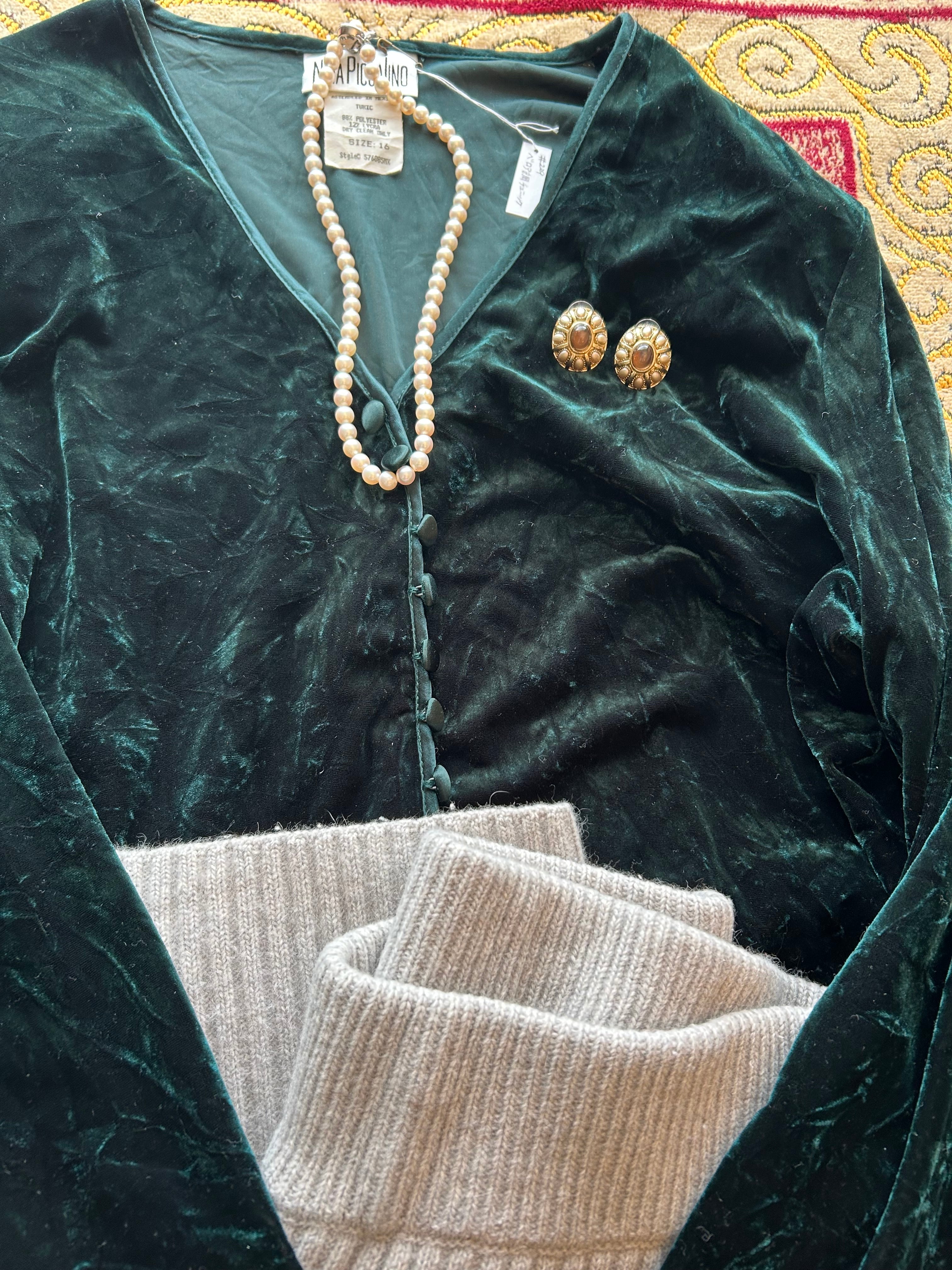 ベロア素材のあたたかで、ゆったりとしたシルエットとストレッチ性があるので、リラックスした着心地の1枚。