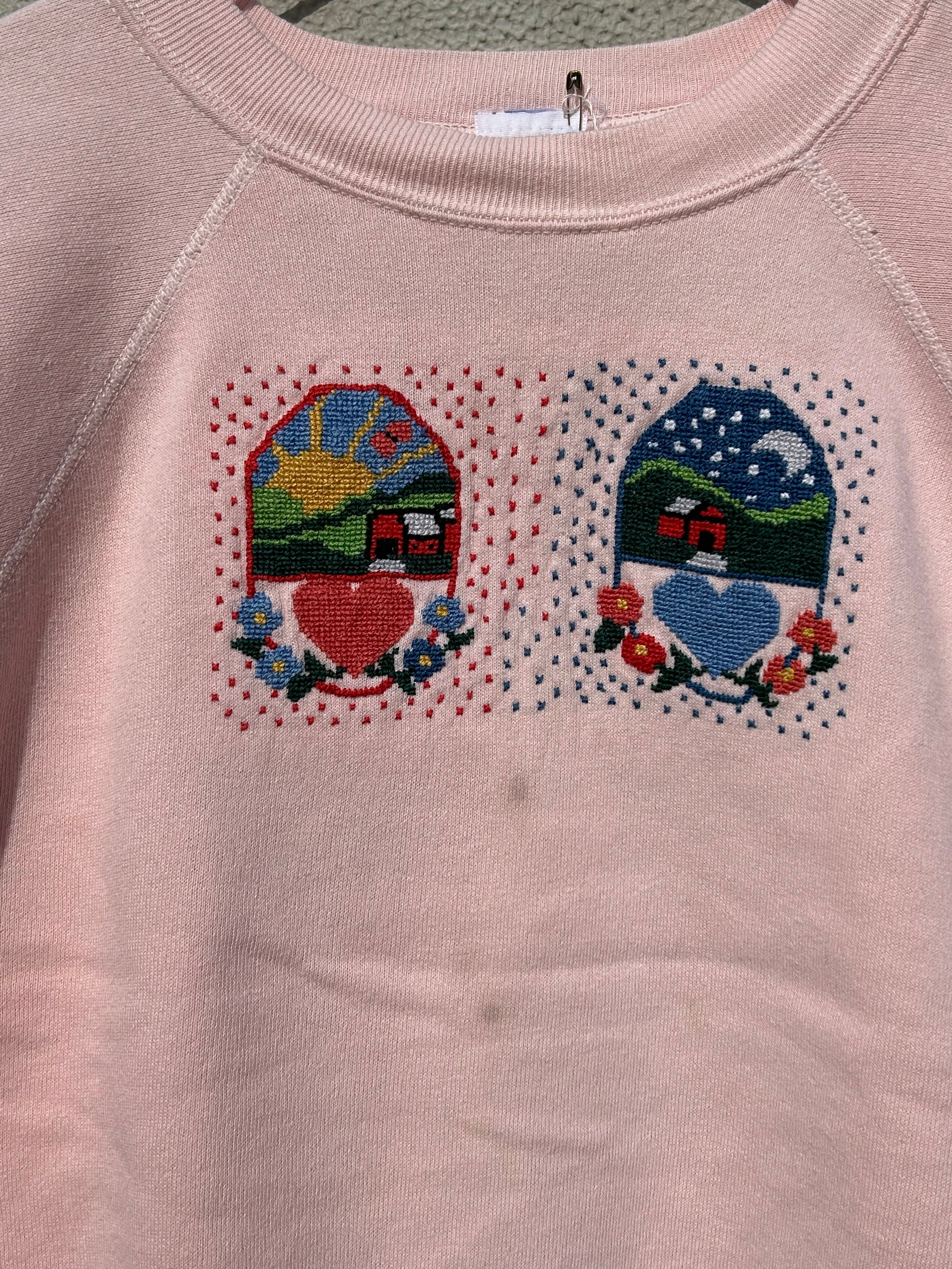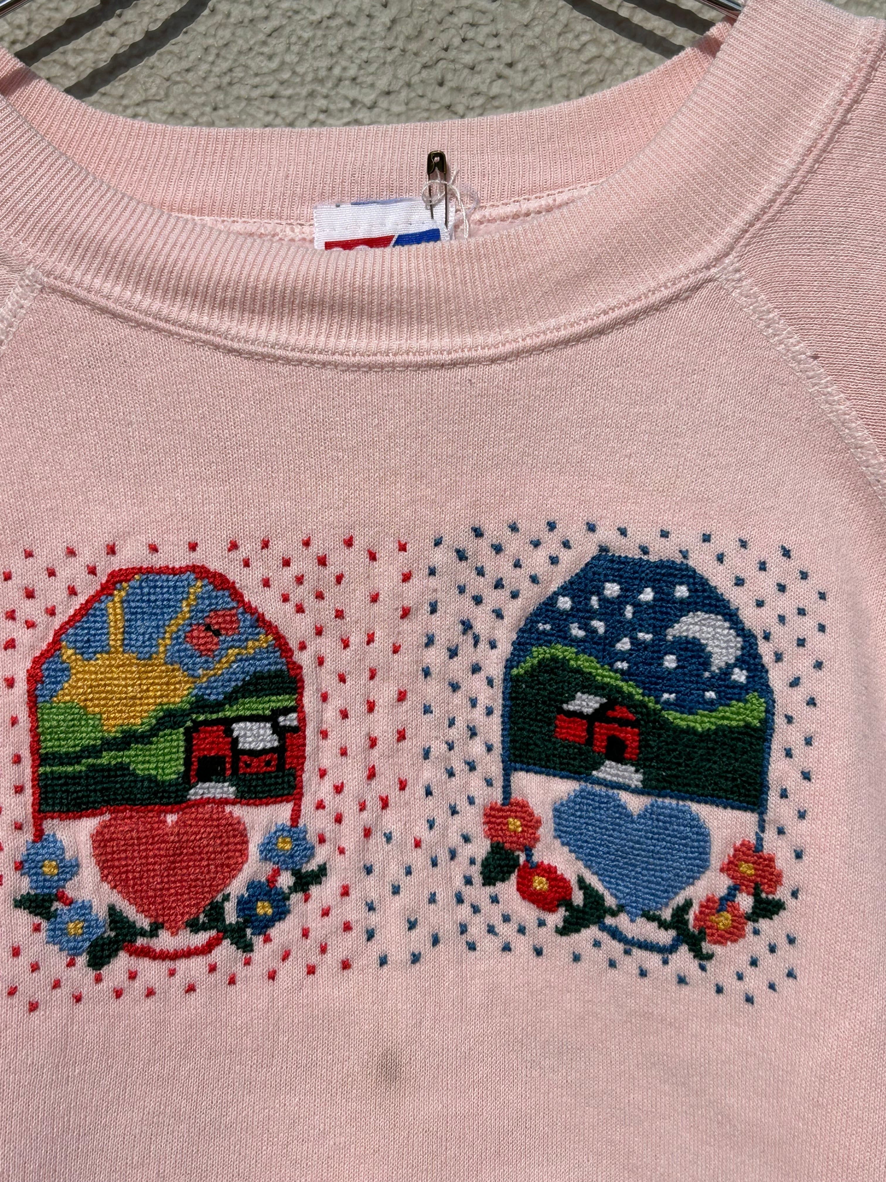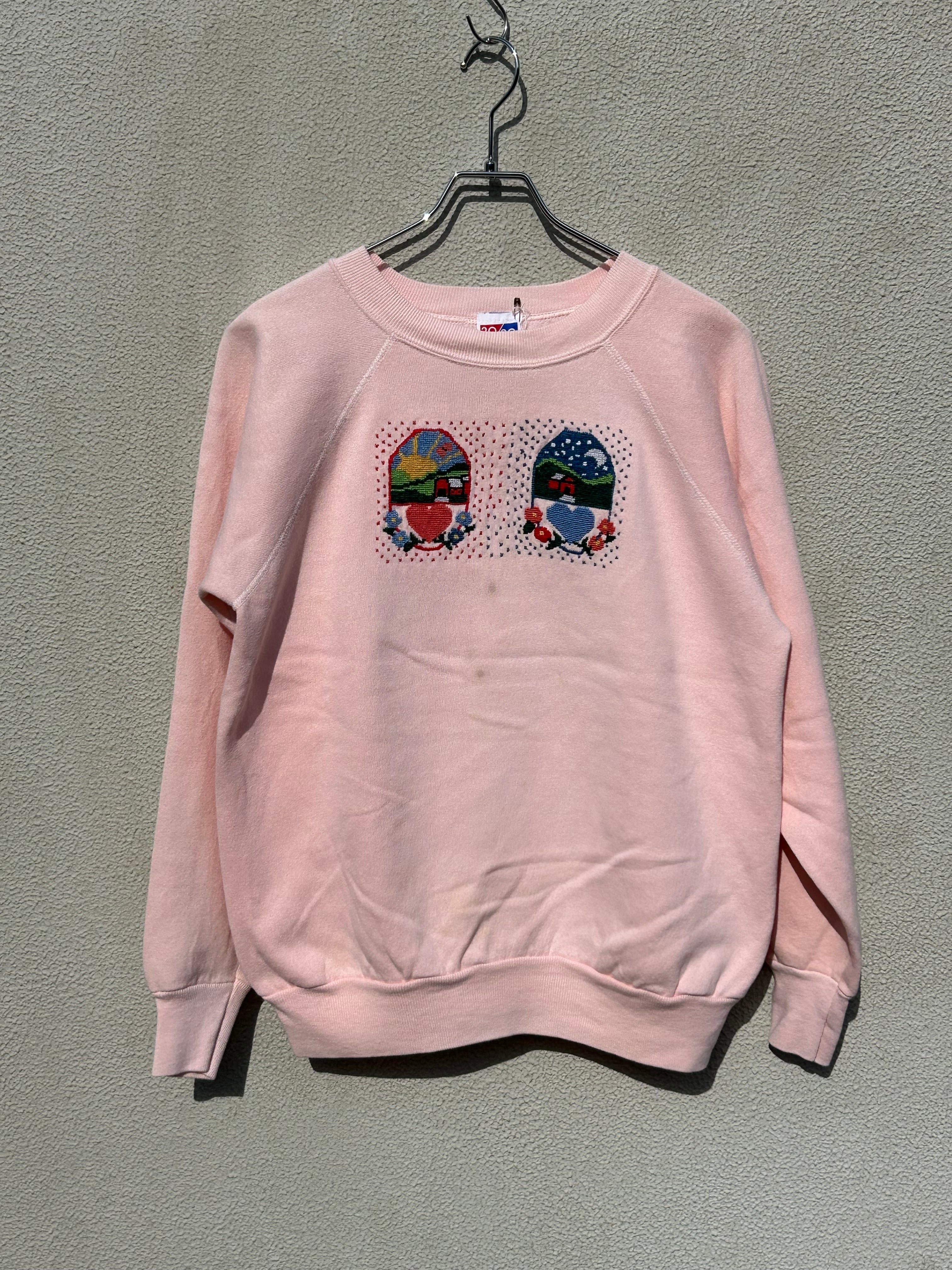 ■90年製 アメリカ製 ハート柄刺繍スウェット