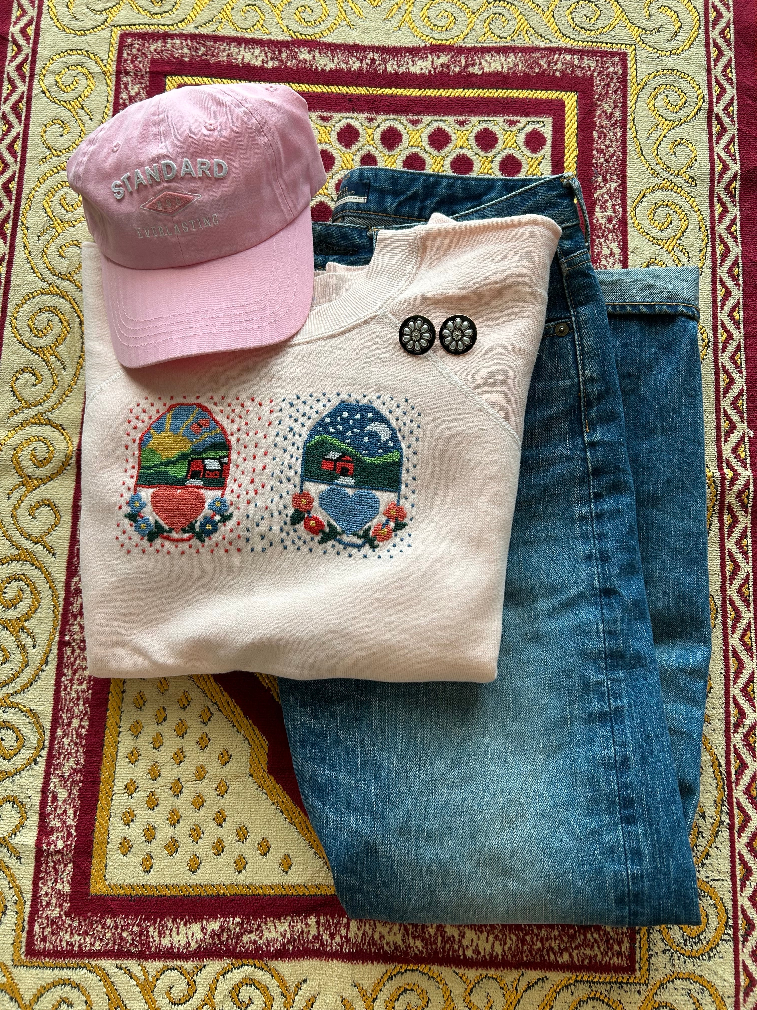 パステルピンク×ハート刺繍がかわいいスウェット。