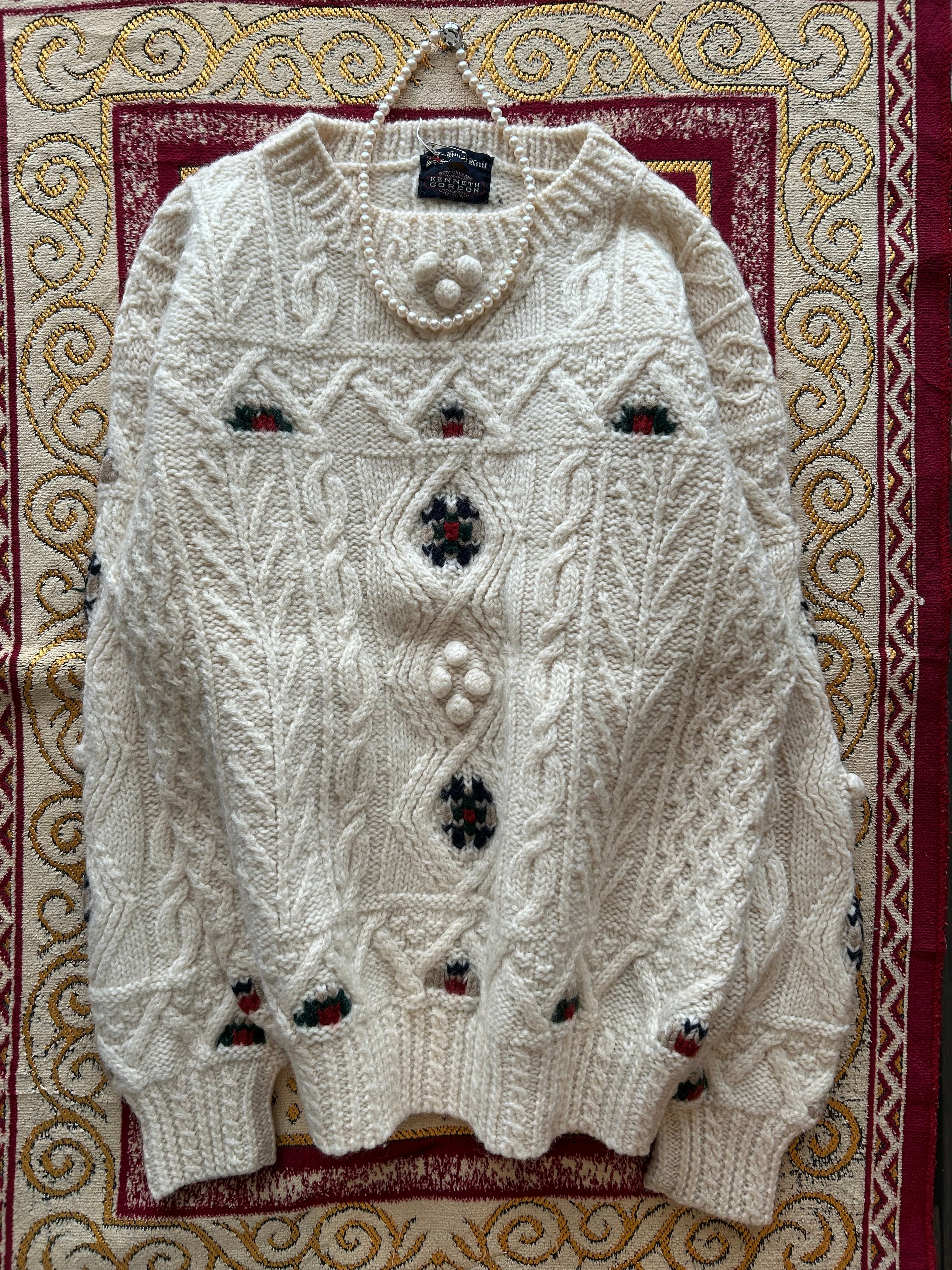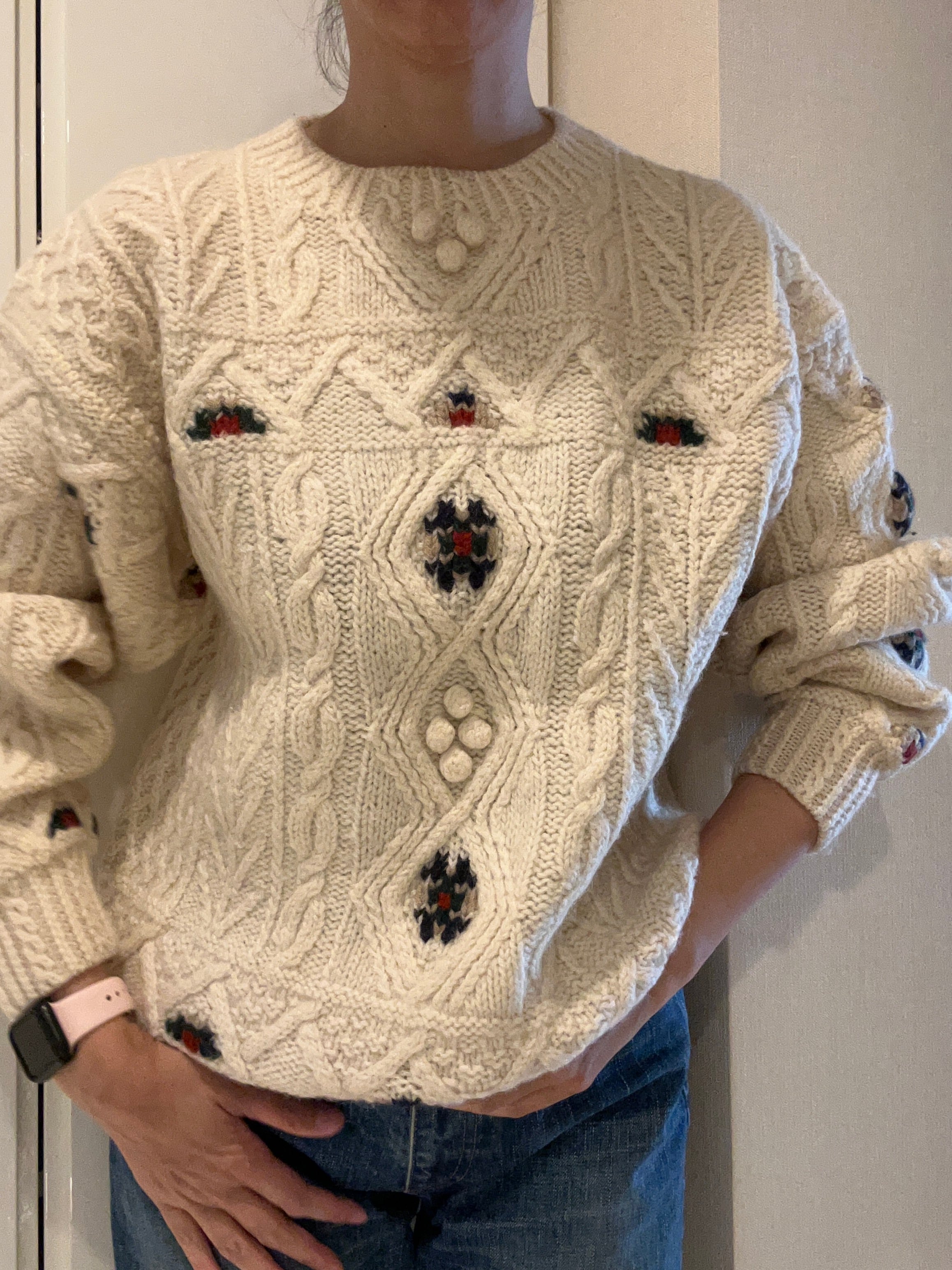 王道のケーブル編みニットです。
