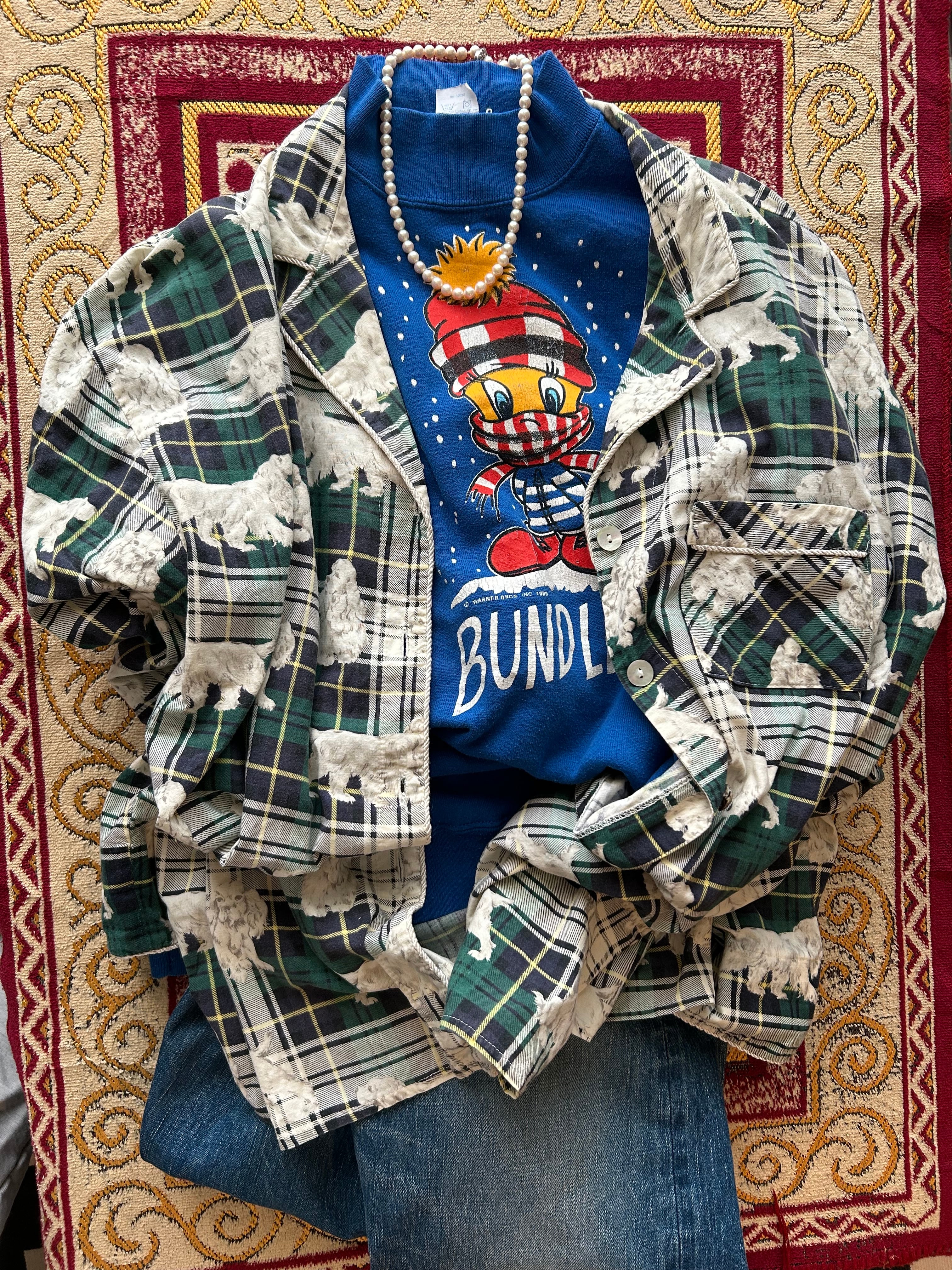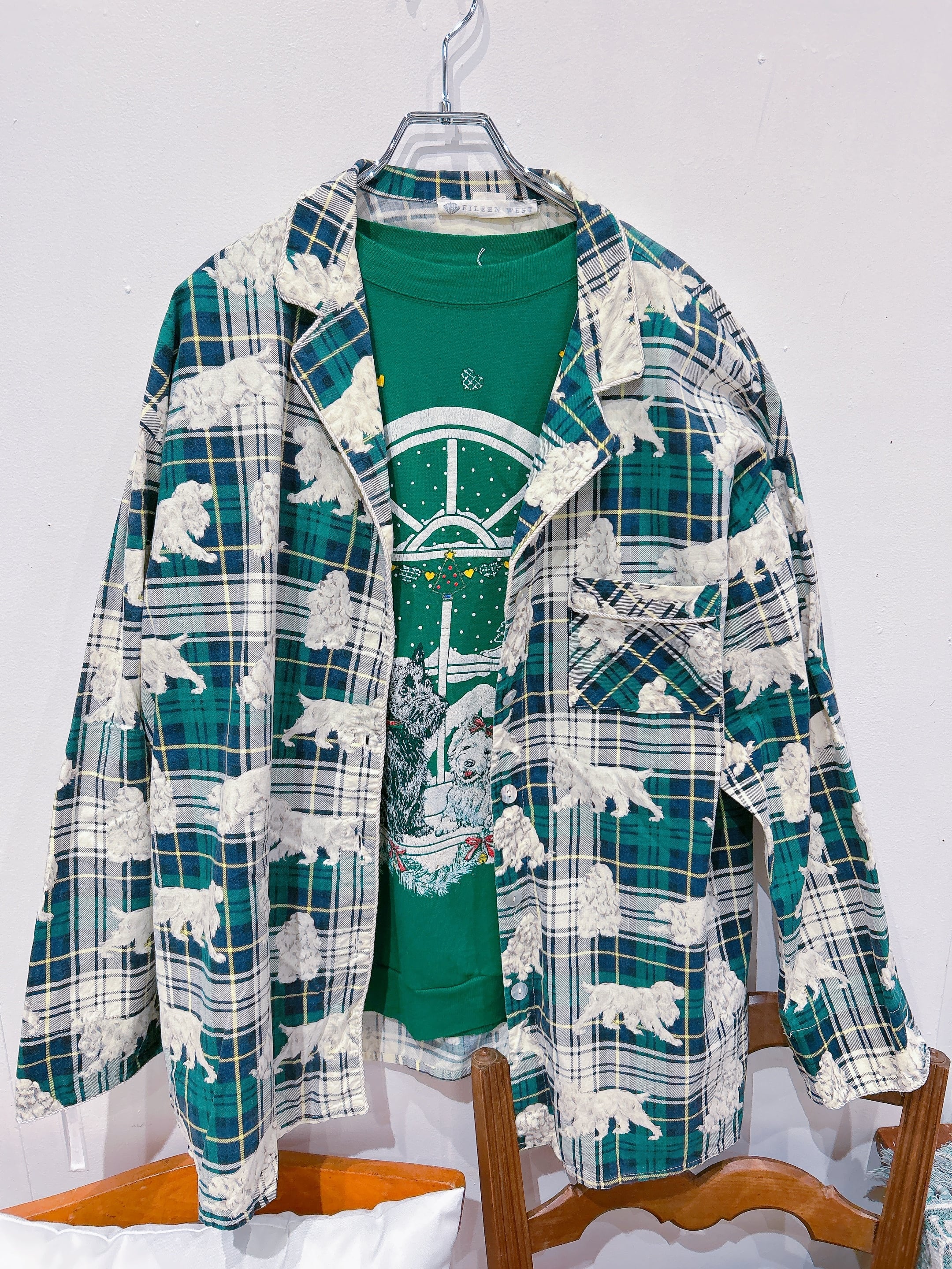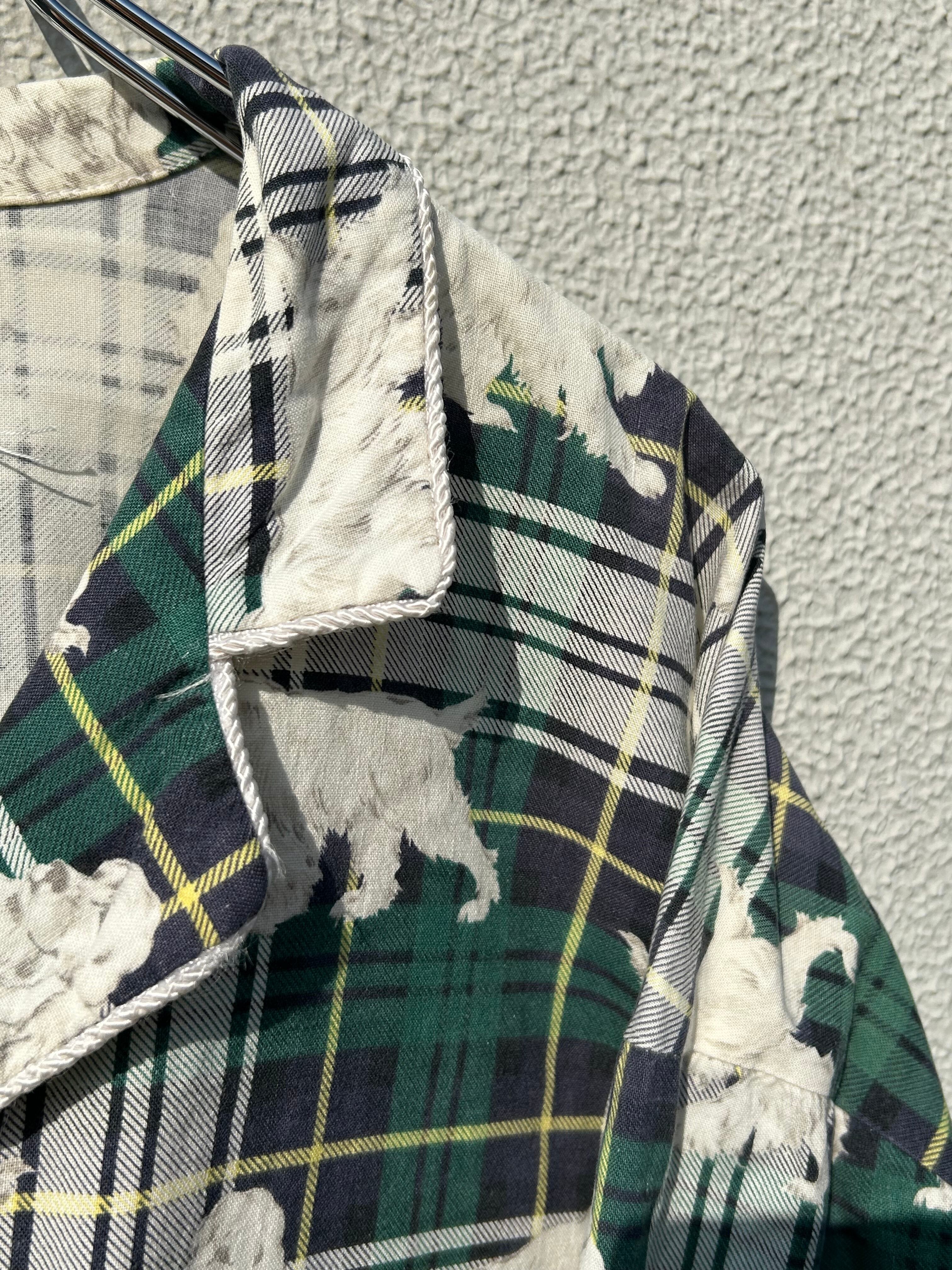 ■犬柄チェックパジャマシャツ