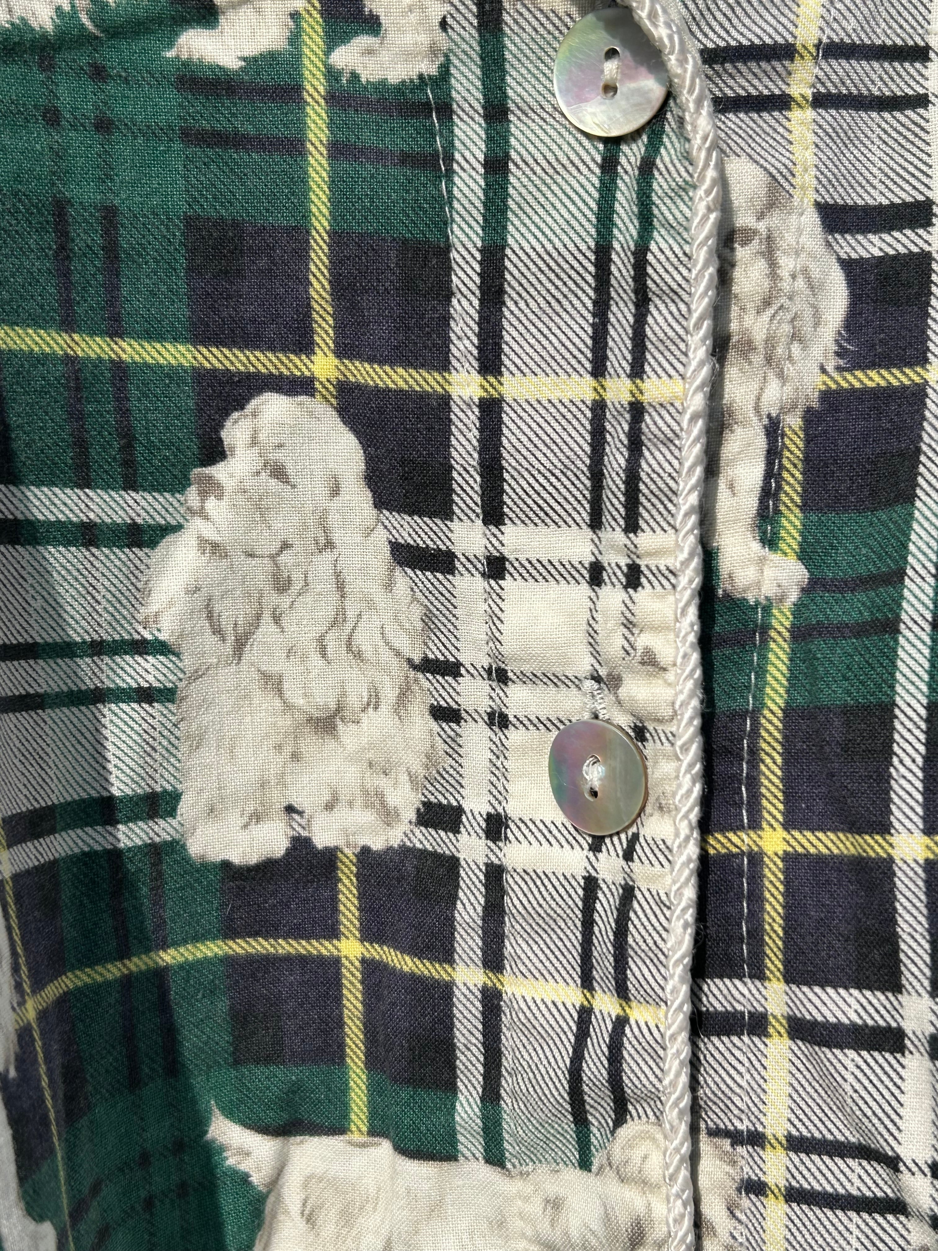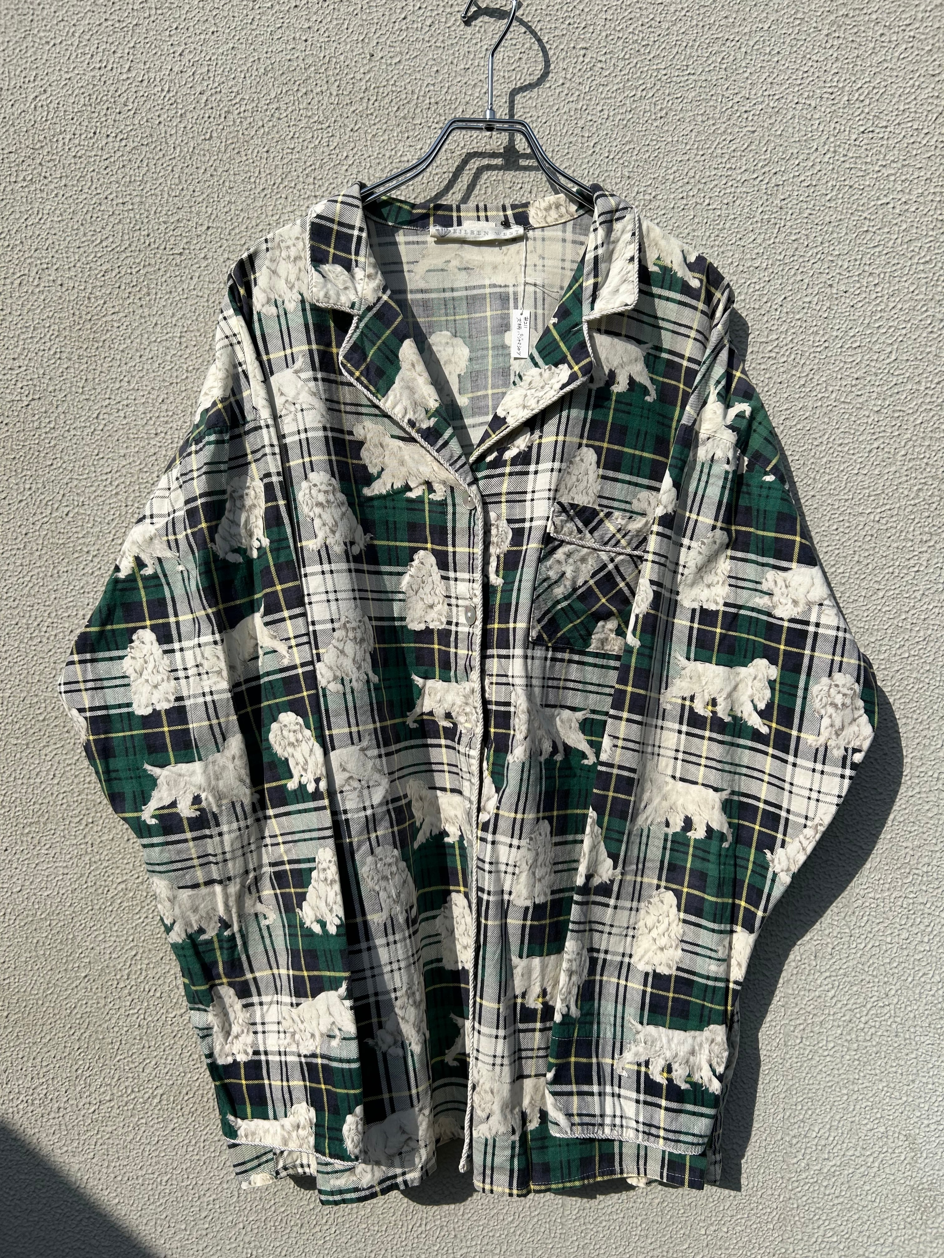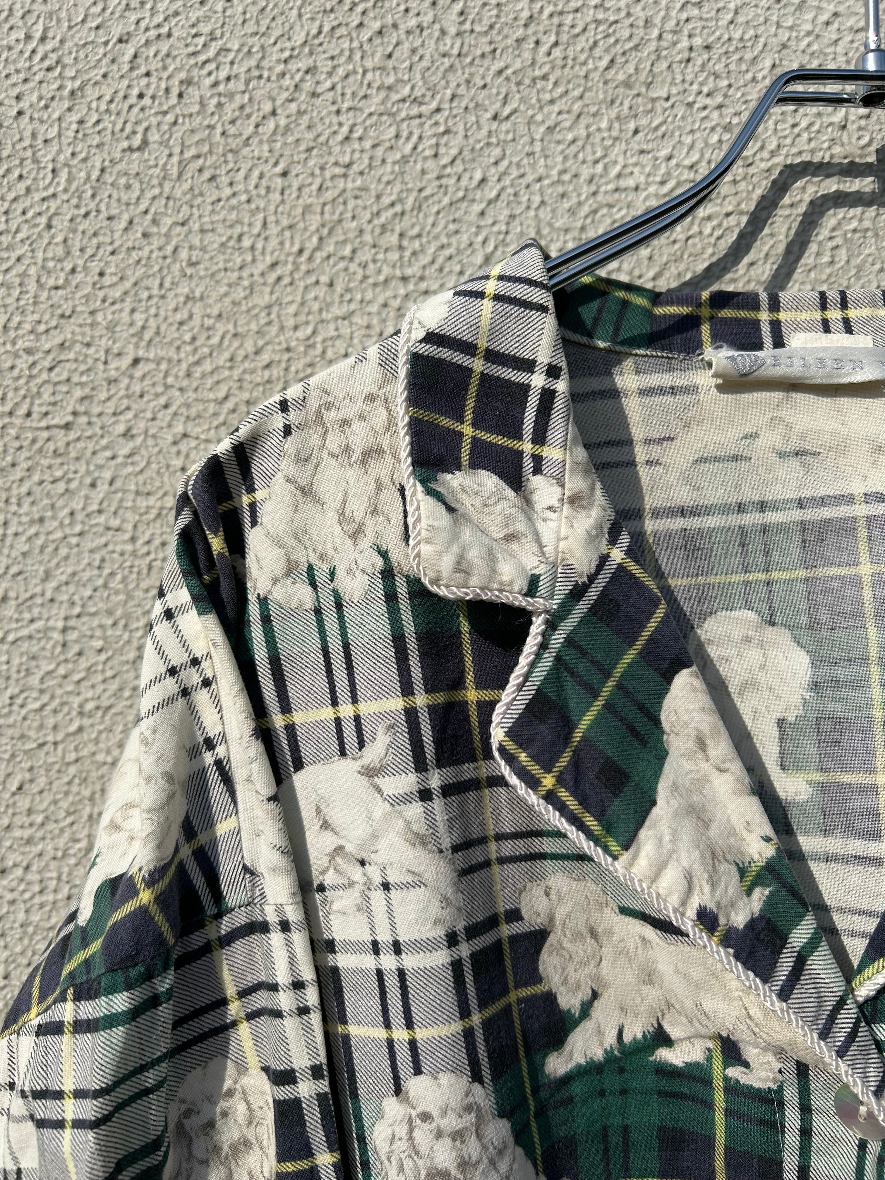 全面に犬プリント&チェック柄がかわいいしかないパジャマシャツです。
