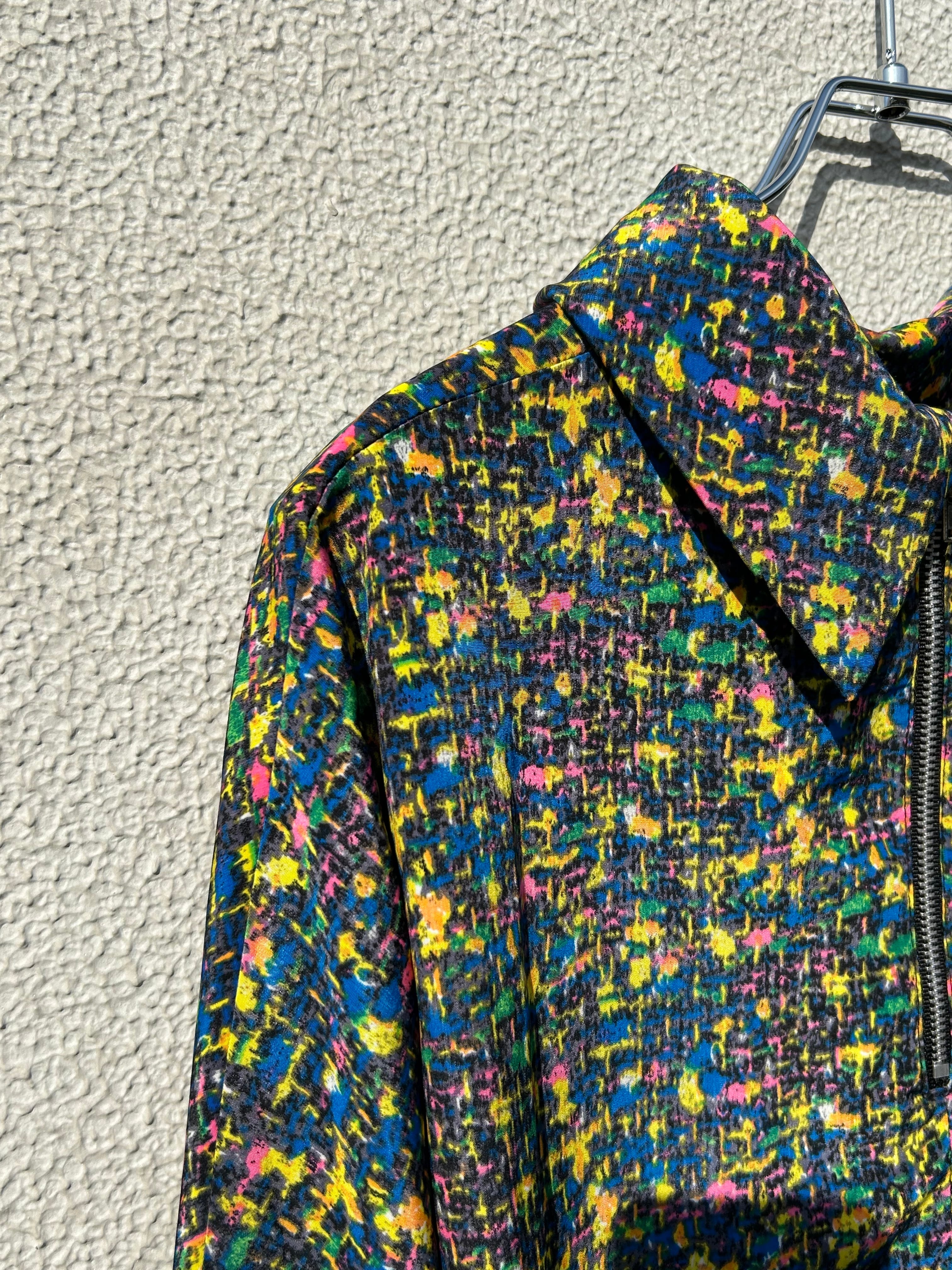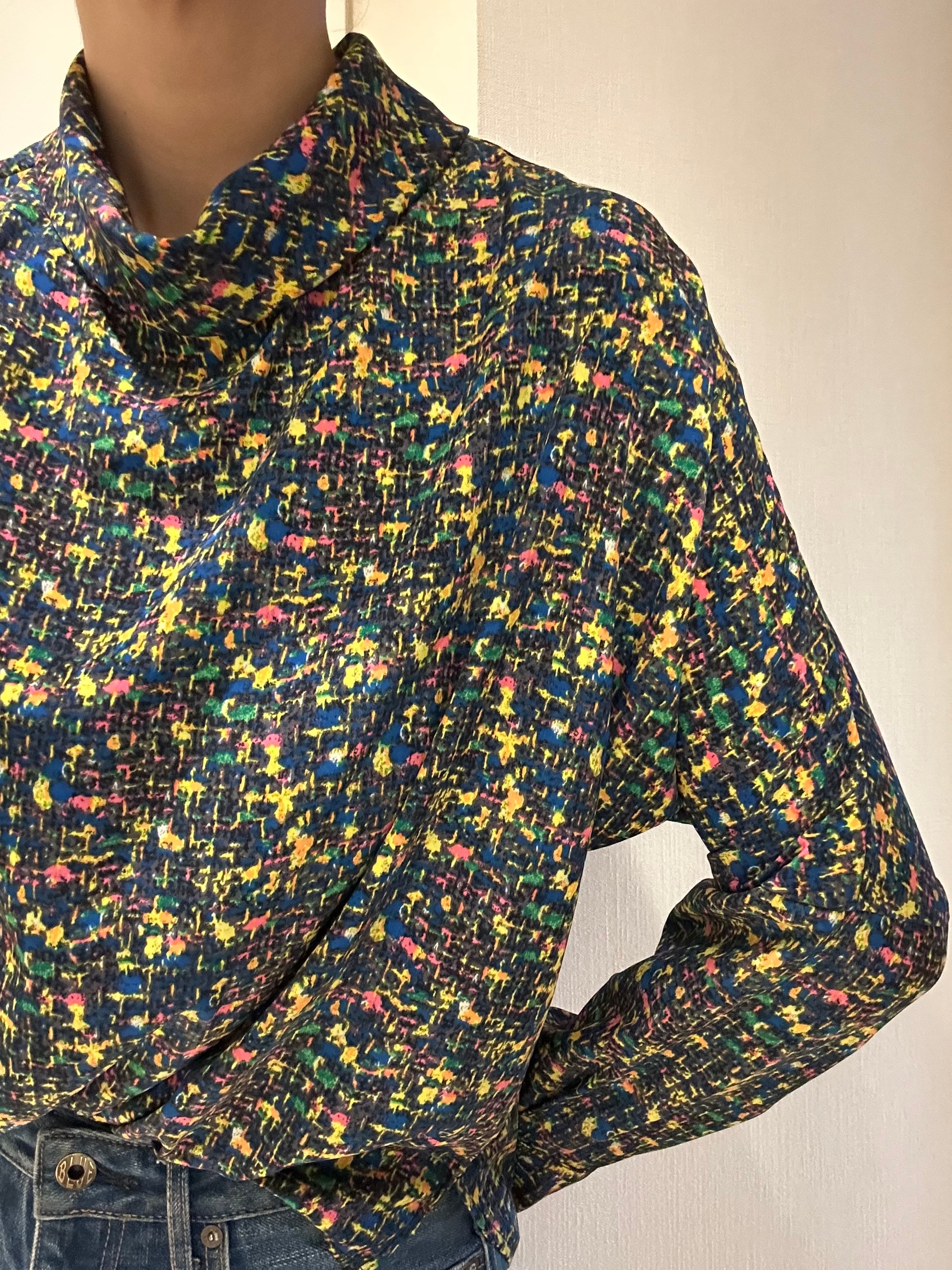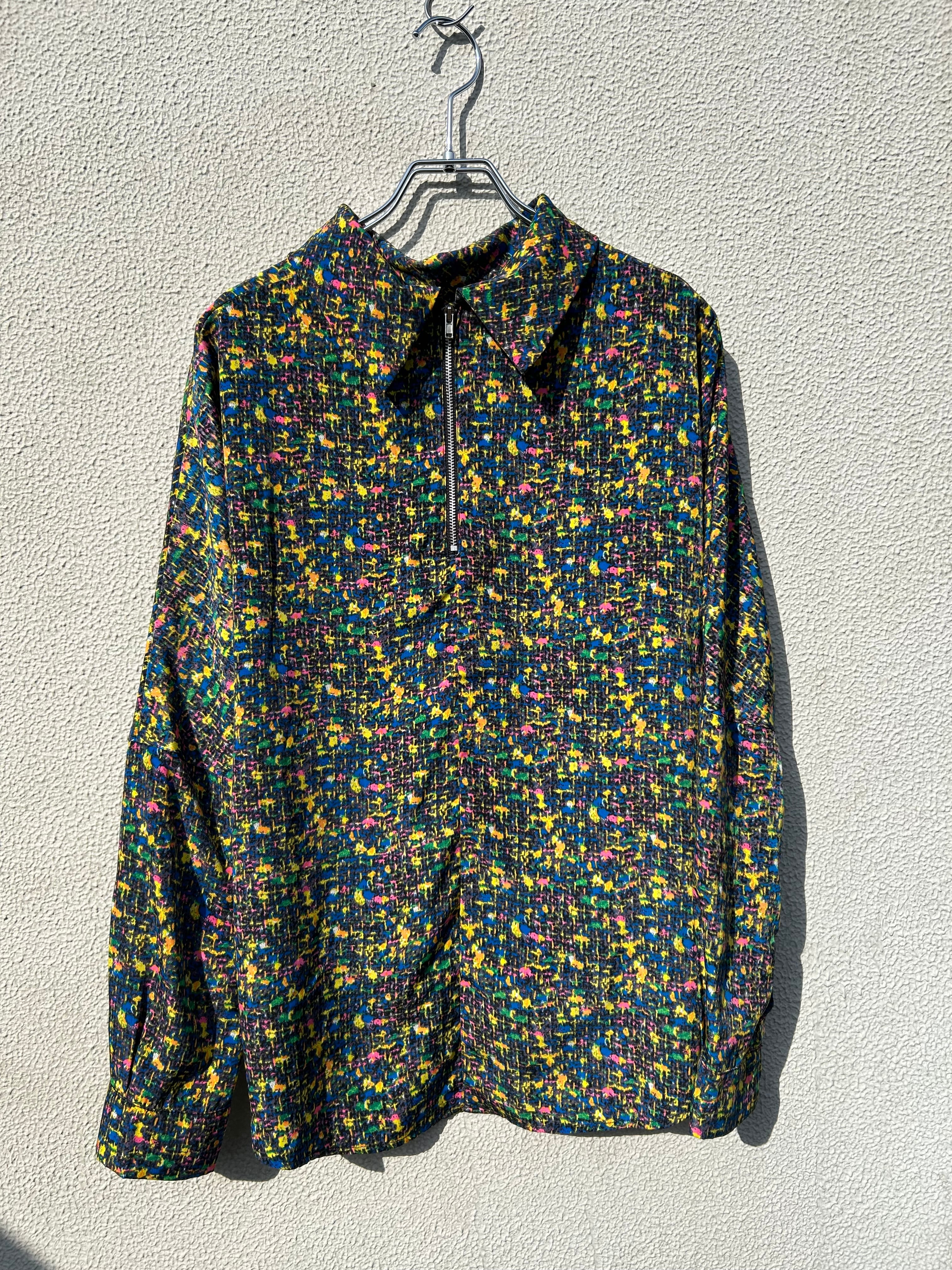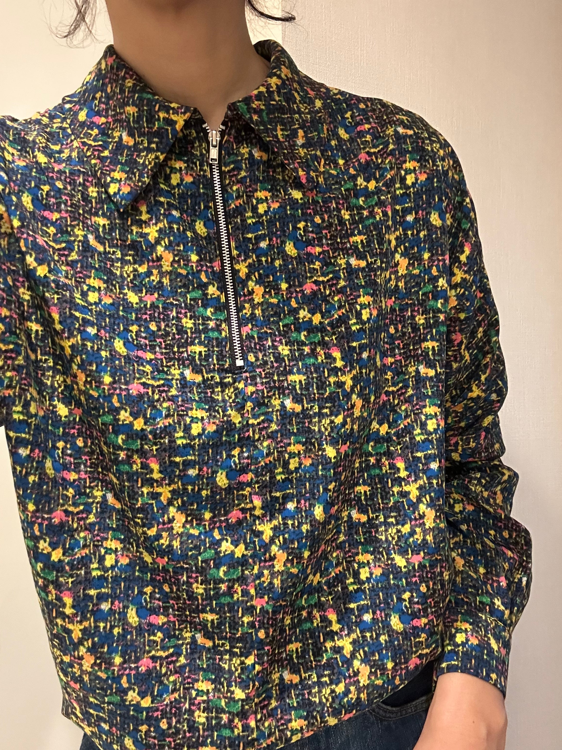 前後で襟元がハーフジップとハイネック、2つの着こなしが楽しめるプリント柄トップスです。
