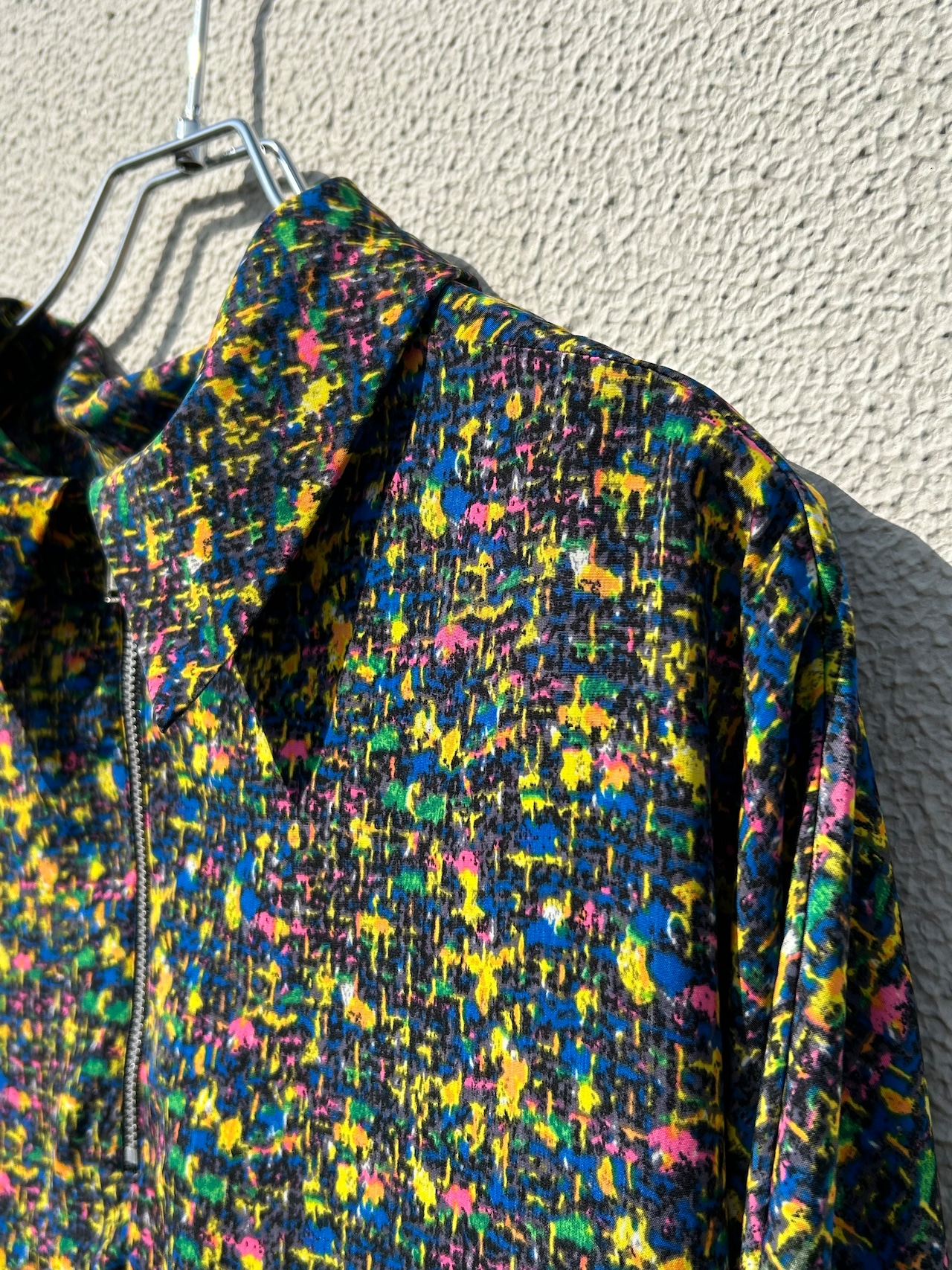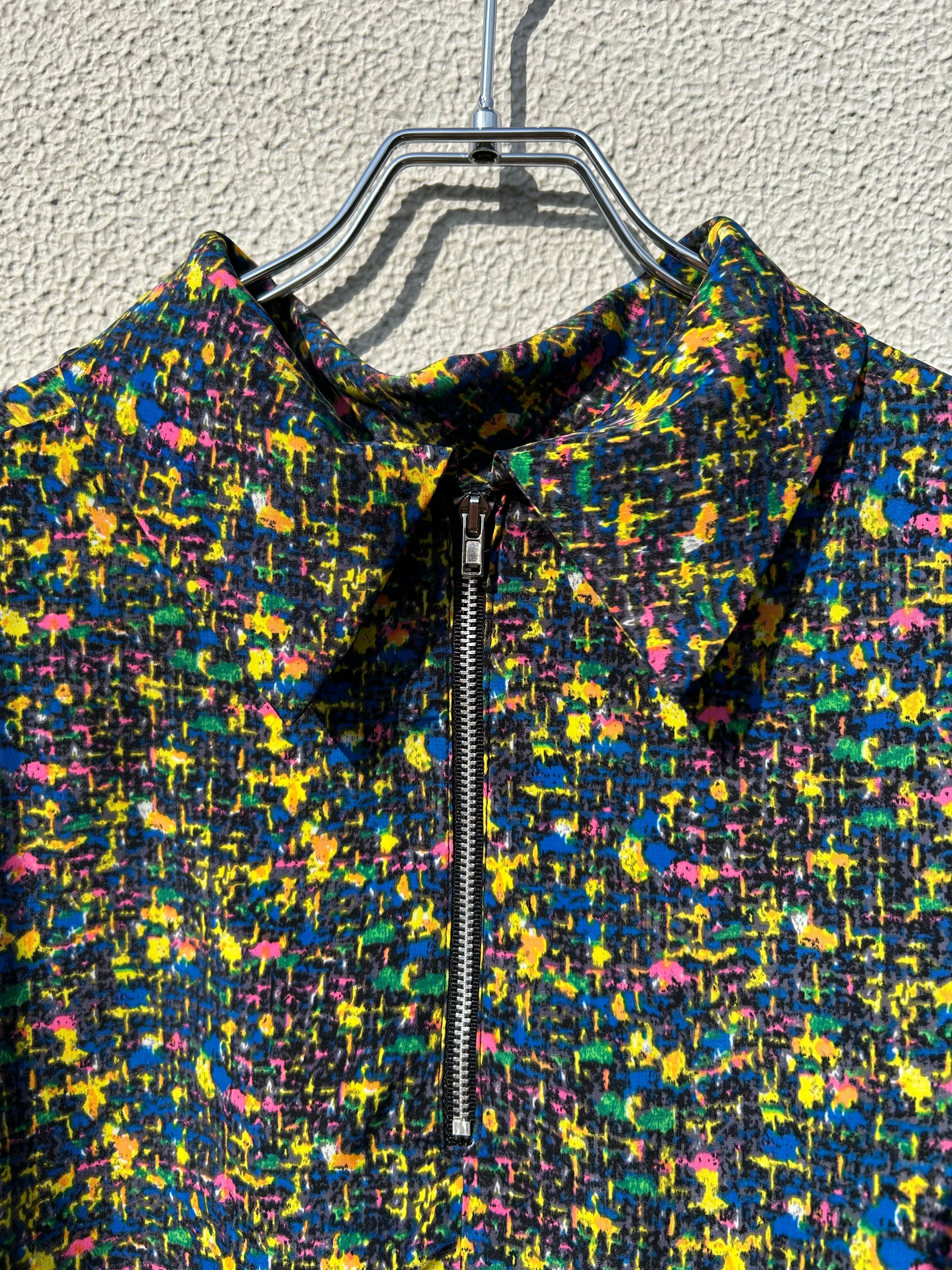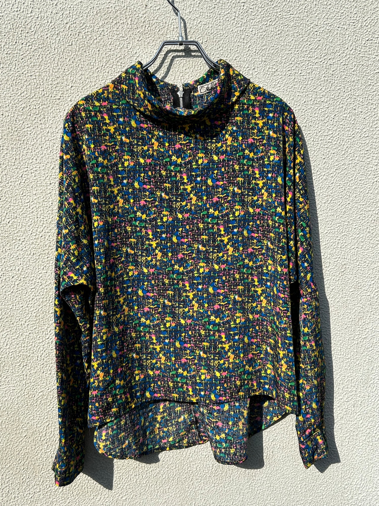 前後で襟元がハーフジップとハイネック、2つの着こなしが楽しめるプリント柄トップスです。