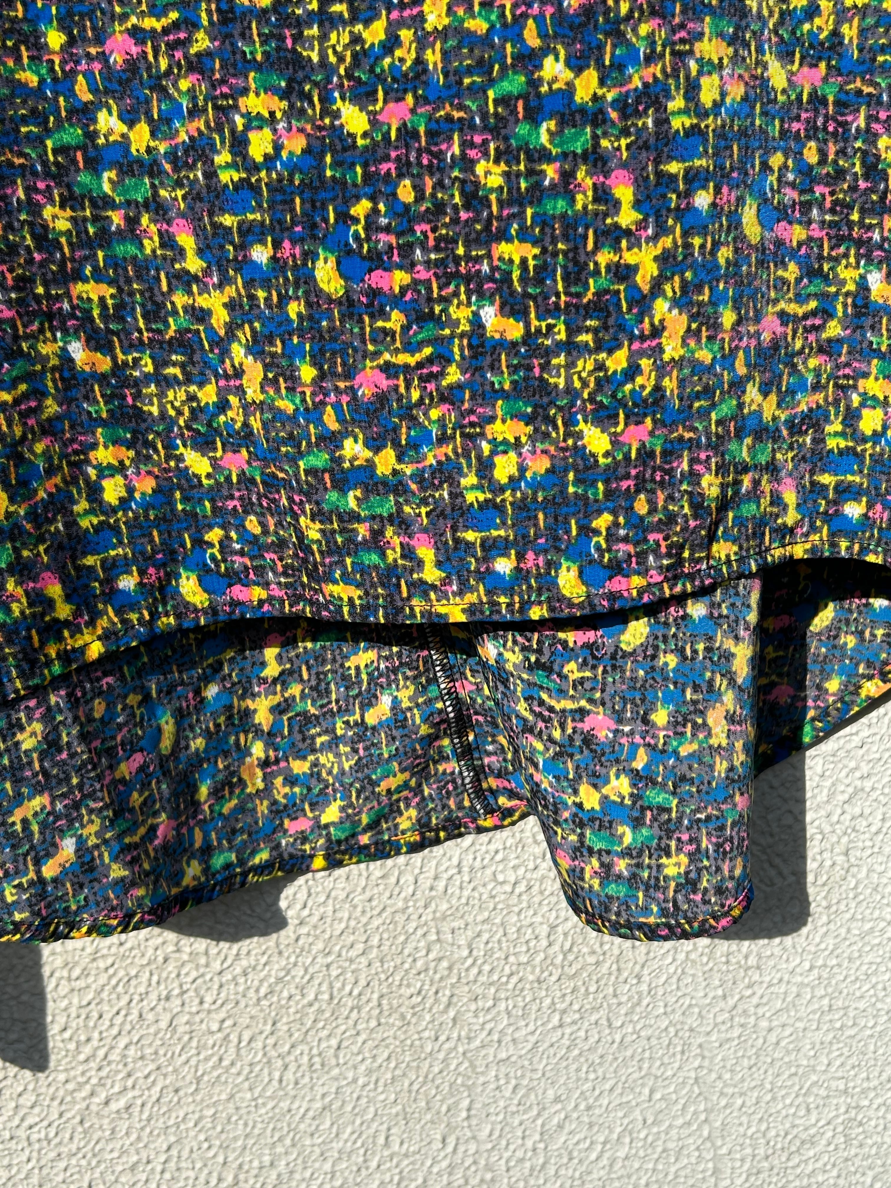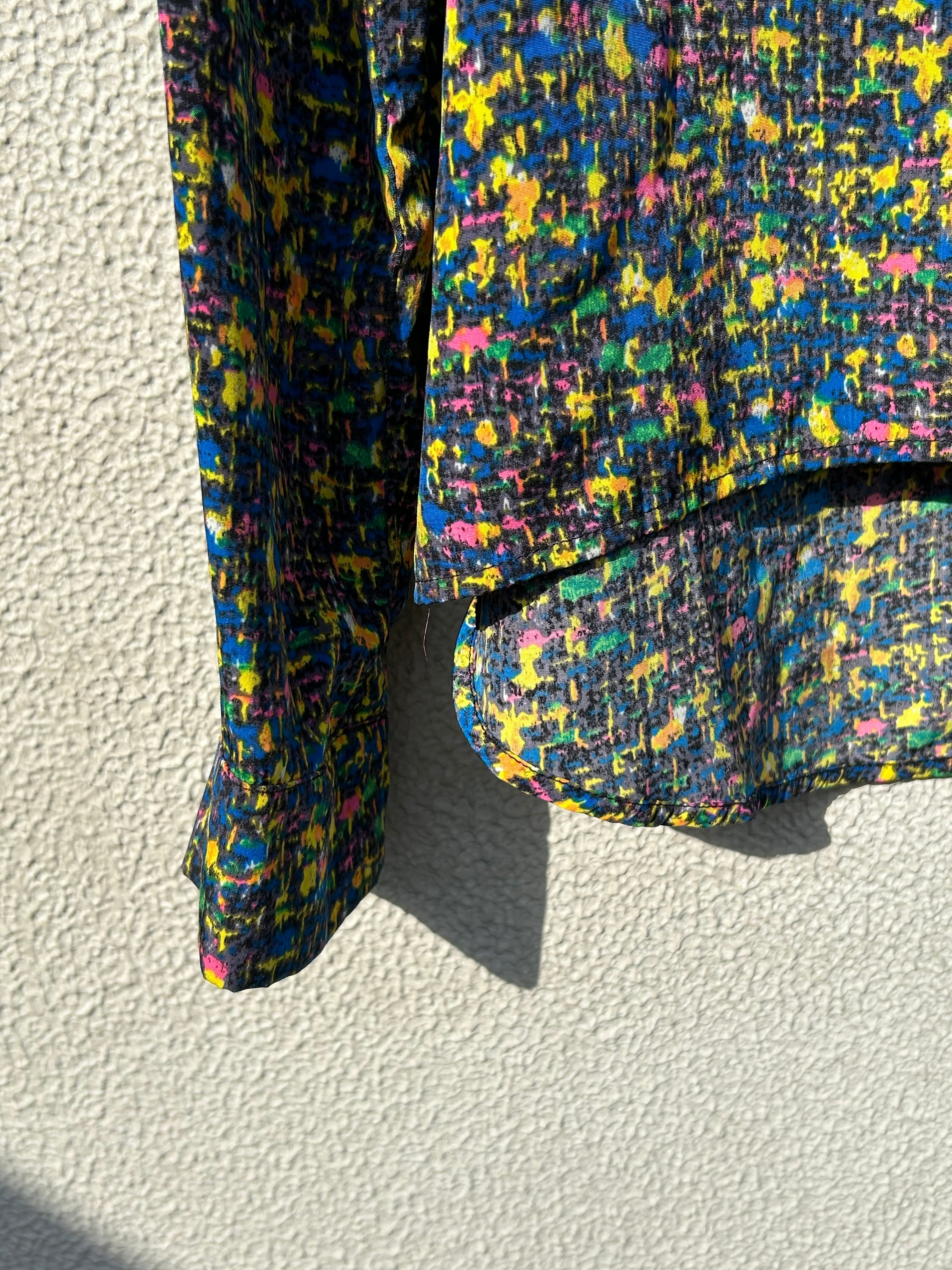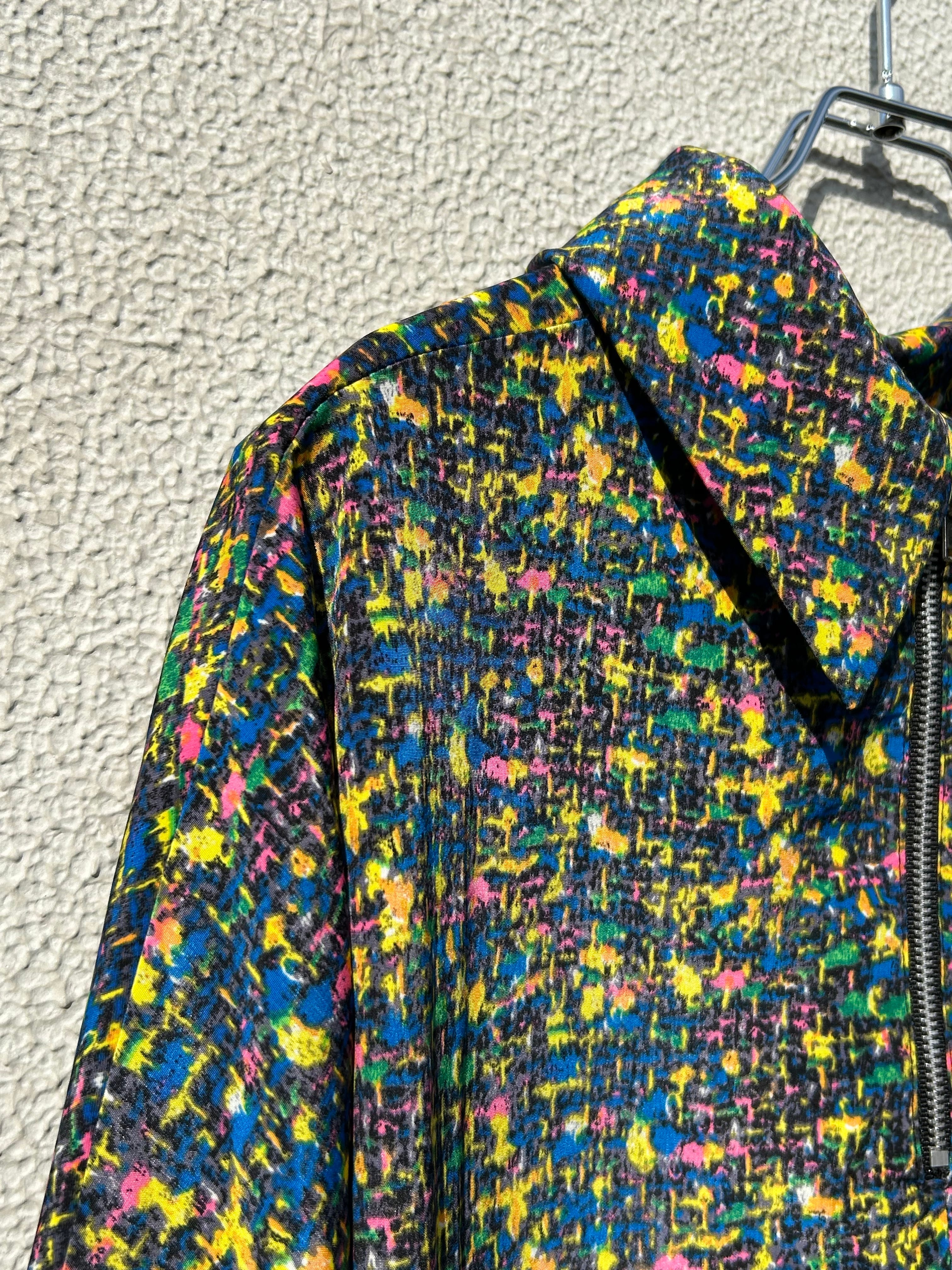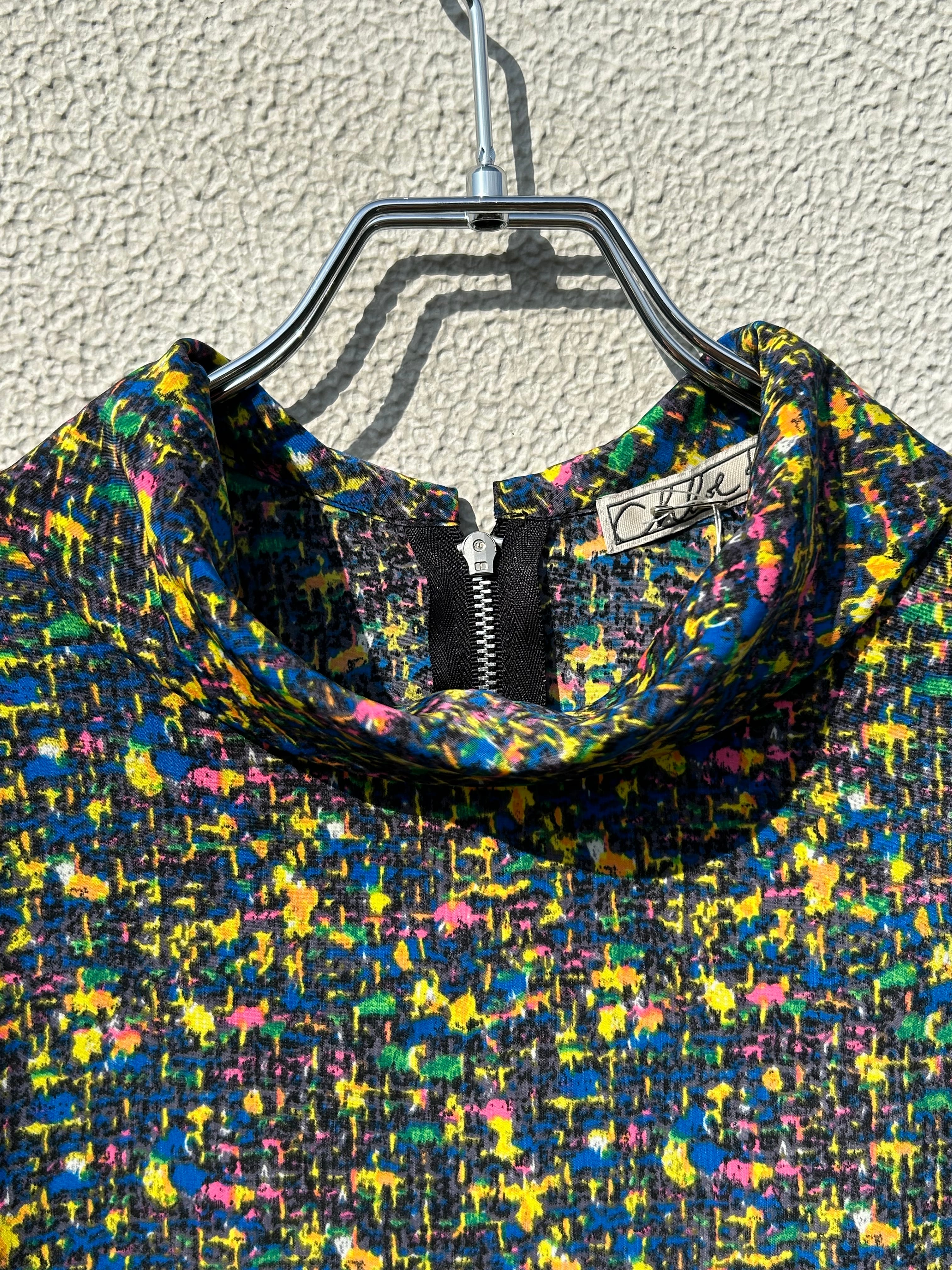 前後で襟元がハーフジップとハイネック、2つの着こなしが楽しめるプリント柄トップスです。