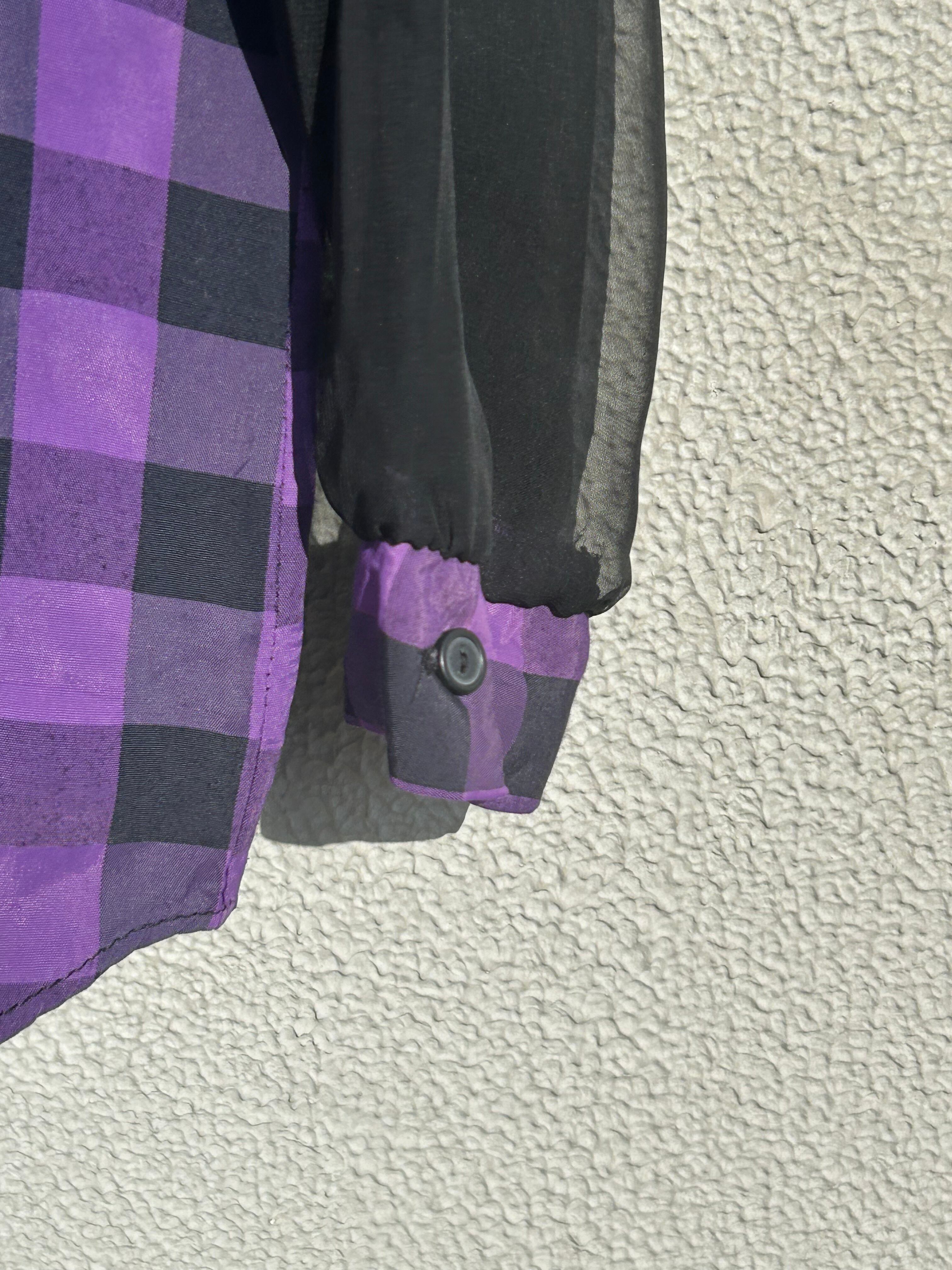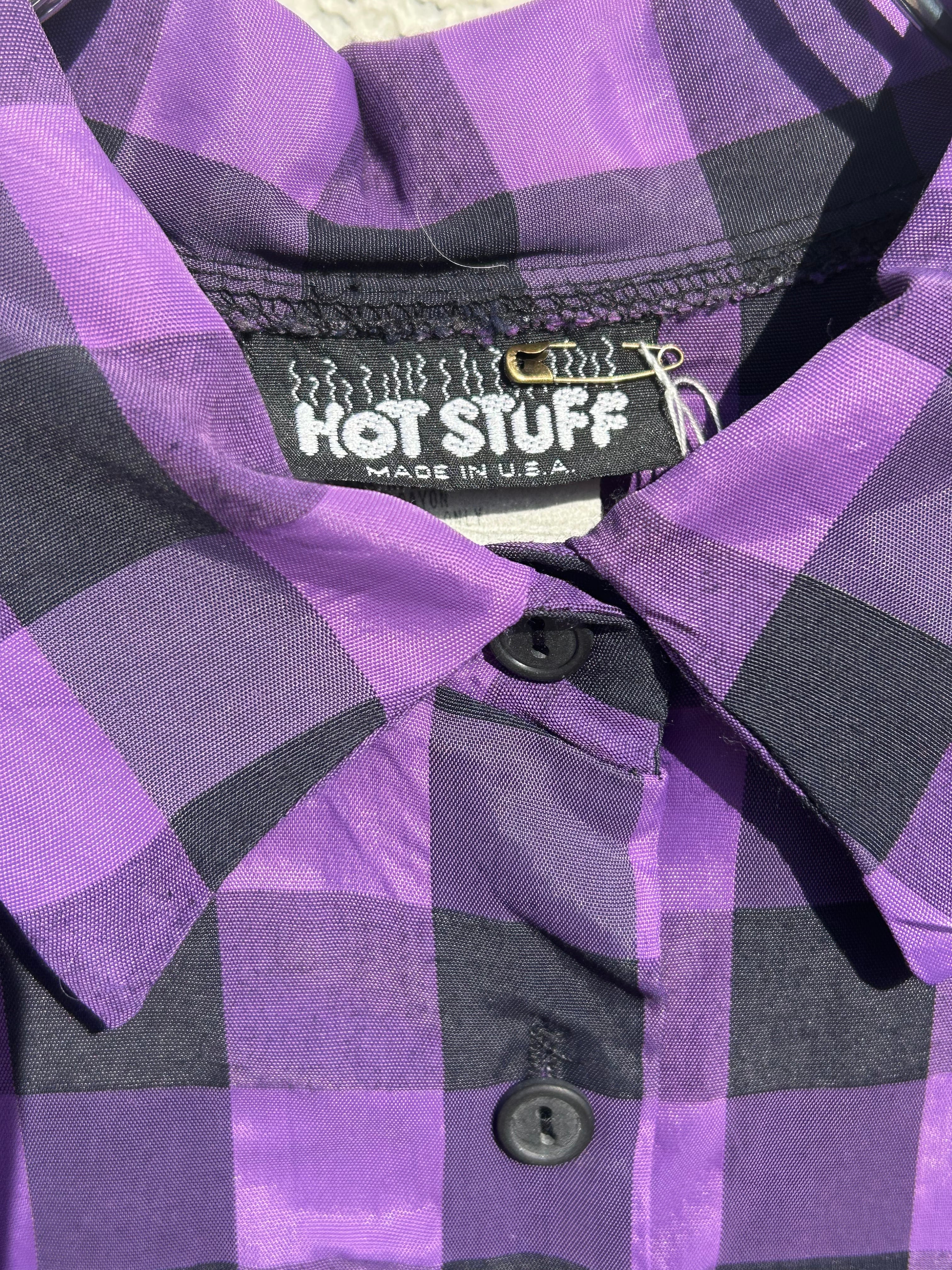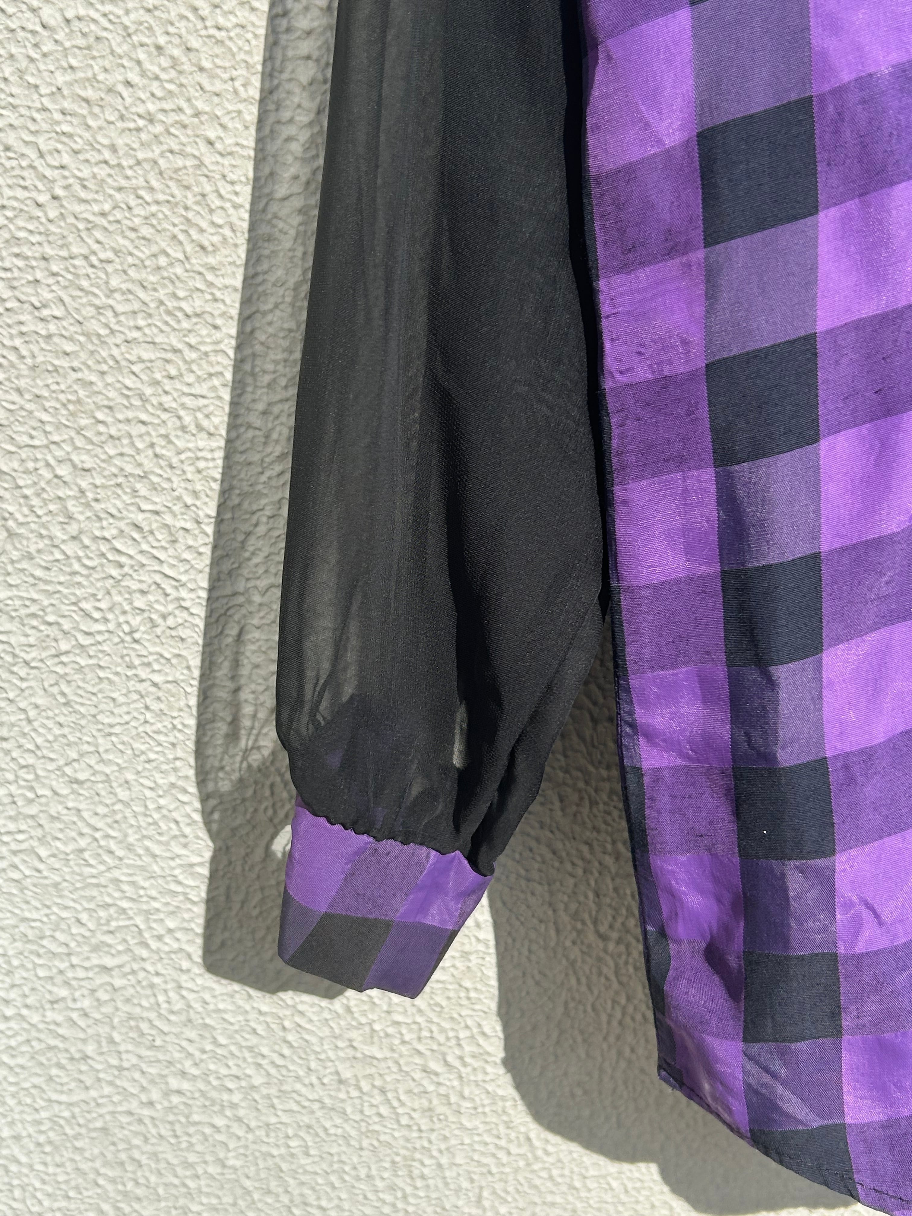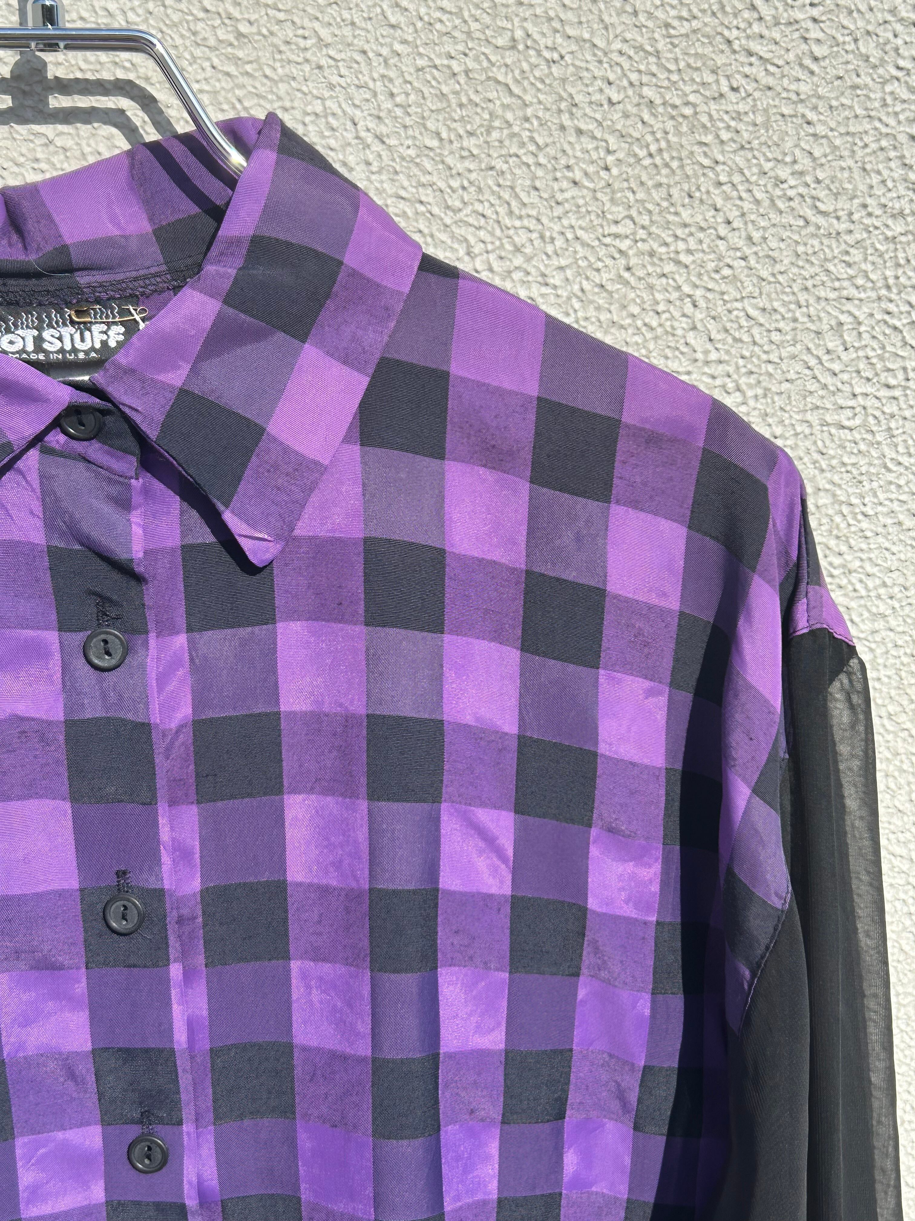 made in USA HOTSTUFF purple checkerboard and sheer long sleeve shirt