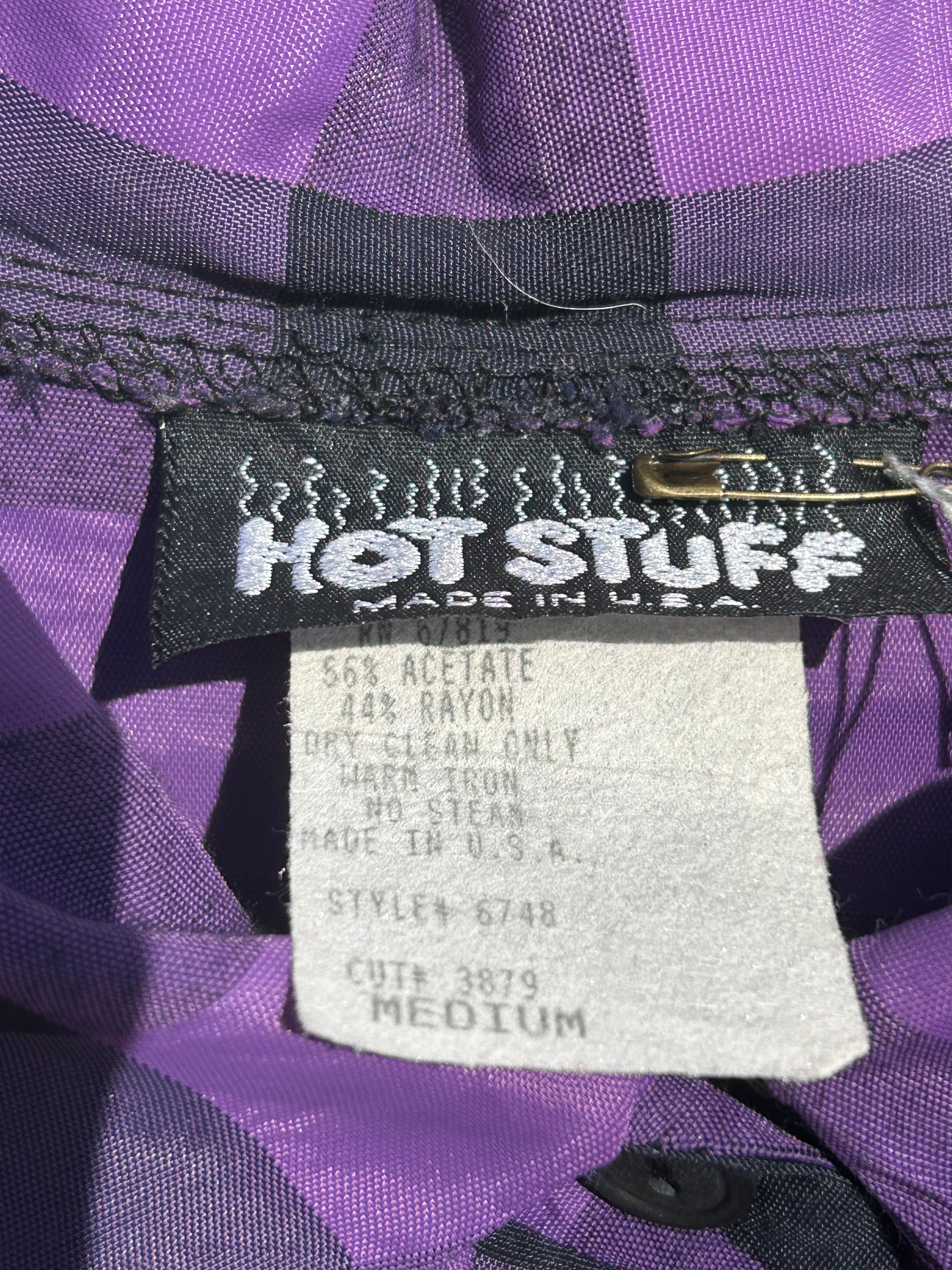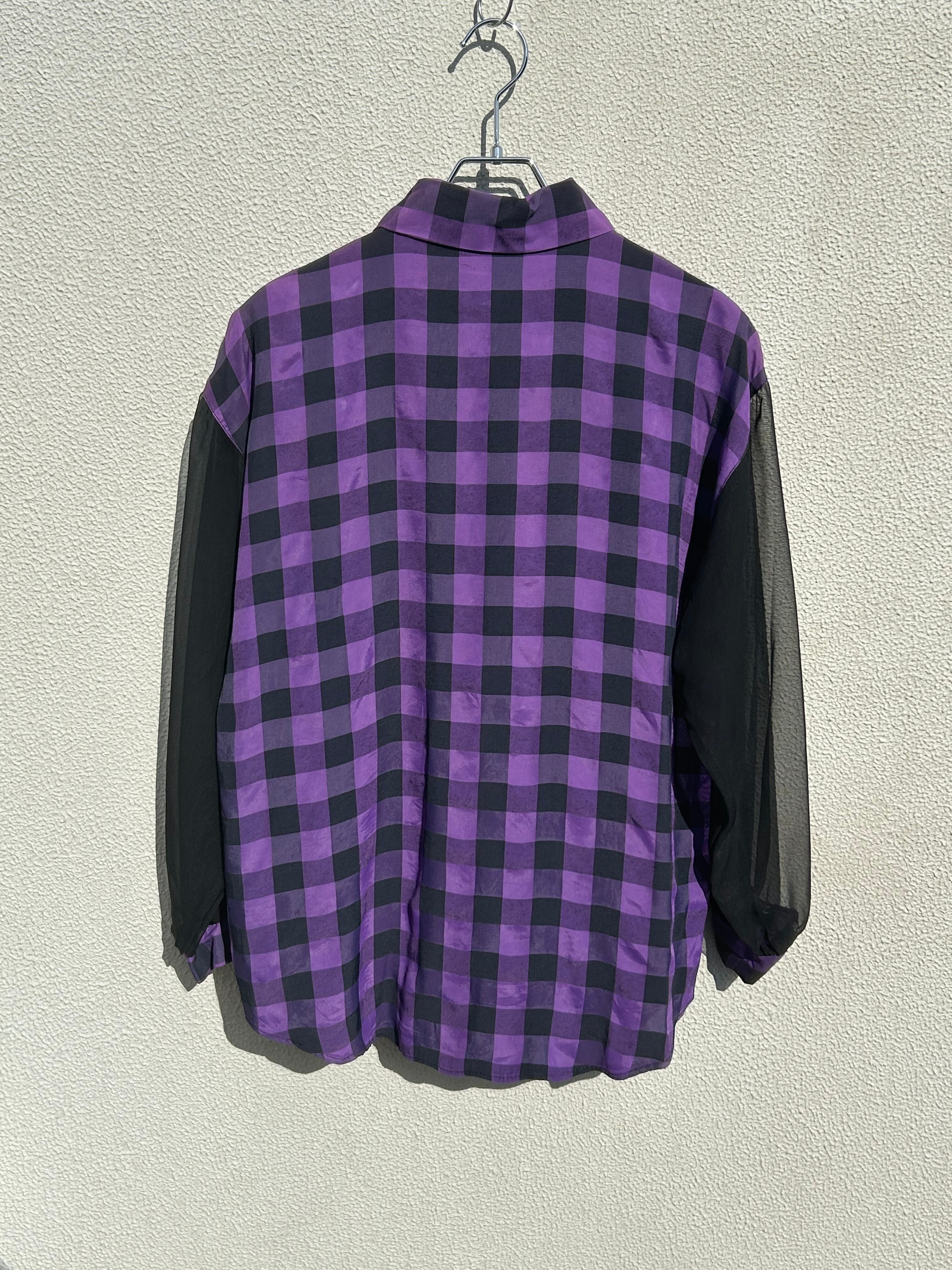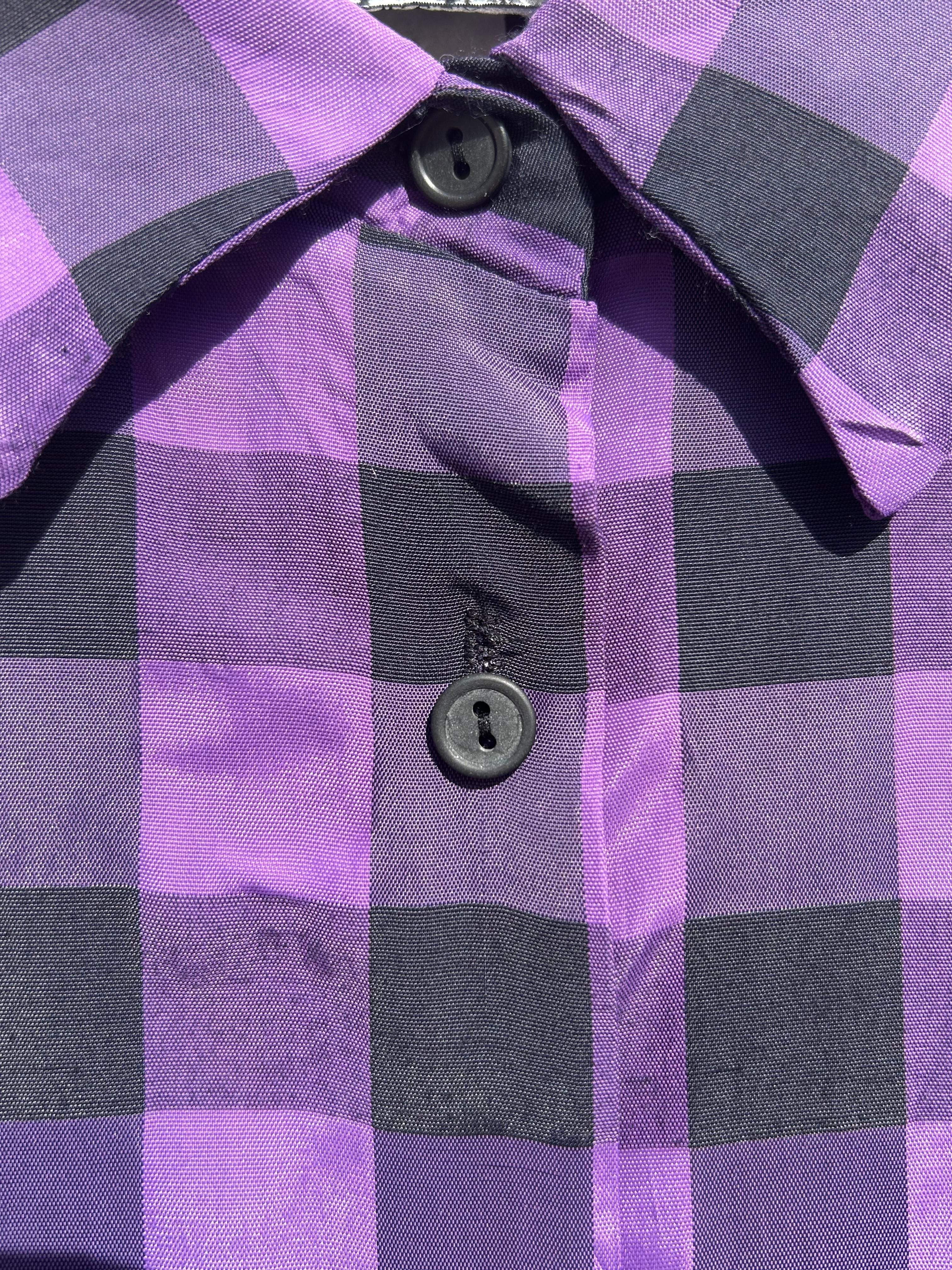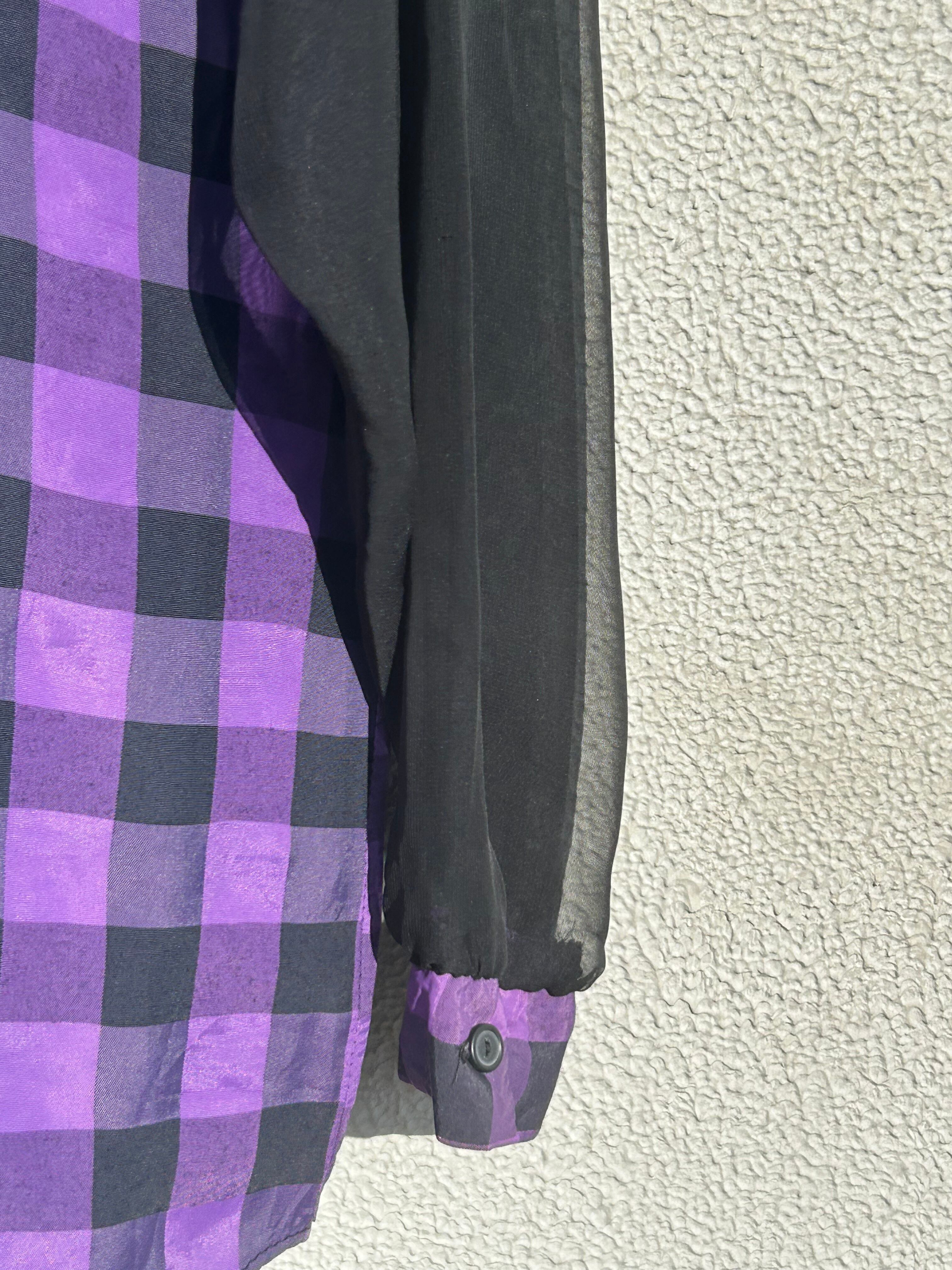 made in USA HOTSTUFF purple checkerboard and sheer long sleeve shirt