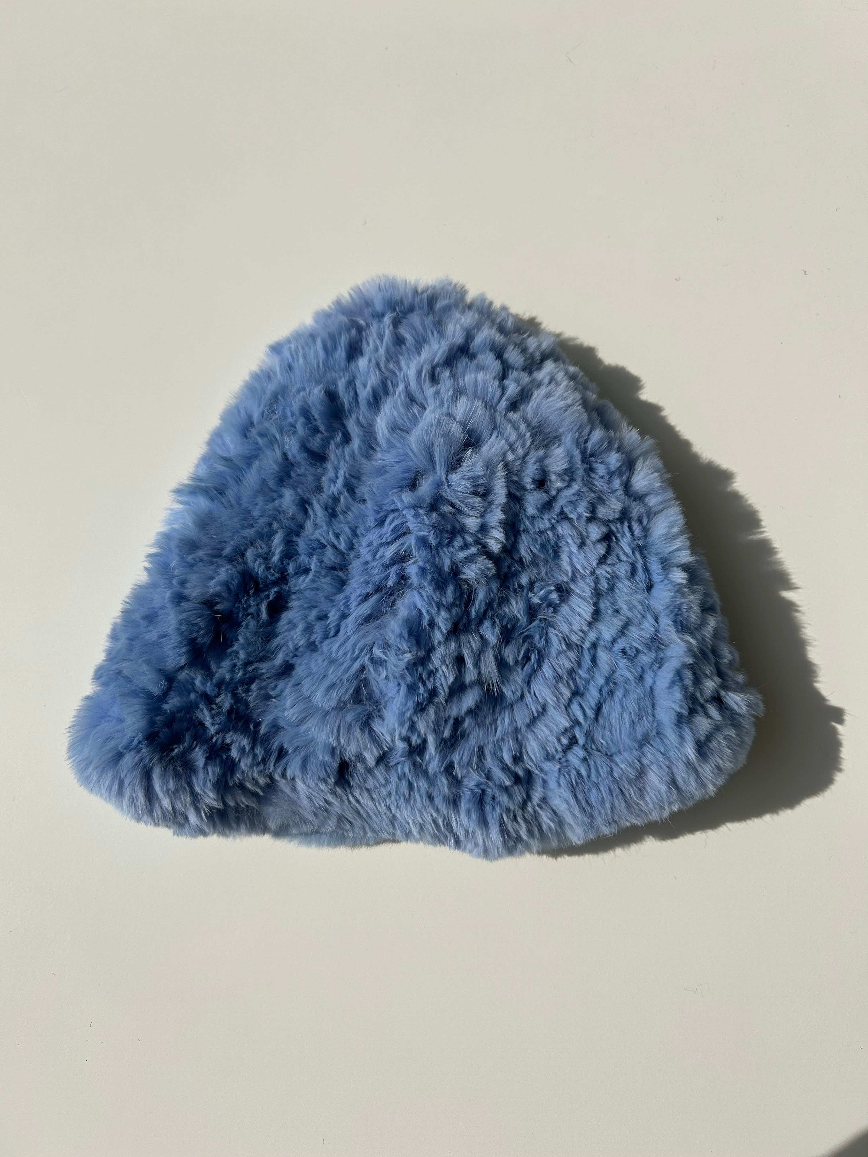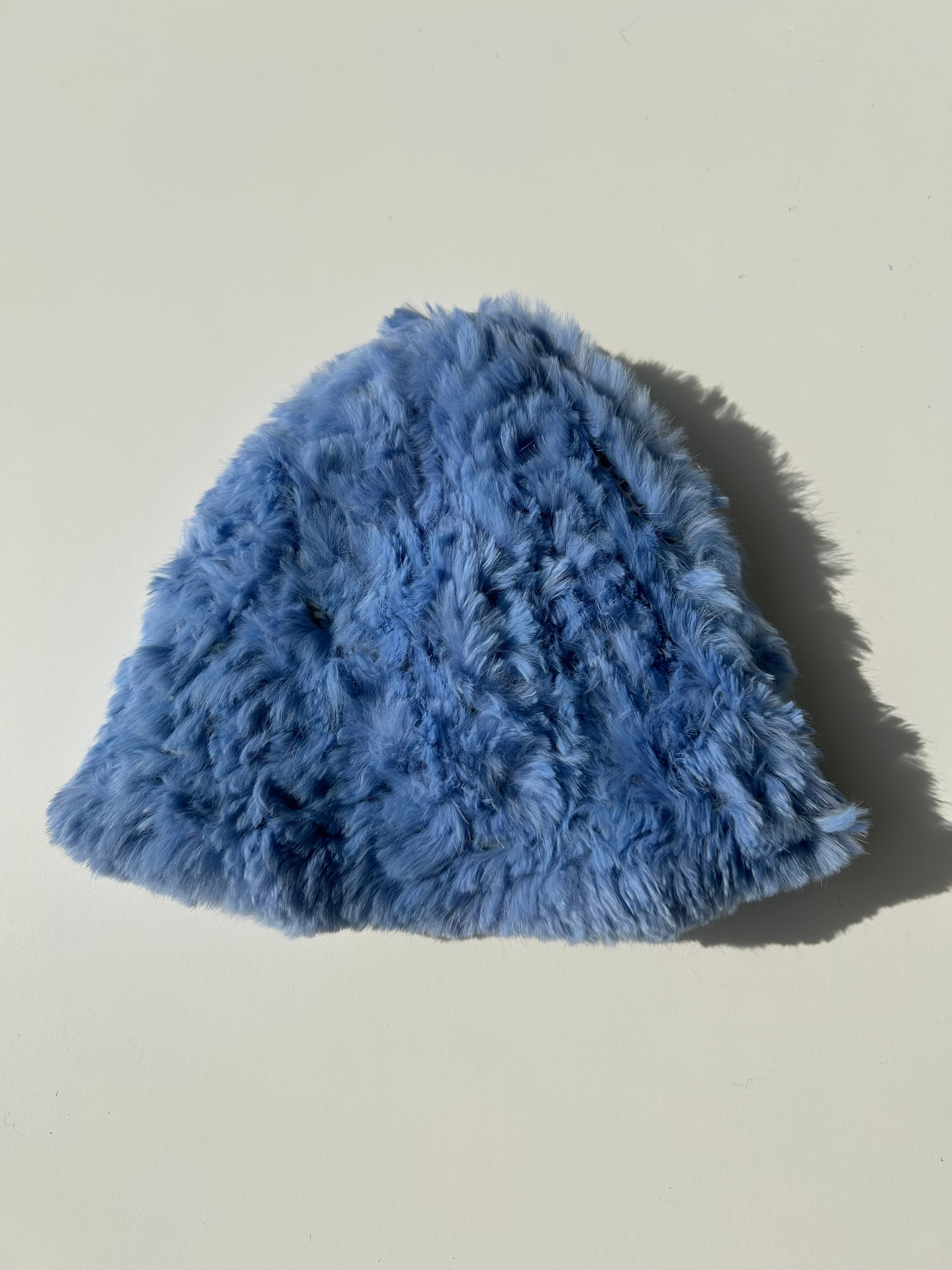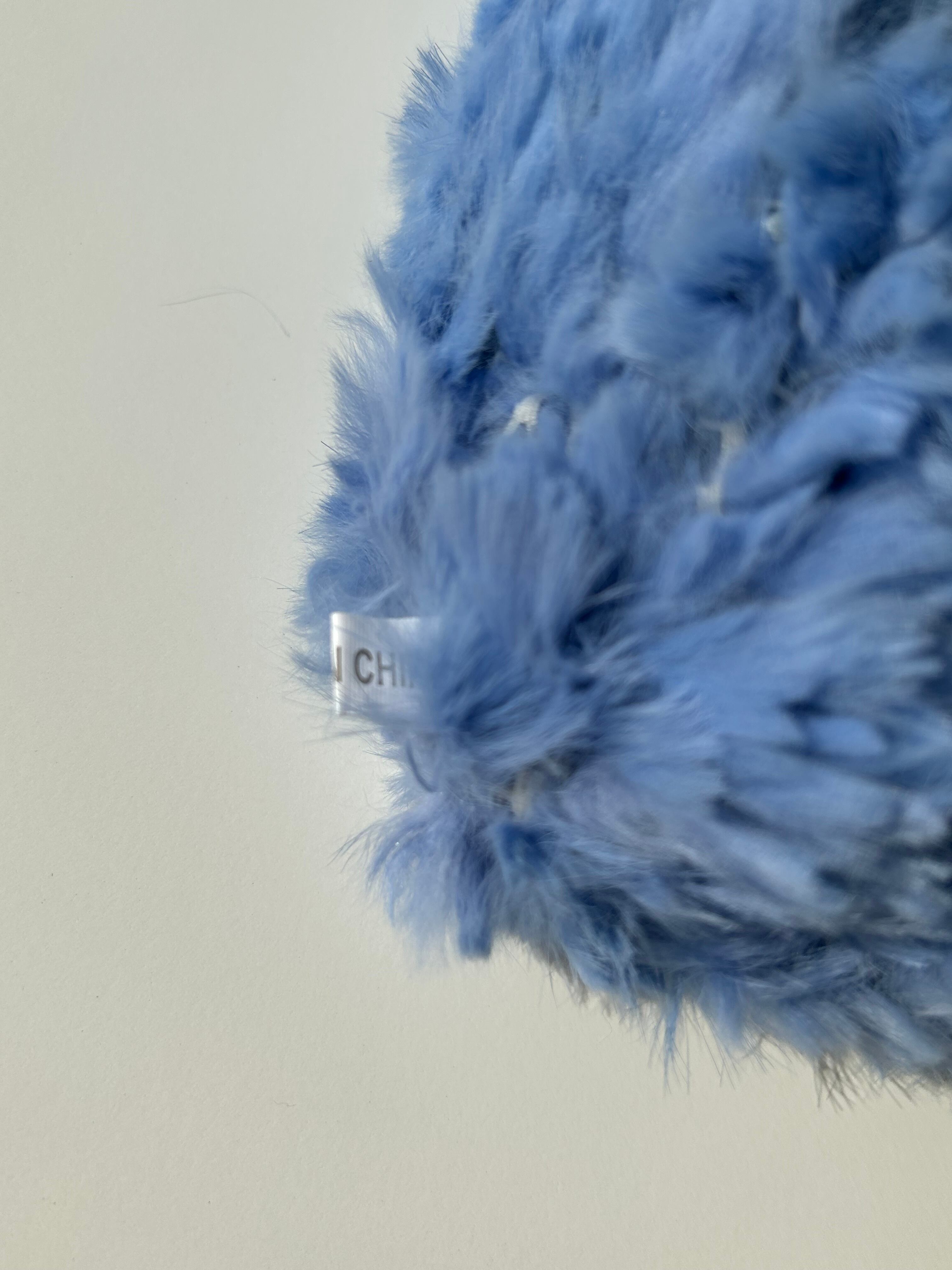キレイなスカイブルー色のファー帽子。