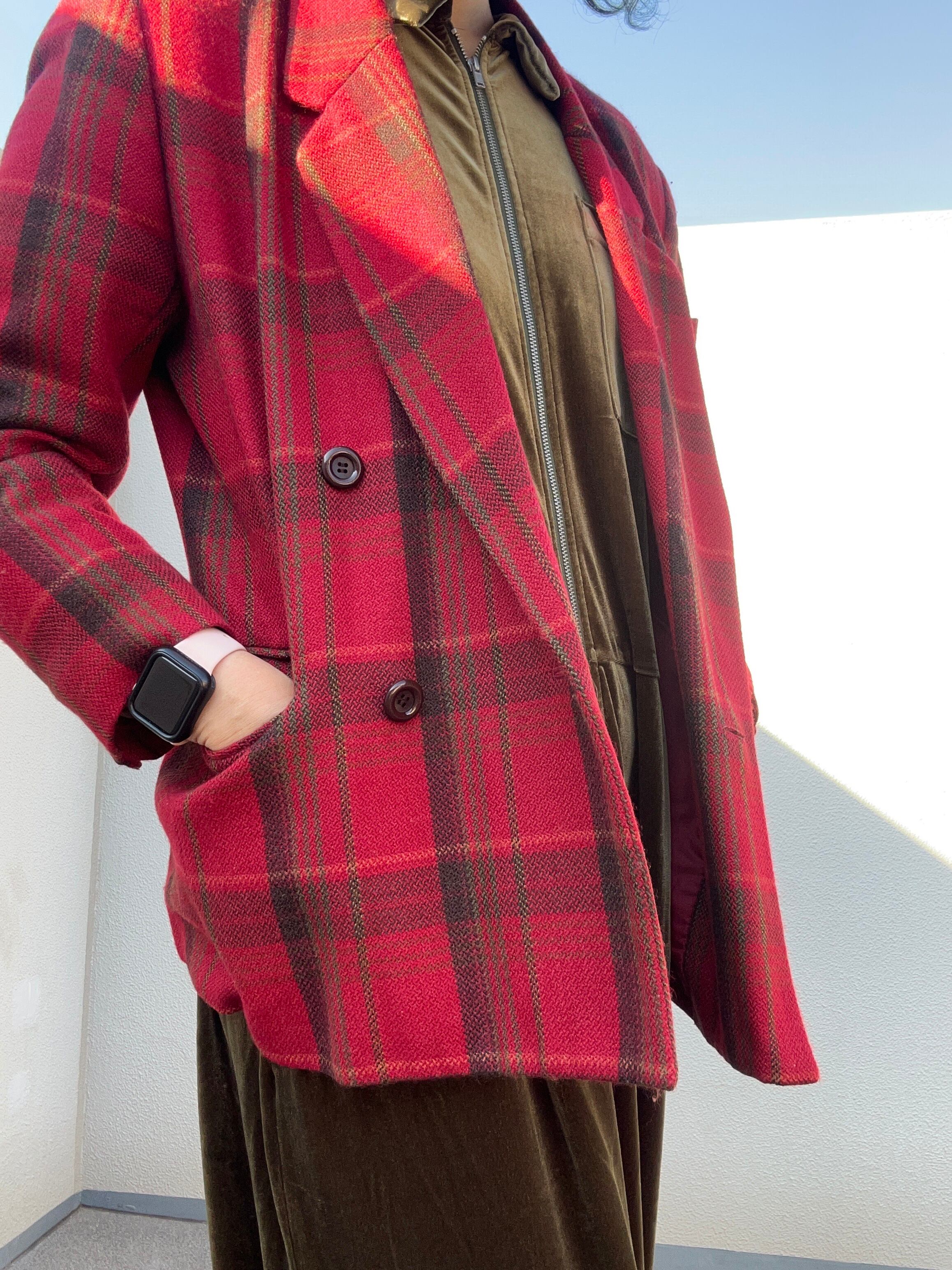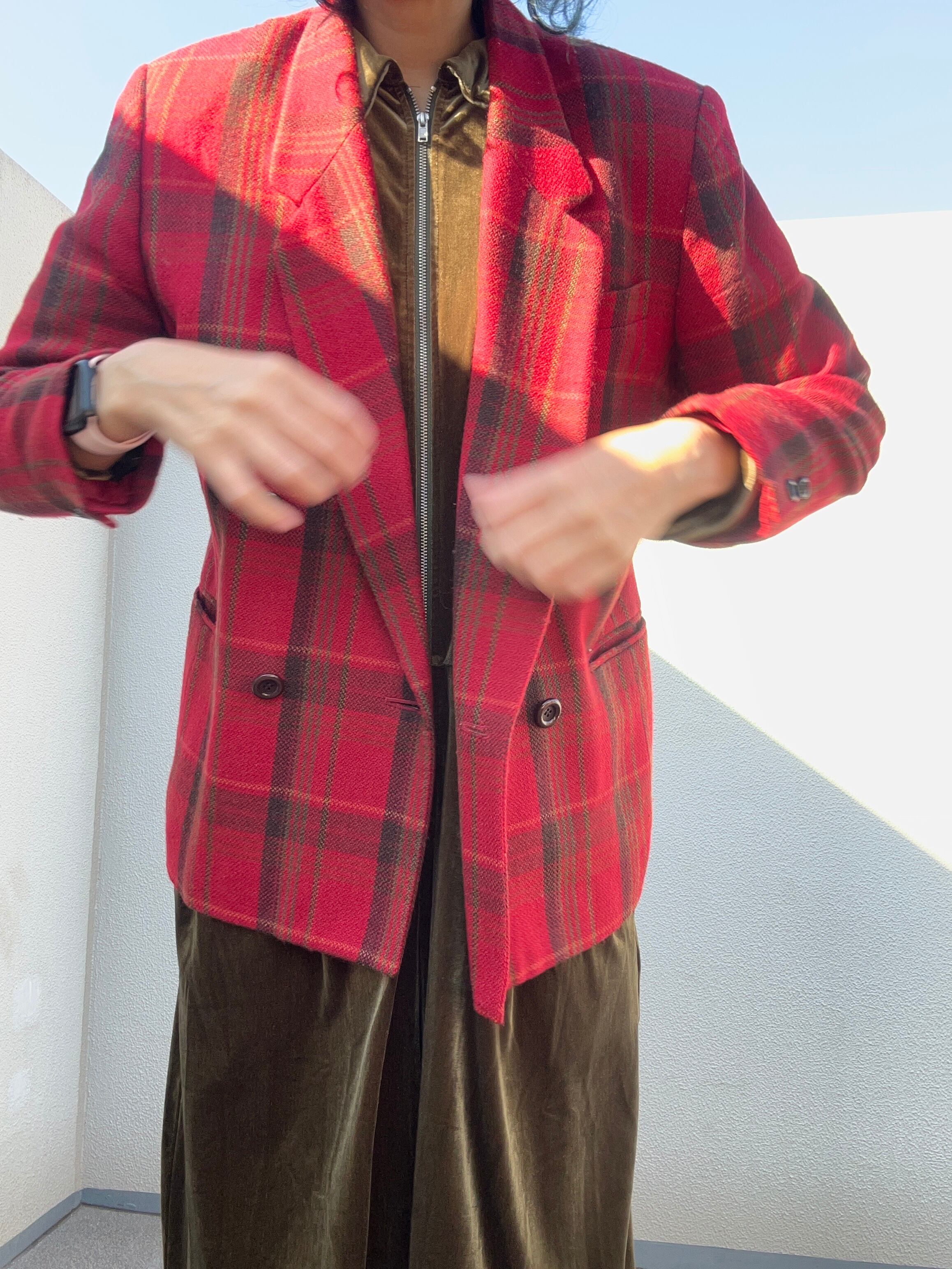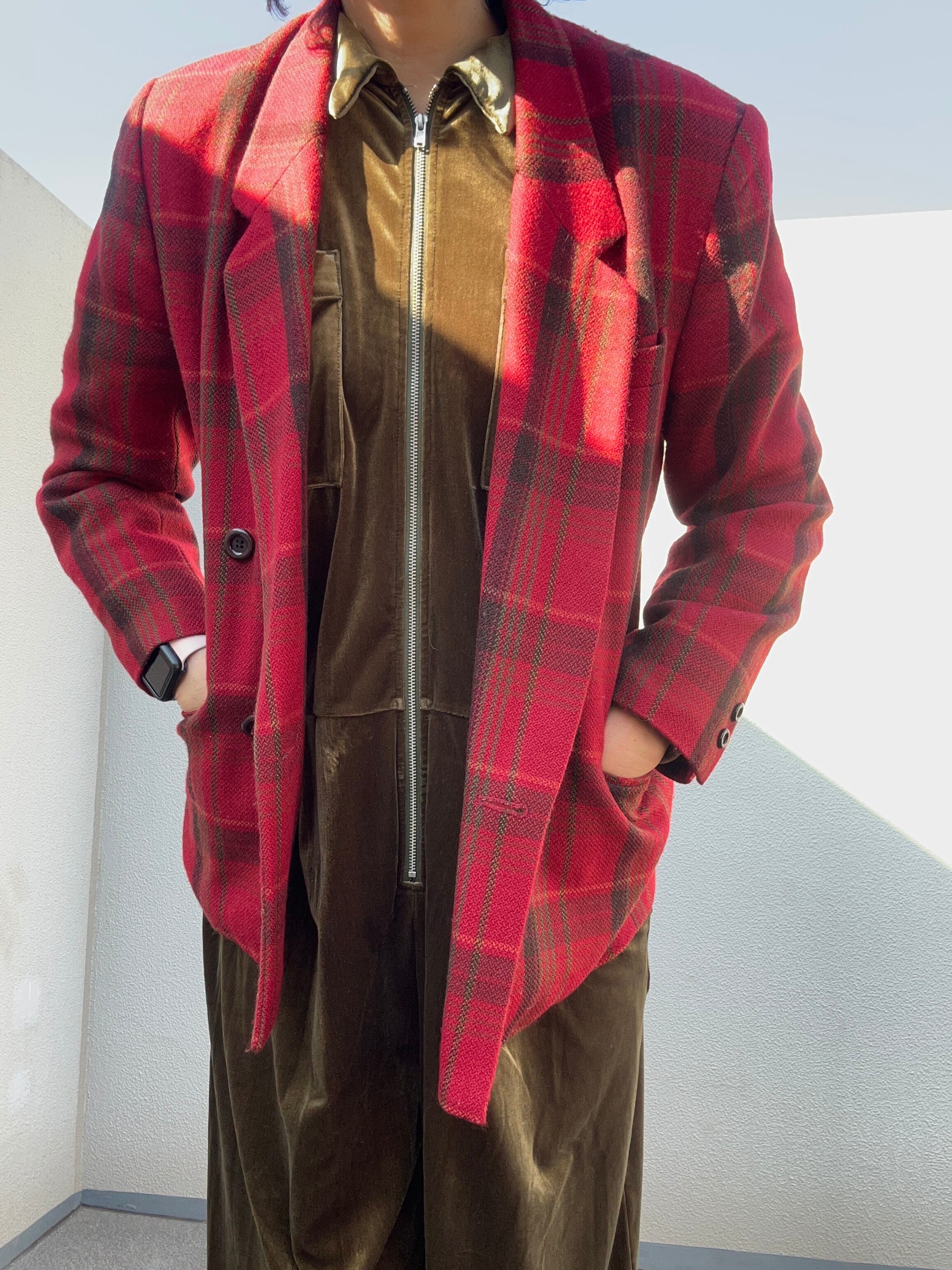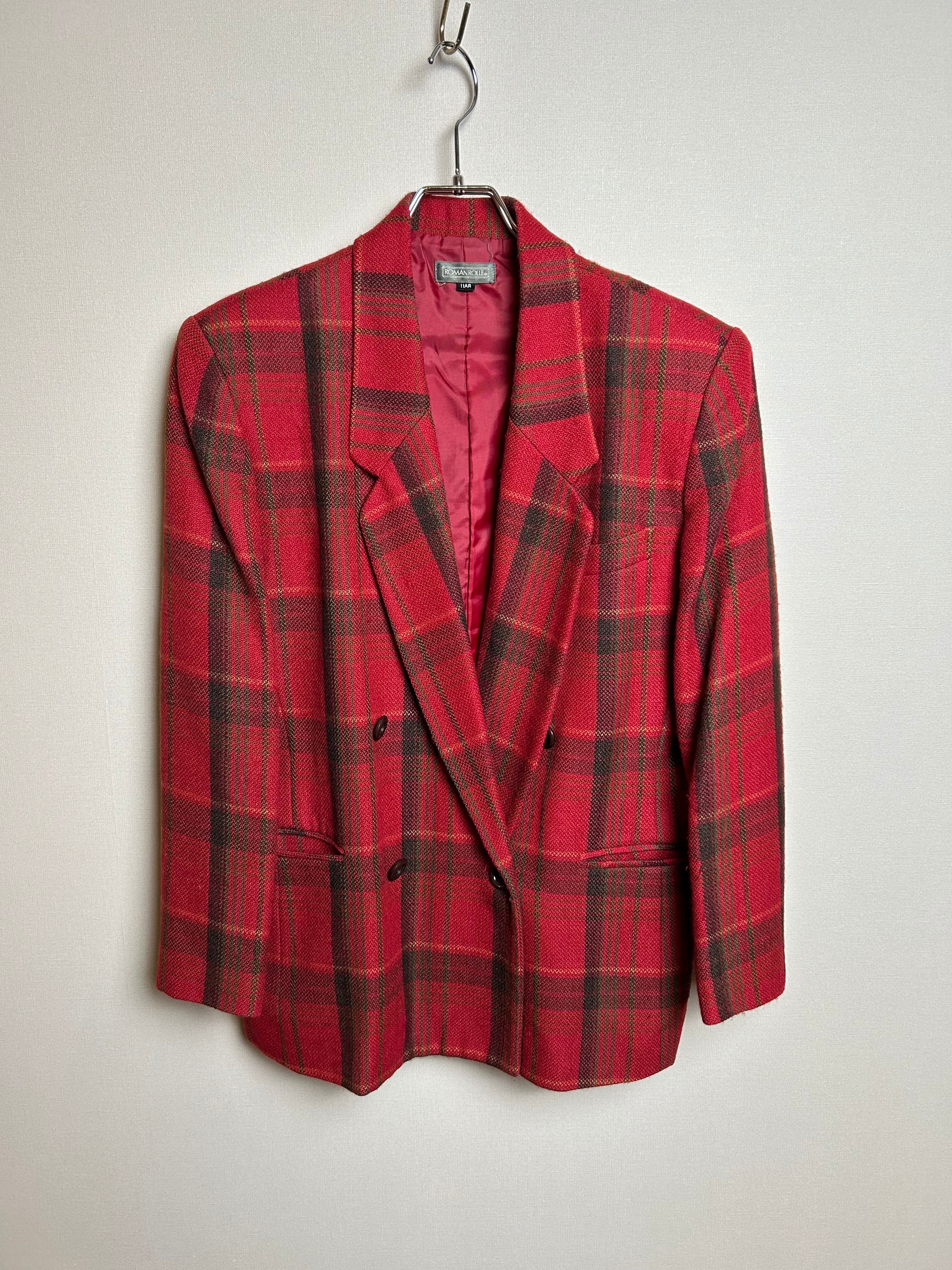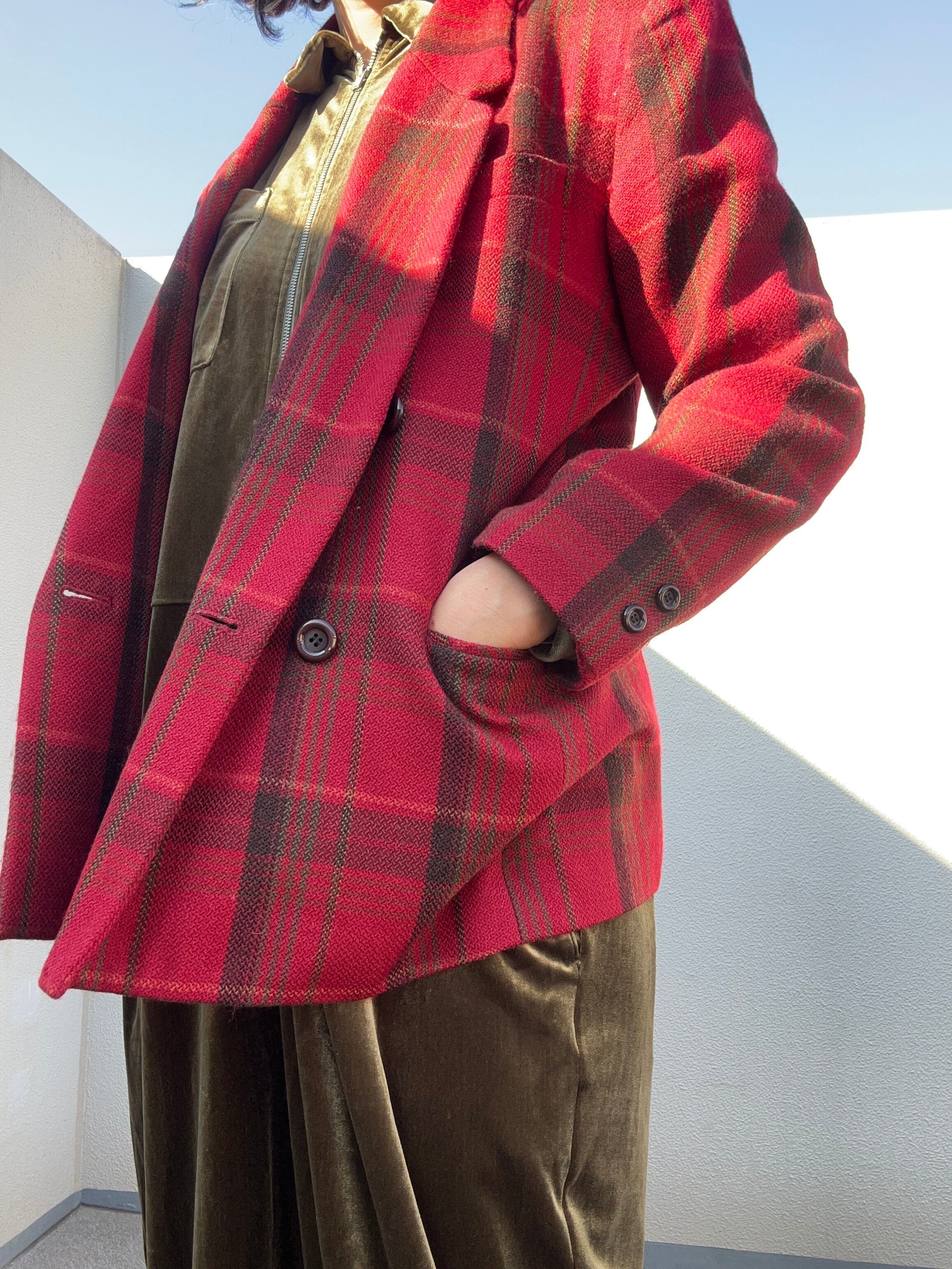 ■赤チェック ウールジャケット