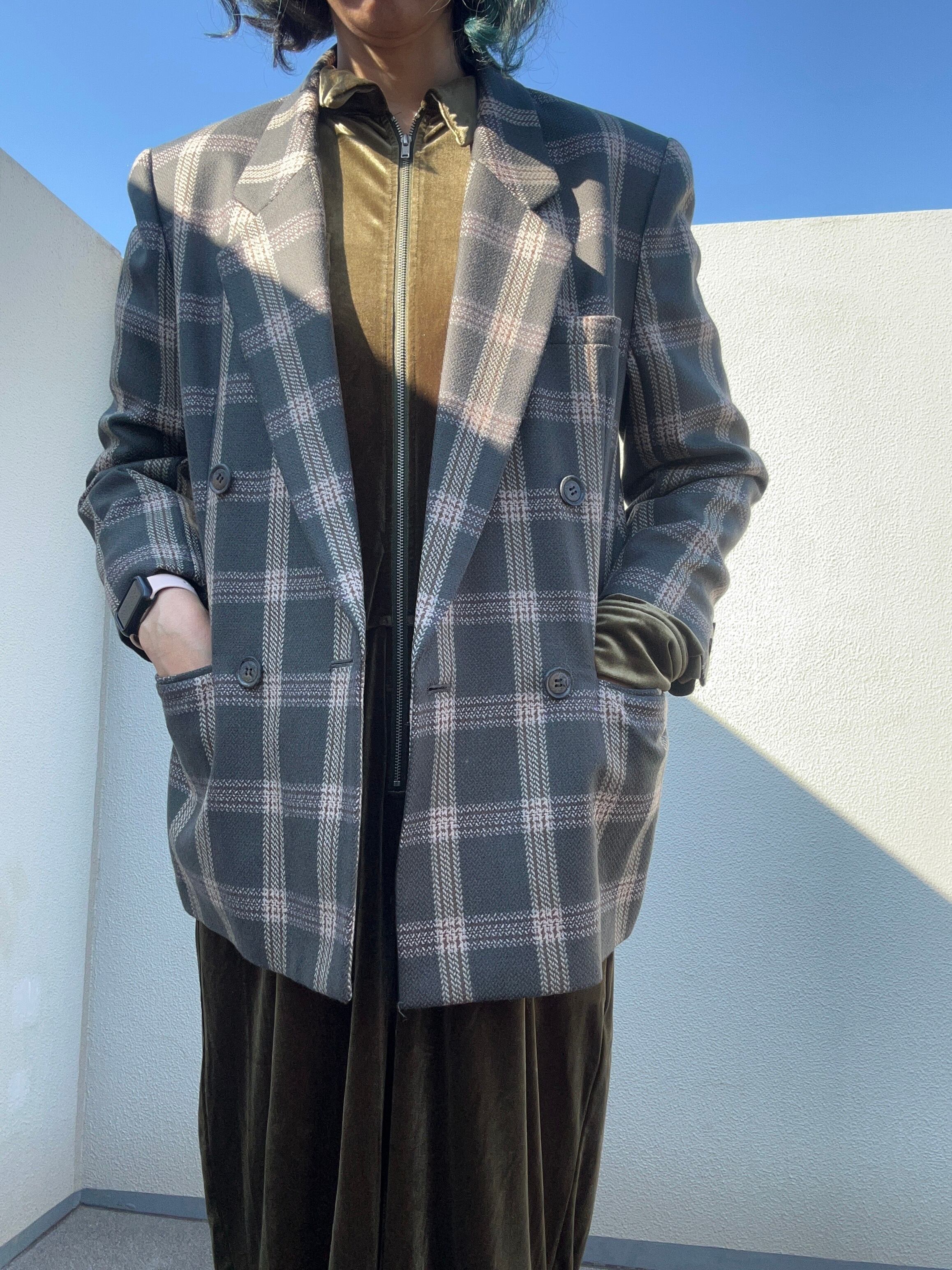 平置き・実寸(cm):肩幅43.5、身幅48、袖丈56.5、着丈73