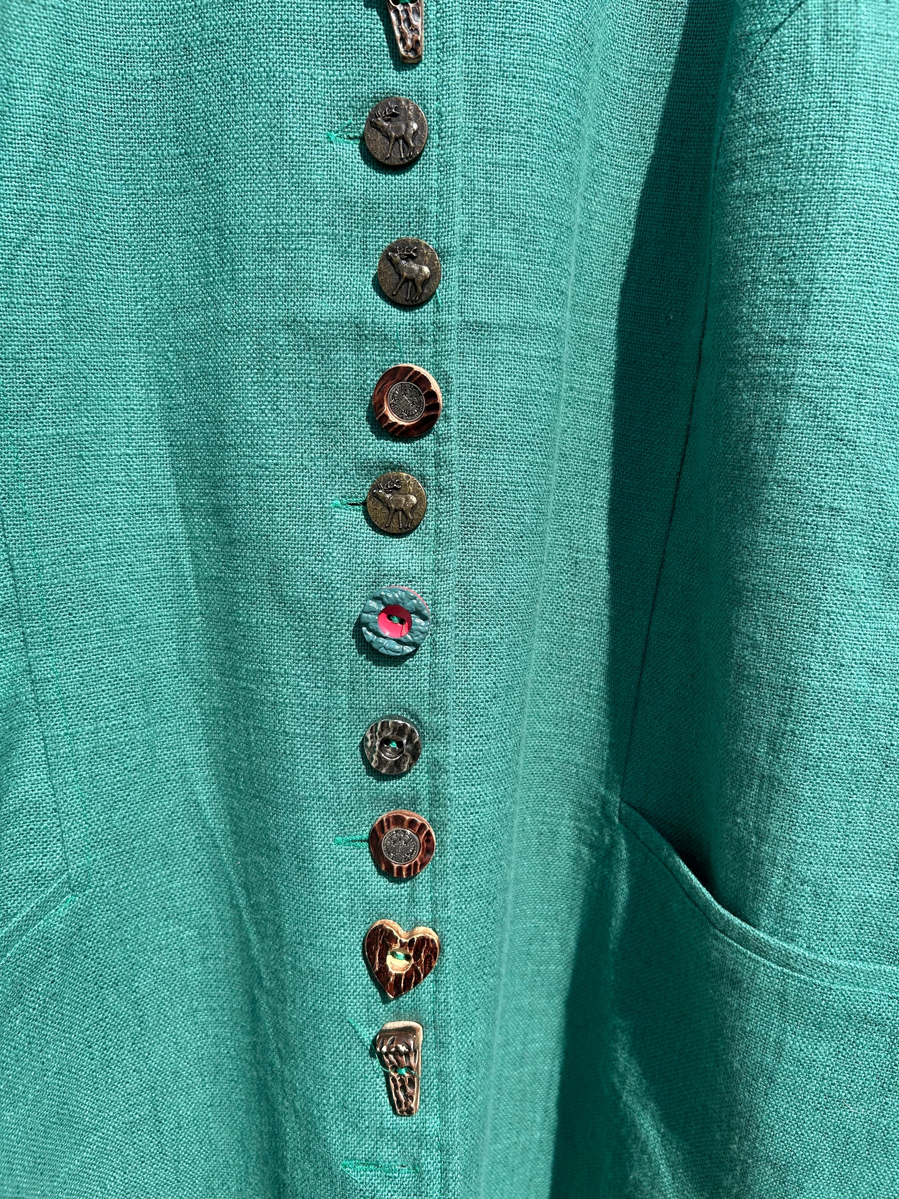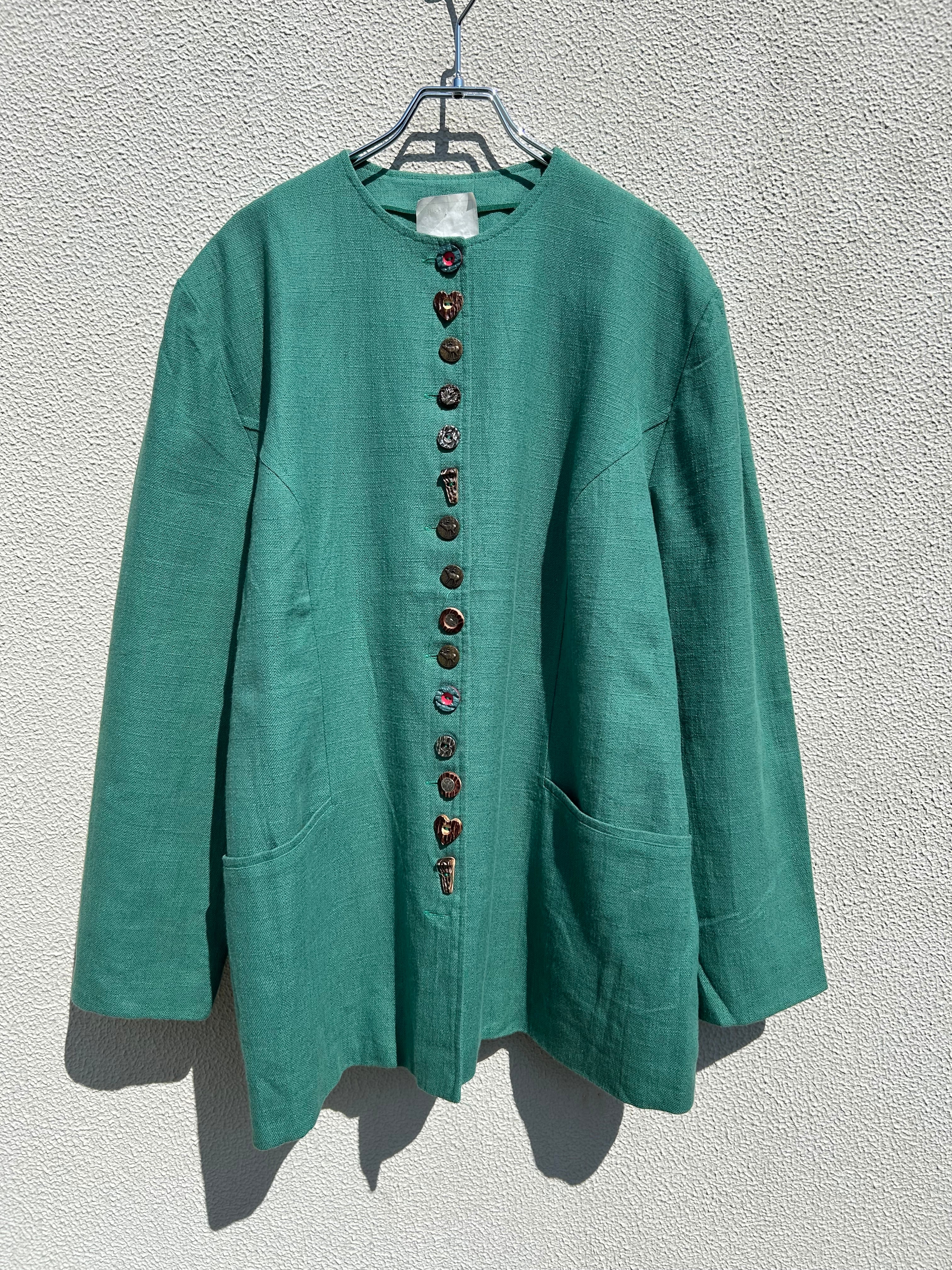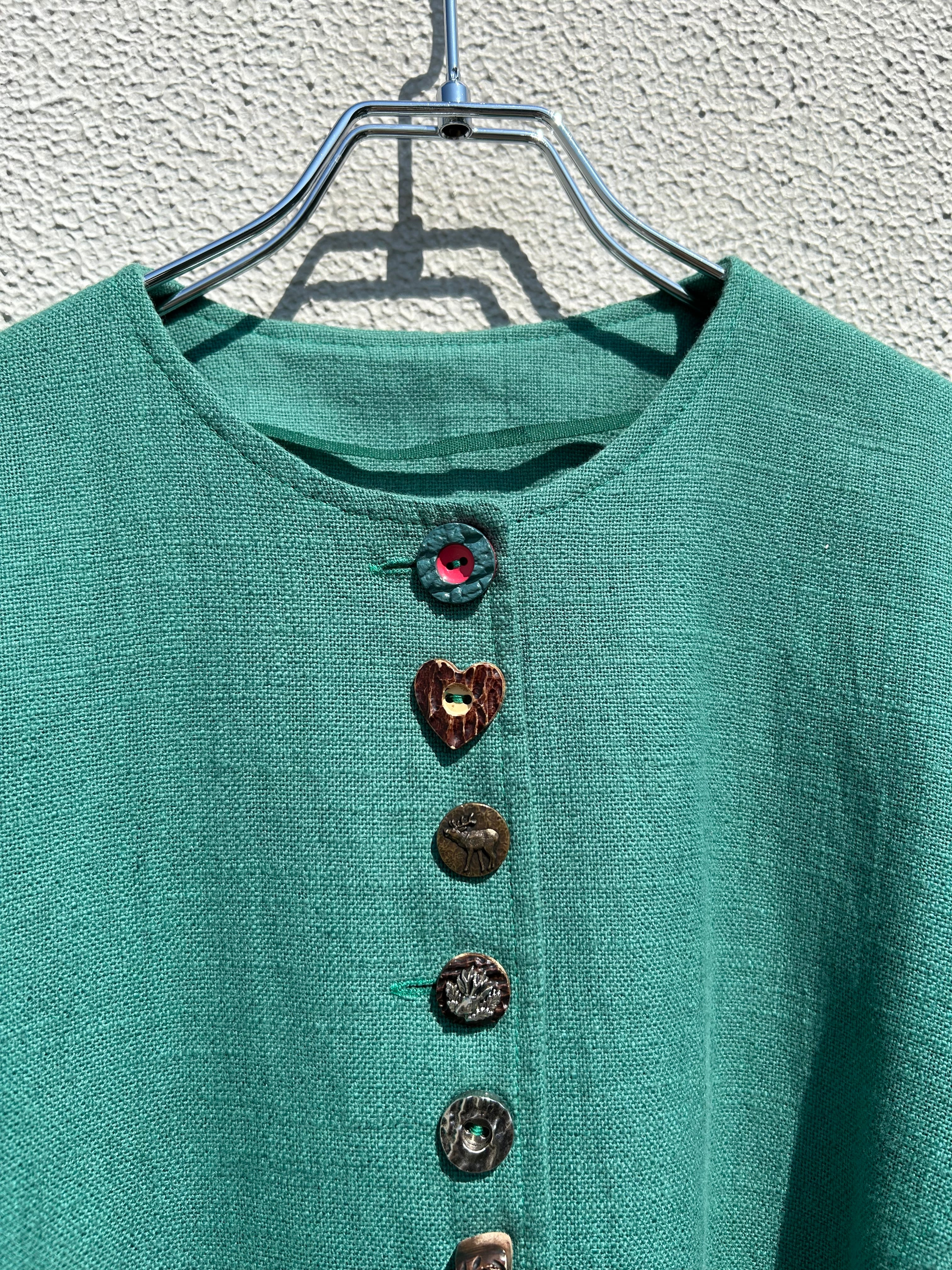リネン素材なので、春から初夏にかけてちょうどよい、1枚持っておくと便利な1着です。