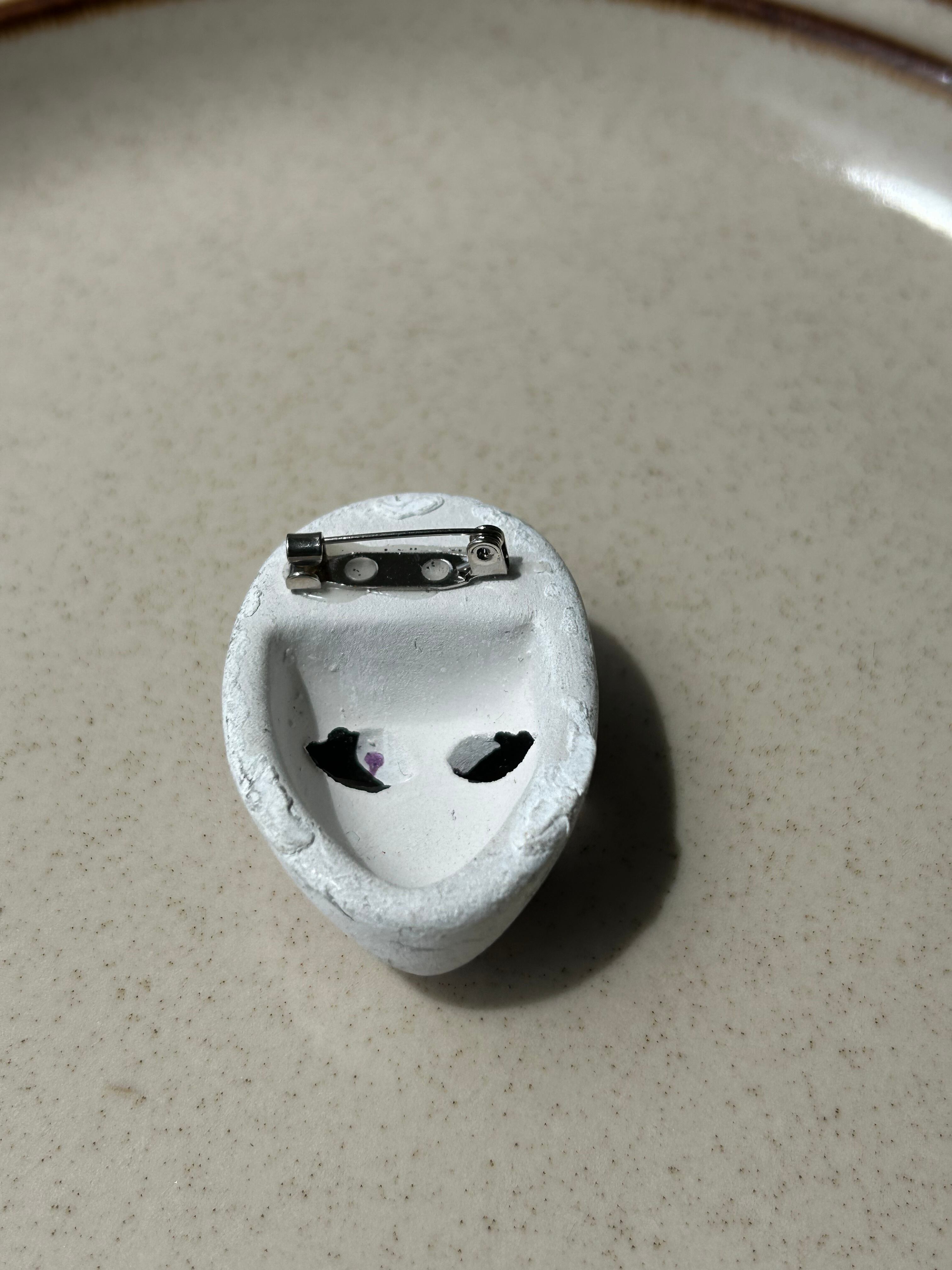 子どもの頃、こういうお面怖かったな〜と思い出すようなブローチ。