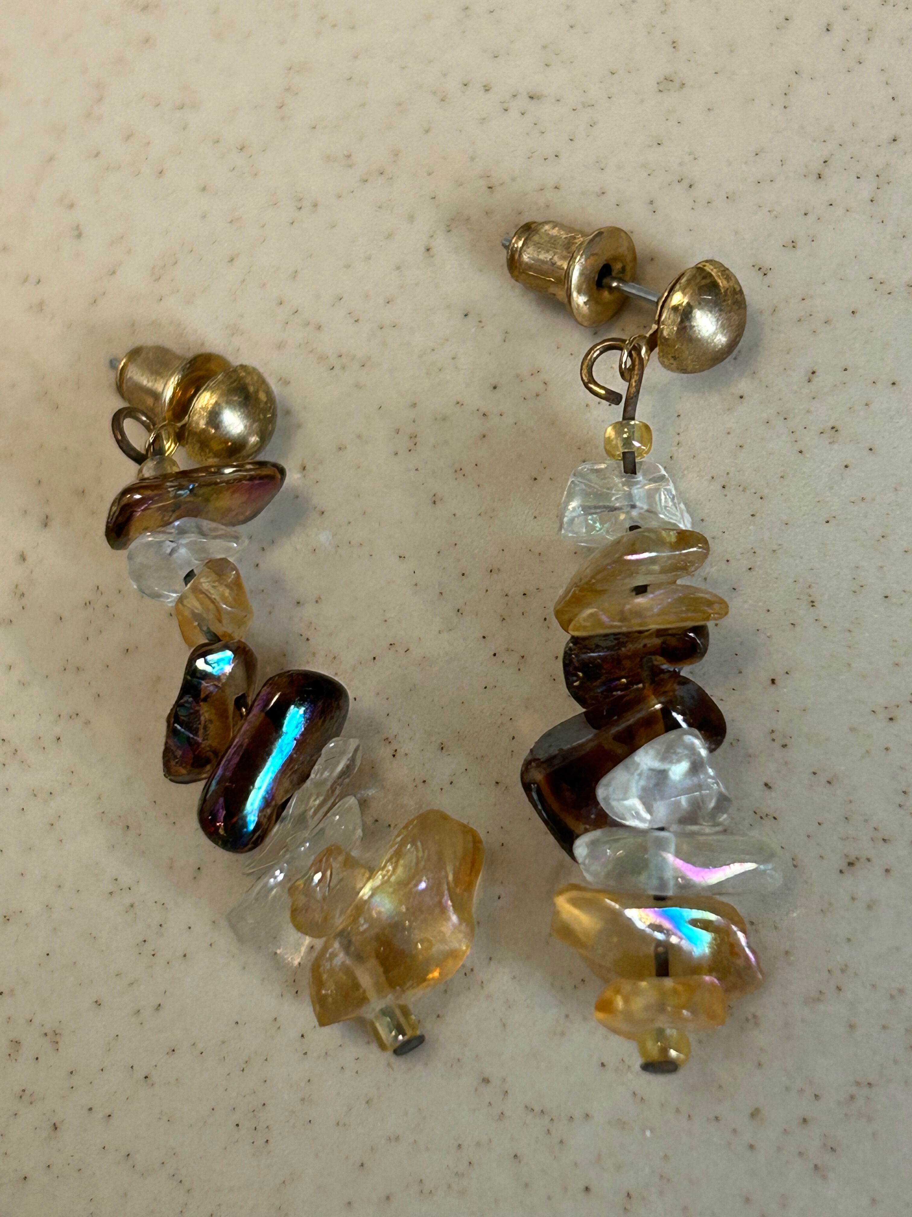ブラウン、ベージュ、クリアな石が重なった上品な印象のピアスです。