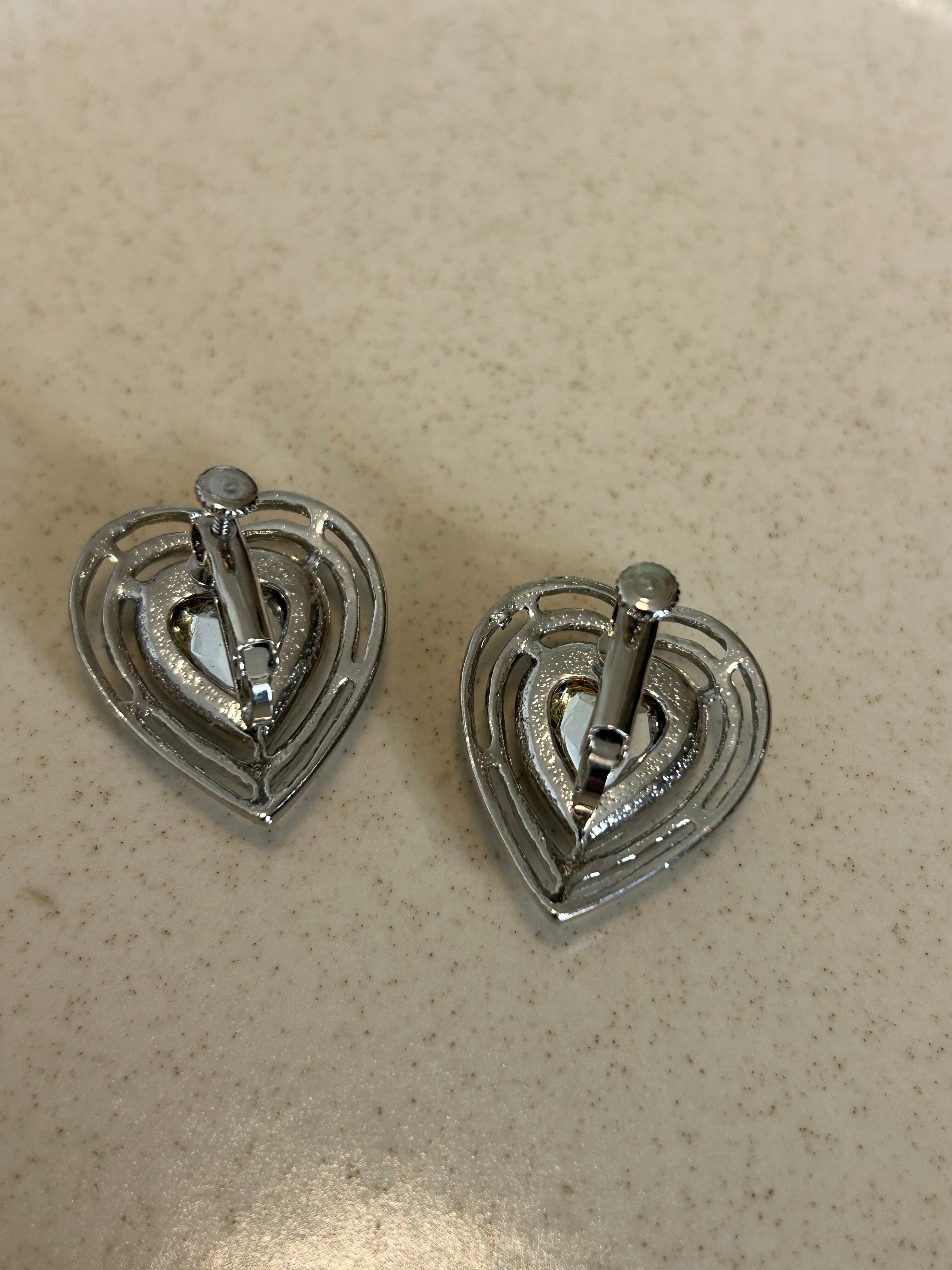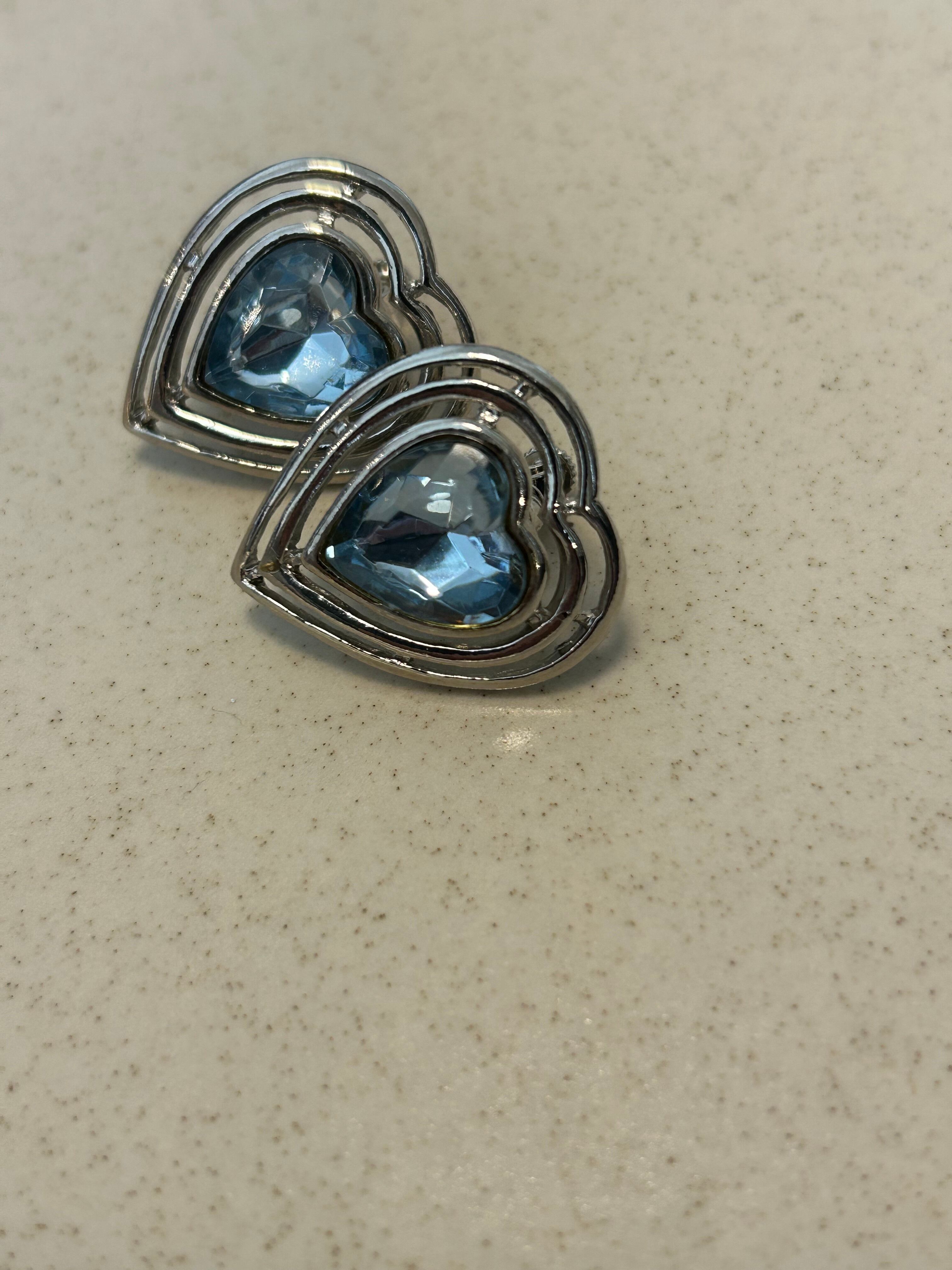Vintage retro silver and clea blue heart Earrings