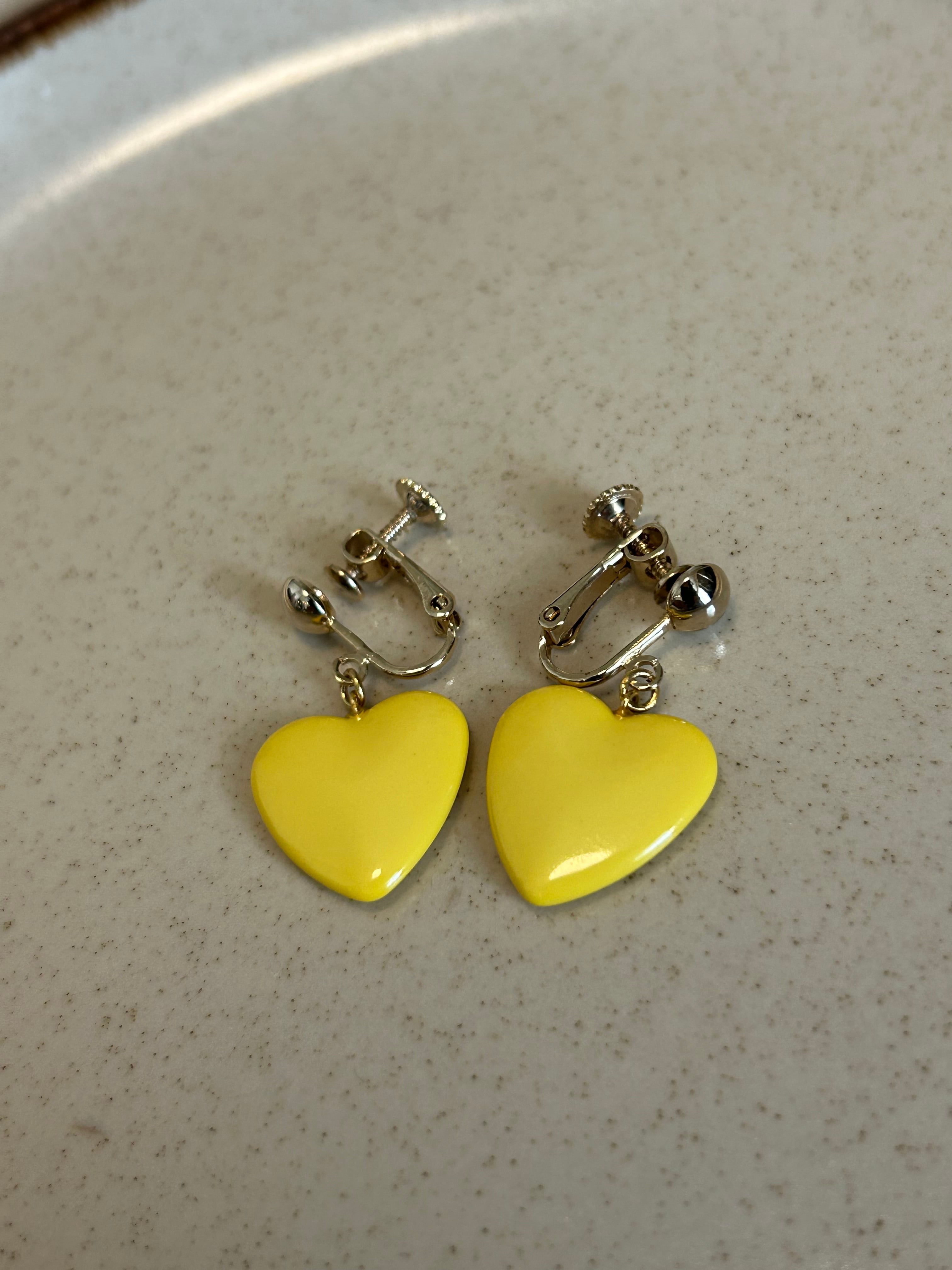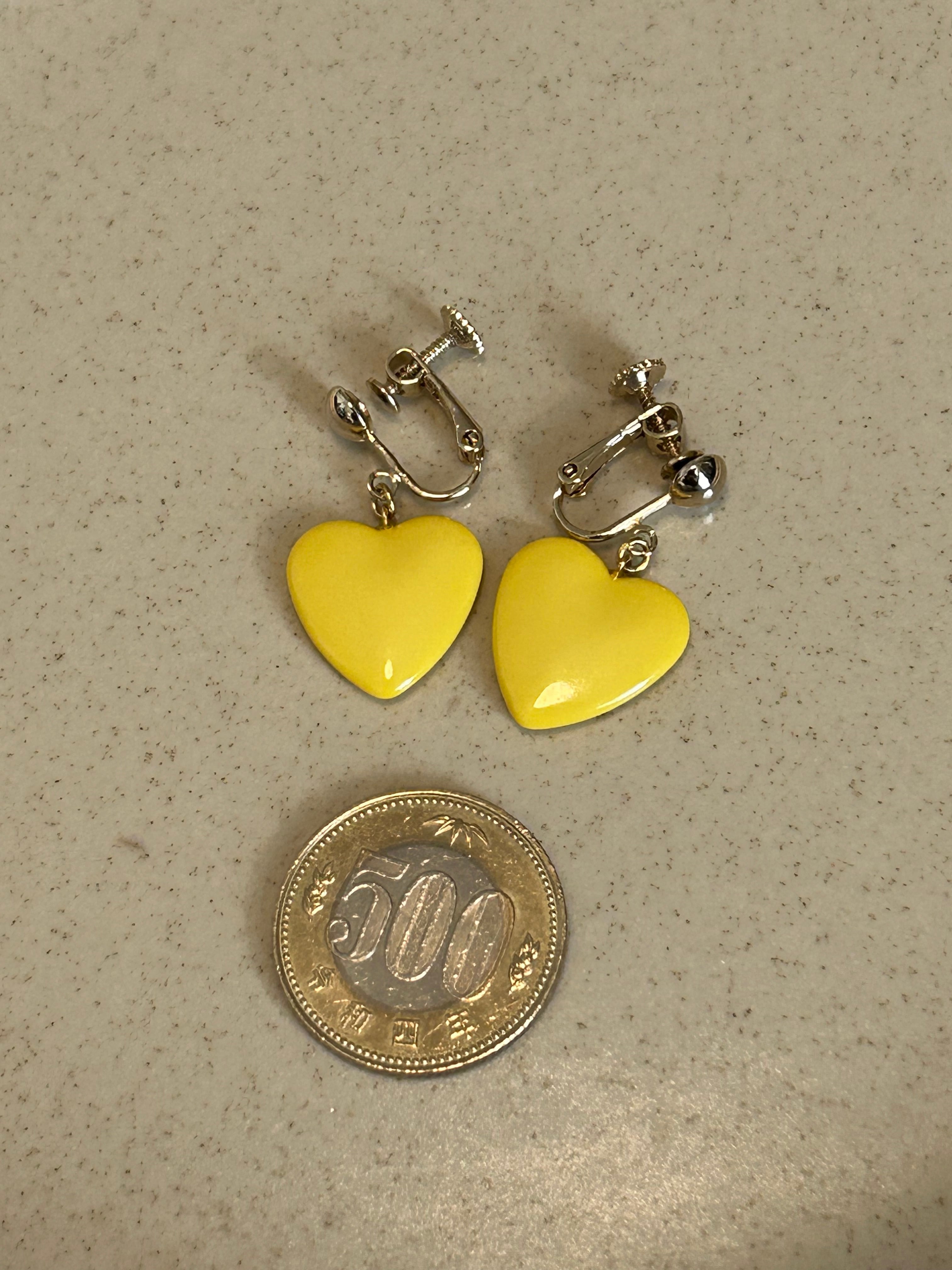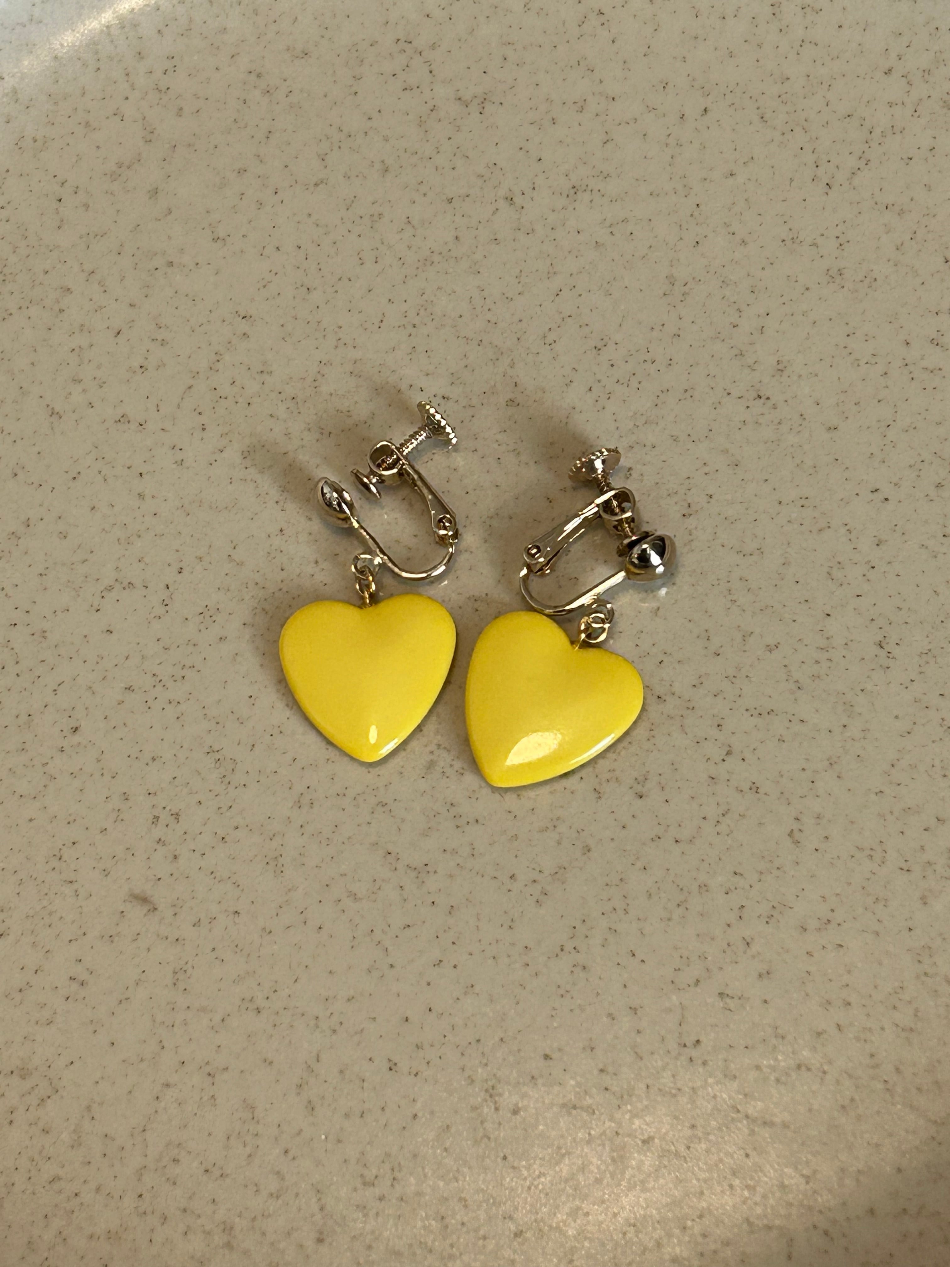 おもちゃっぽさがかわいい黄色いハートのイヤリングです。
