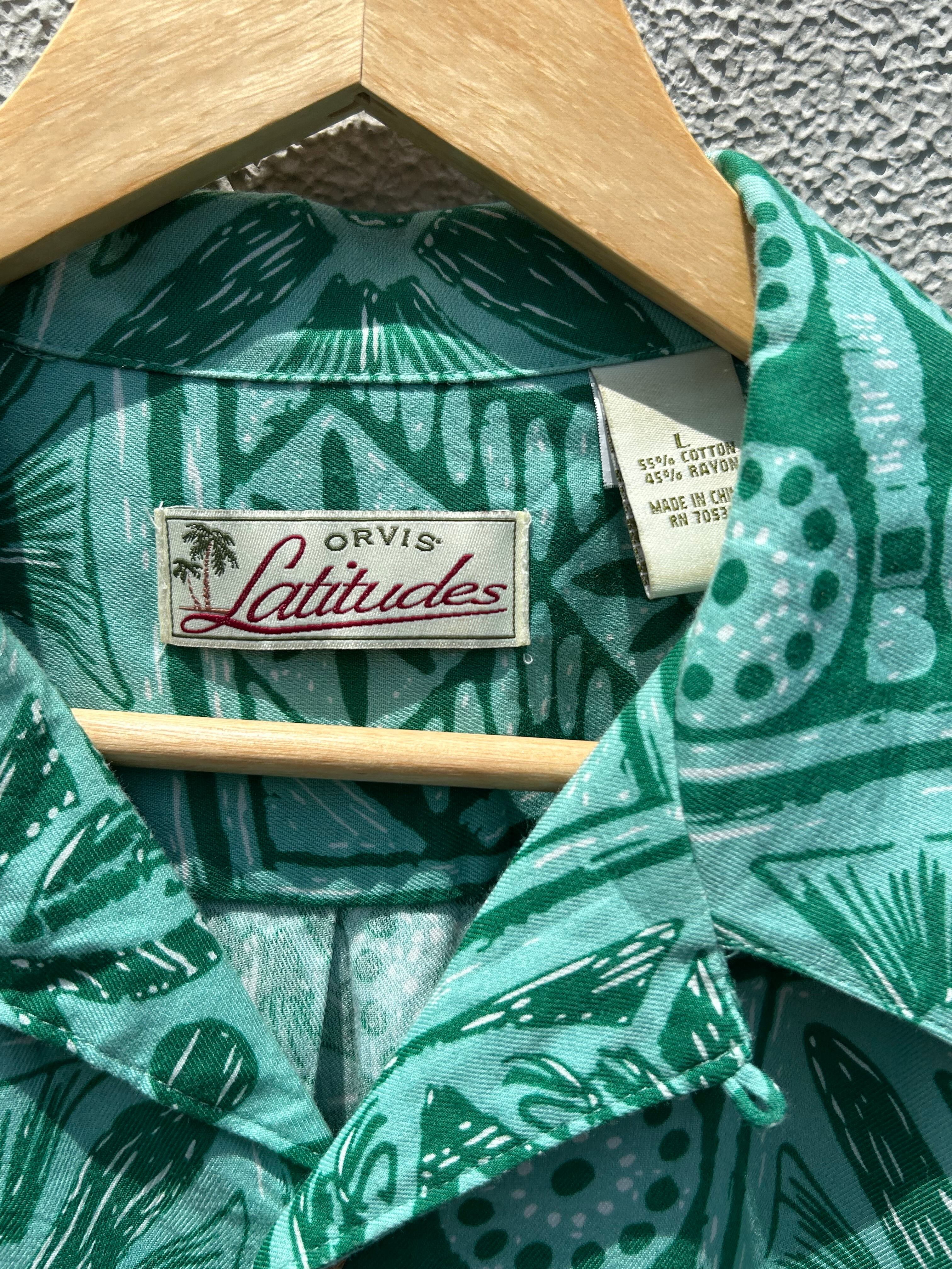 Orvis Latitudes Hawaiian green short sleeve shirt