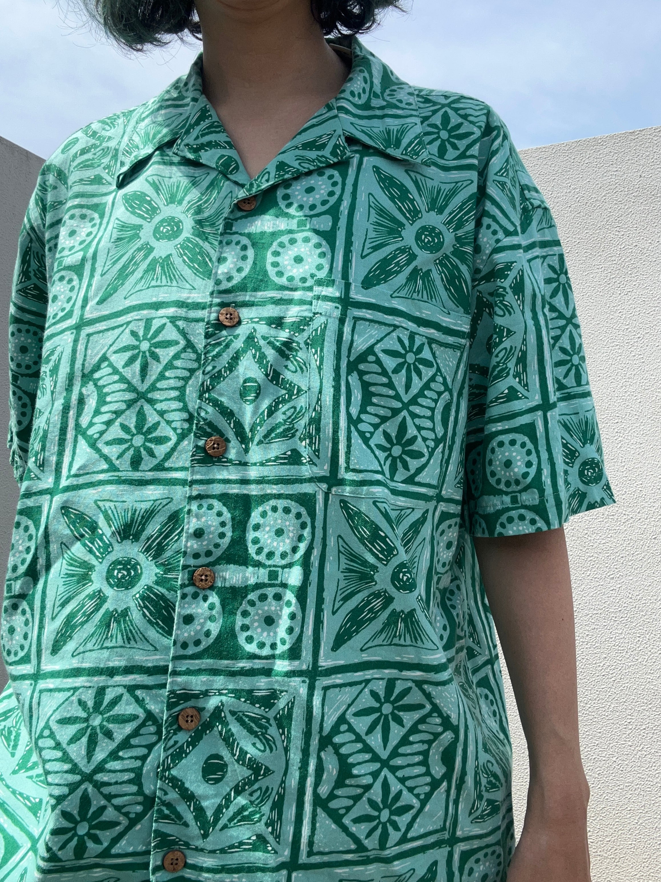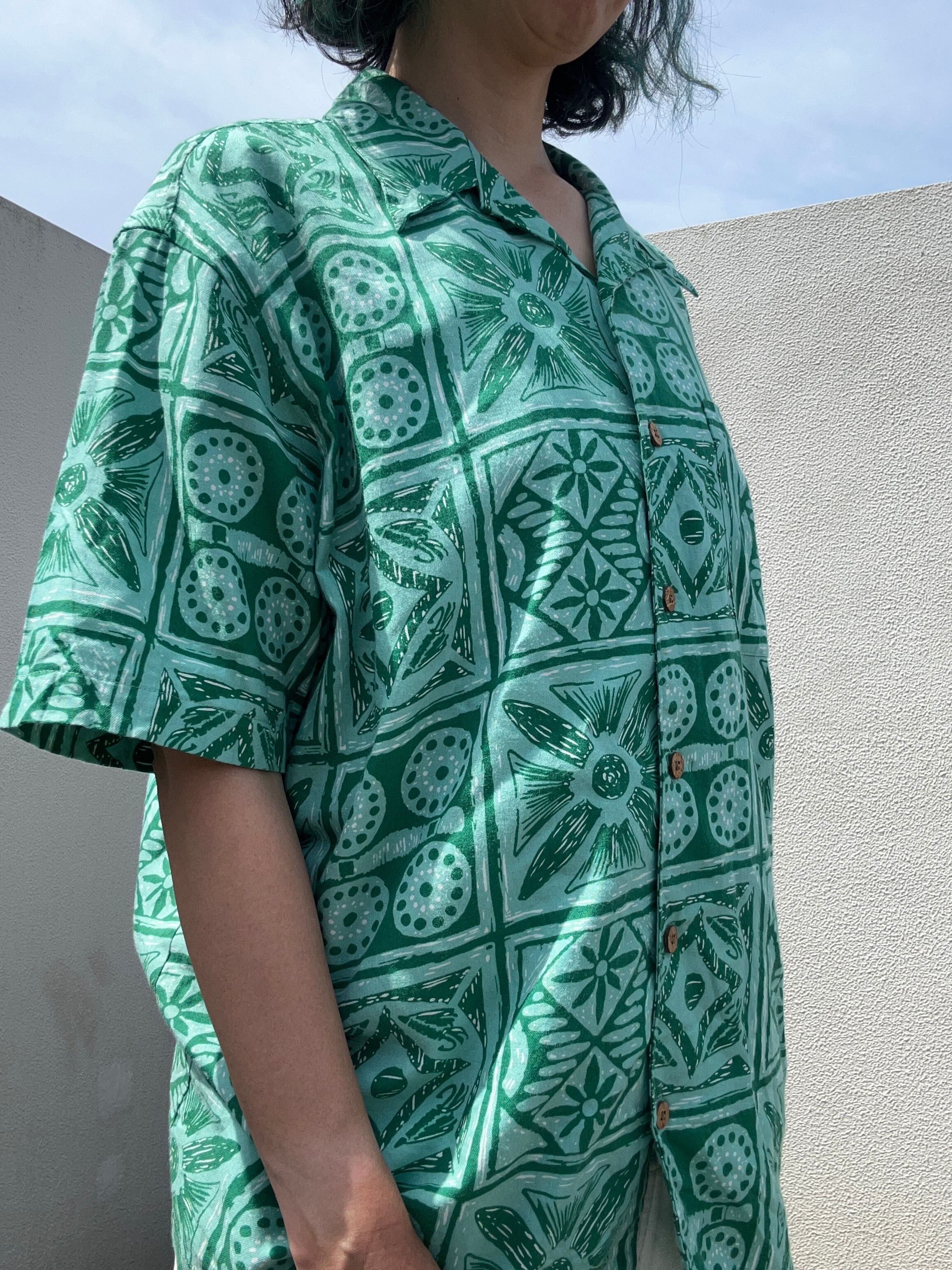 THEリゾート!感ある爽やかなグリーンのアロハシャツです。
