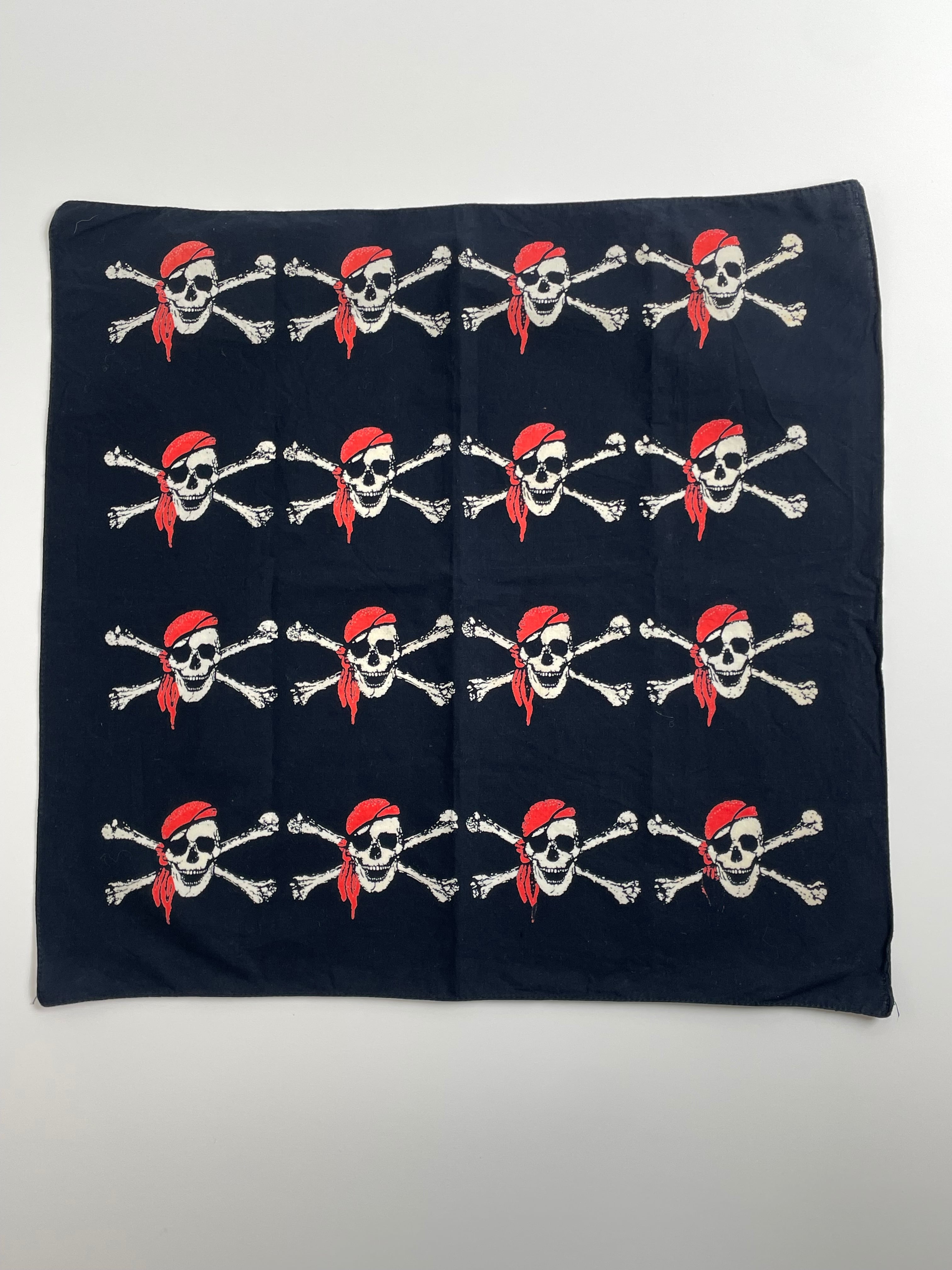 スカル柄のバンダナ。ハード過ぎないスカル柄がいい感じで遊び心のあるデザインです。
