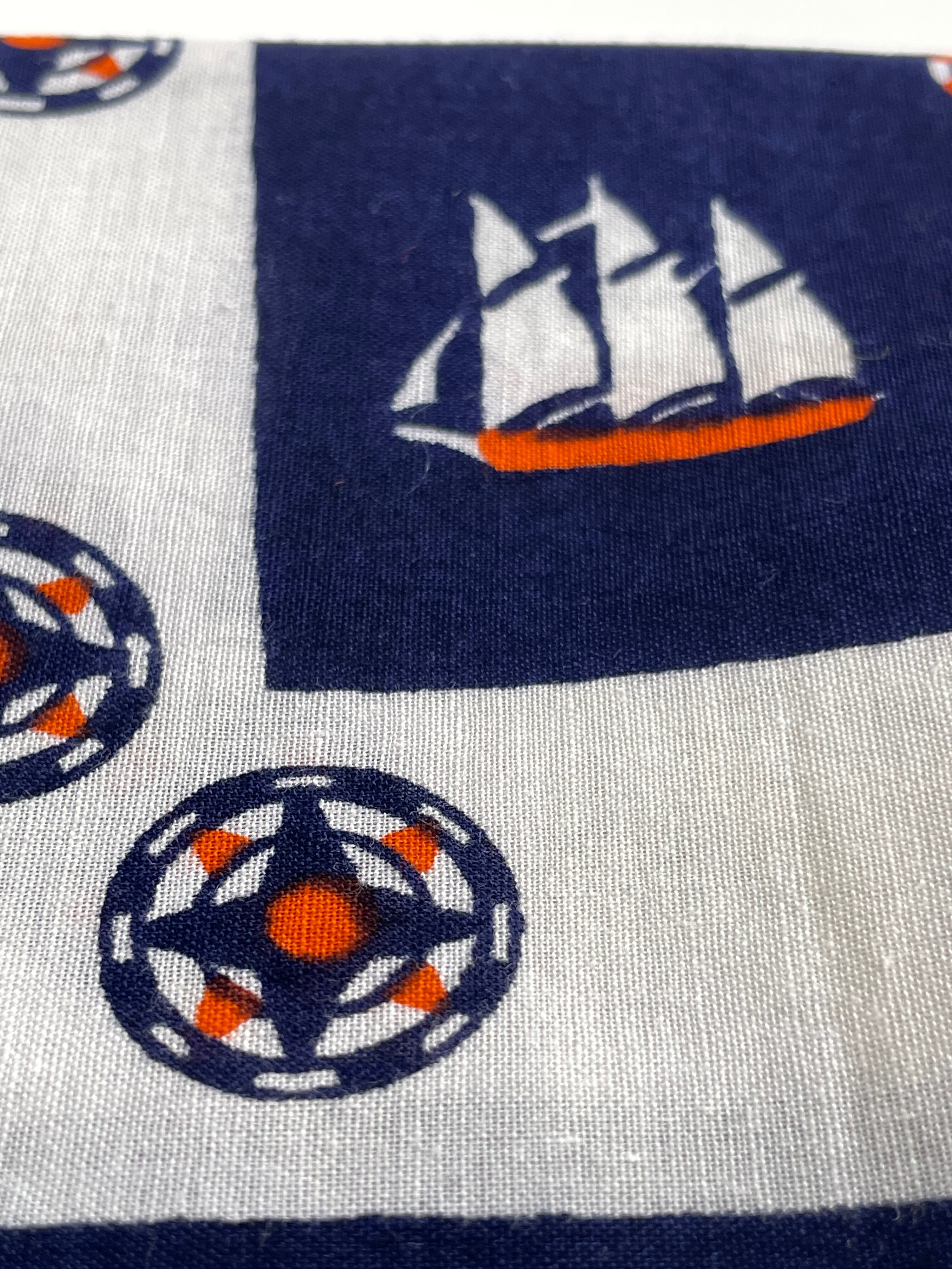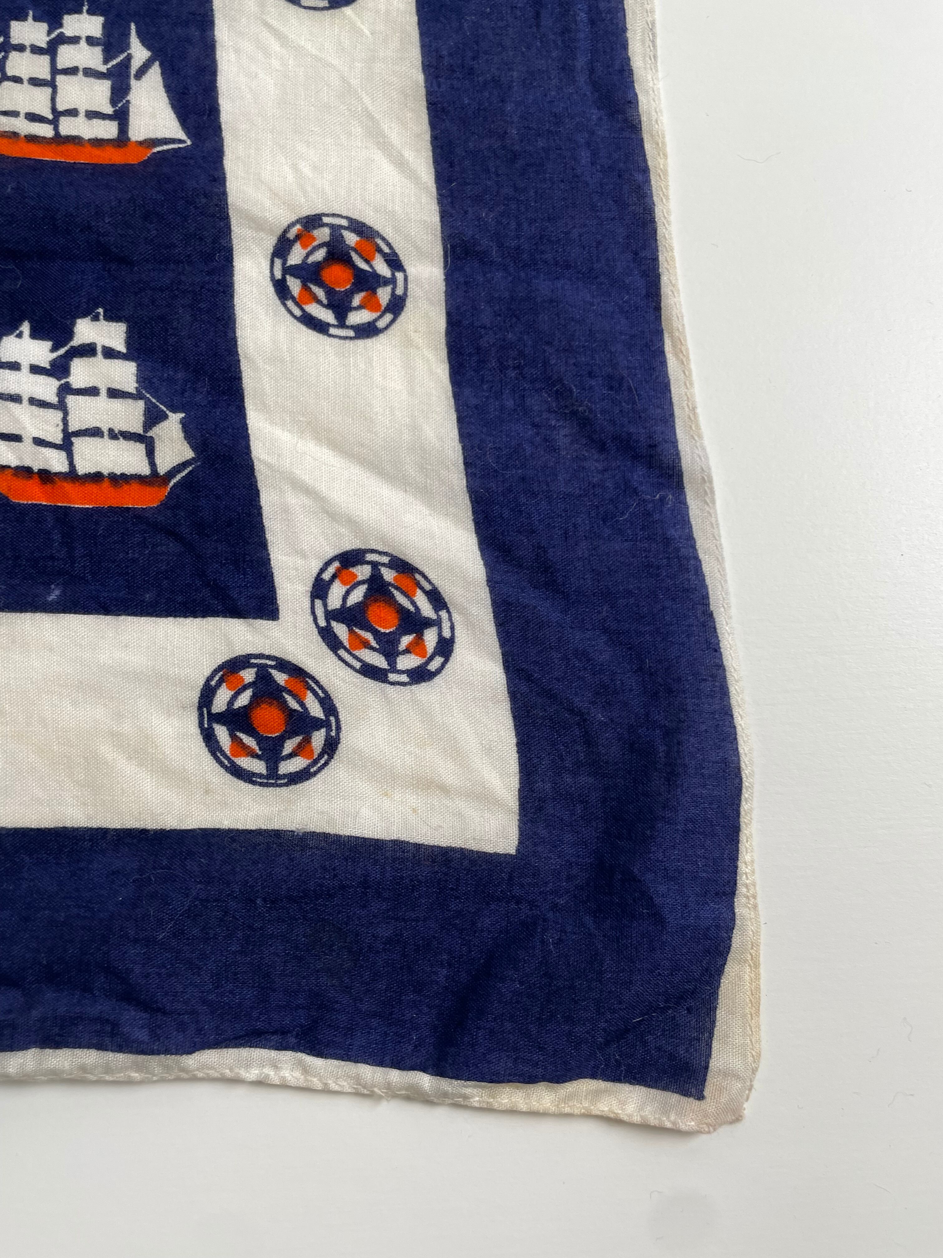 ヨット柄 ヴィンテージ バンダナ/紺 ネイビー 白 ホワイト オレンジ
